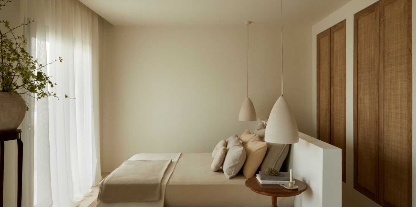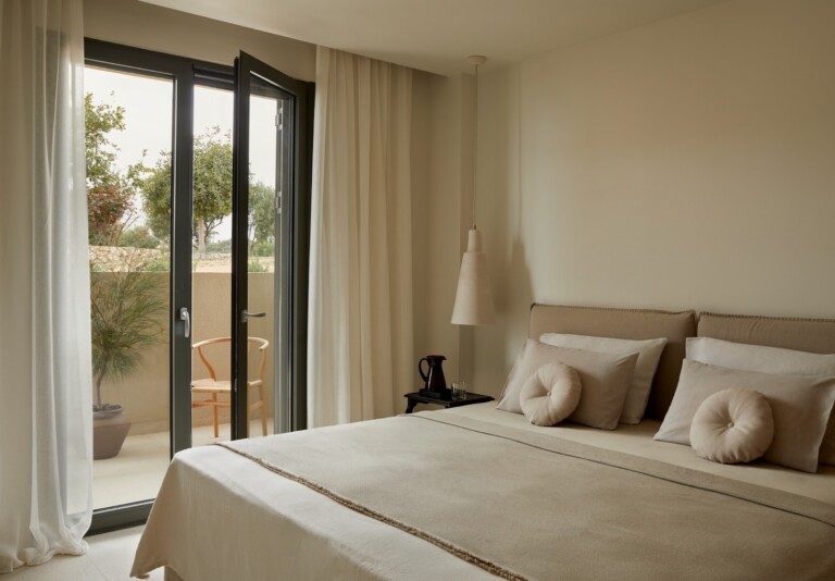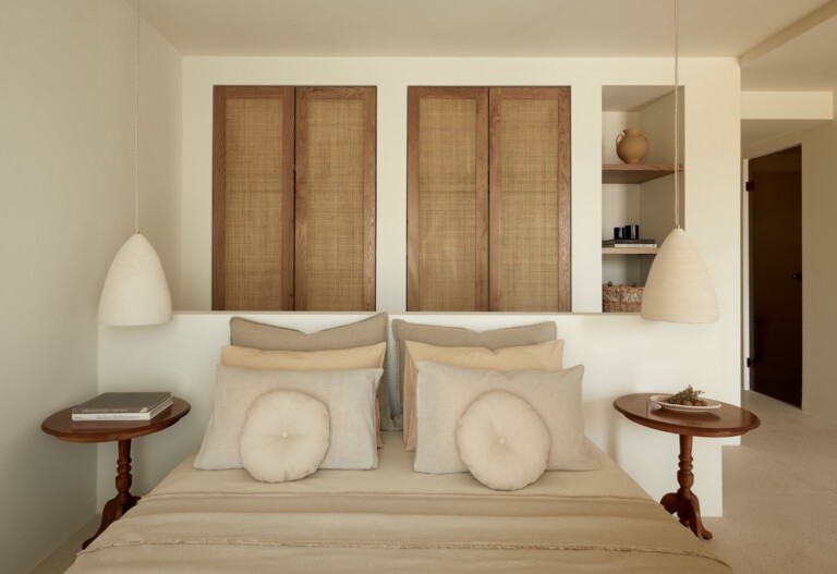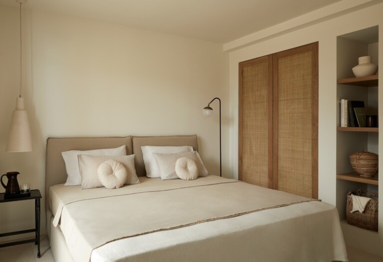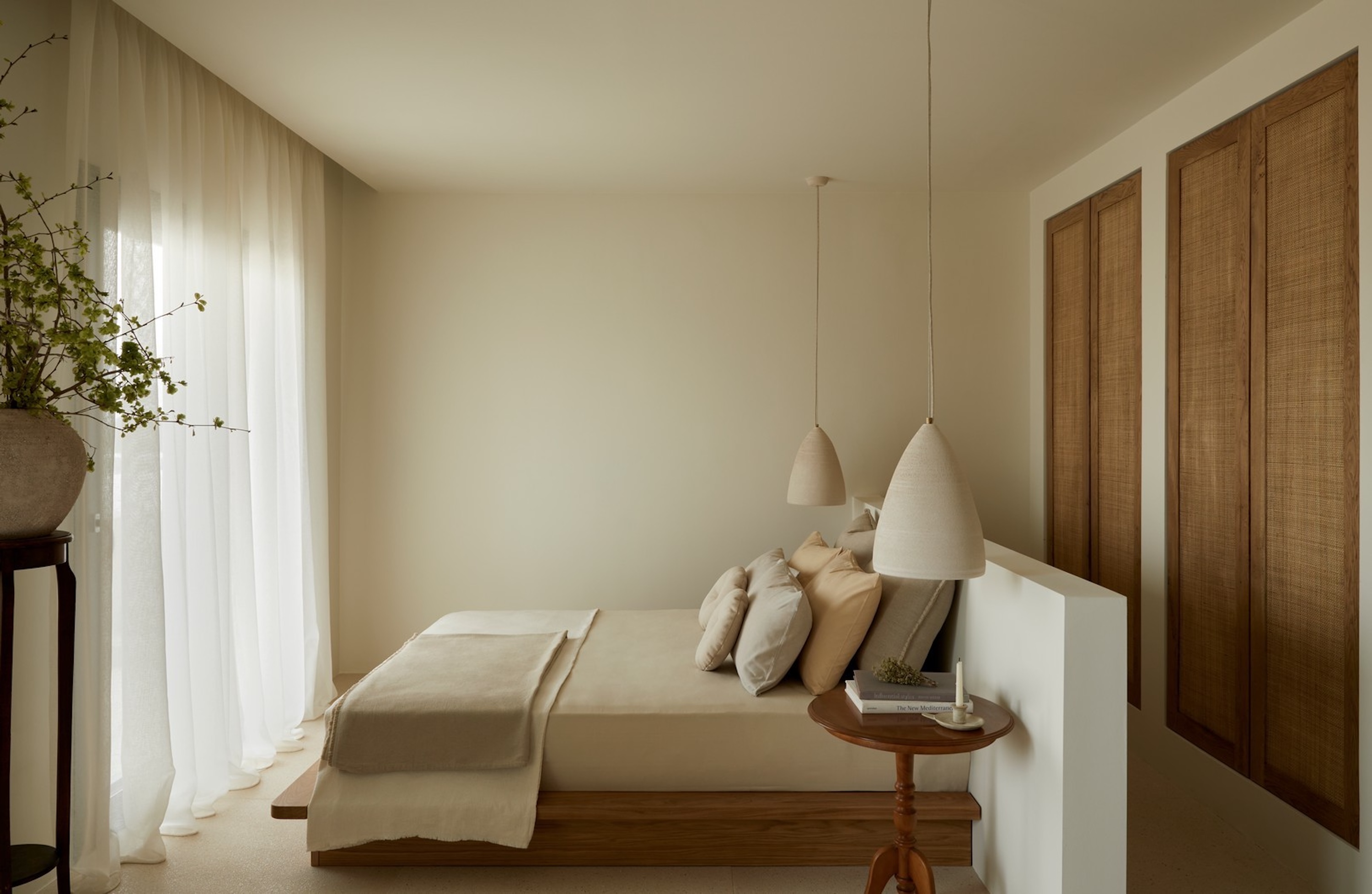 Τα τρία υπνοδωμάτια και τα τρία μπάνια εντάσσονται σε μια διαρρύθμιση που δίνει έμφαση στην ιδιωτικότητα και την ομαλή ροή των χώρων. Μια διακριτική χρωματική παλέτα από απαλά λευκά και ουδέτερους τόνους επιτρέπει στο φυσικό φως να αναδείξει τους εσωτερικούς χώρους.