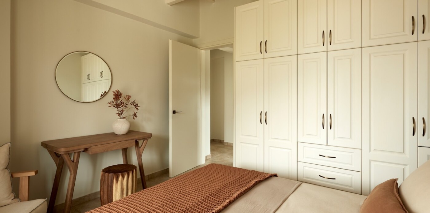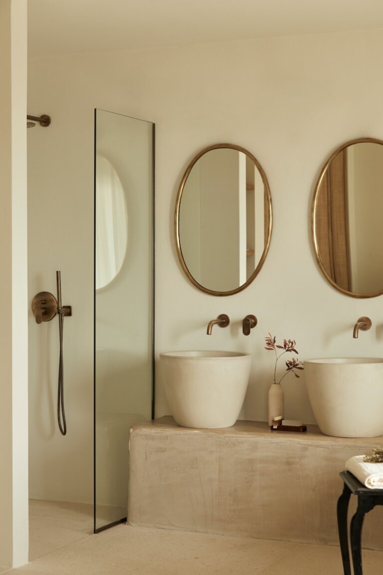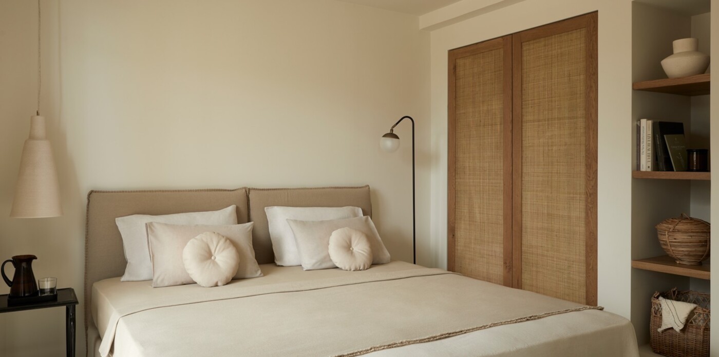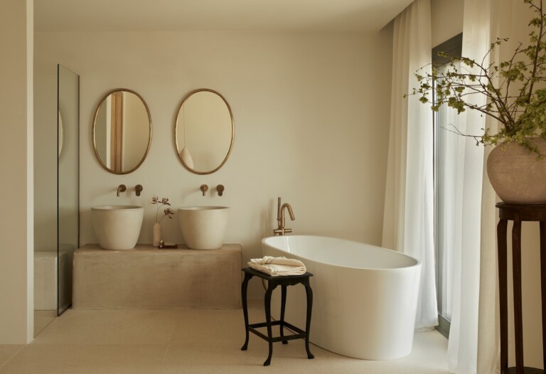 Τα τρία υπνοδωμάτια και τα τρία μπάνια εντάσσονται σε μια διαρρύθμιση που δίνει έμφαση στην ιδιωτικότητα και την ομαλή ροή των χώρων. Μια διακριτική χρωματική παλέτα από απαλά λευκά και ουδέτερους τόνους επιτρέπει στο φυσικό φως να αναδείξει τους εσωτερικούς χώρους.
