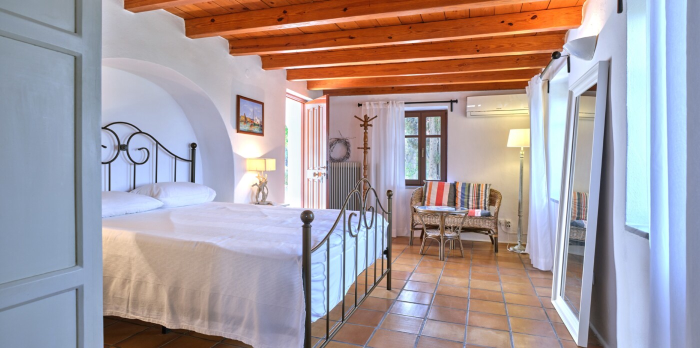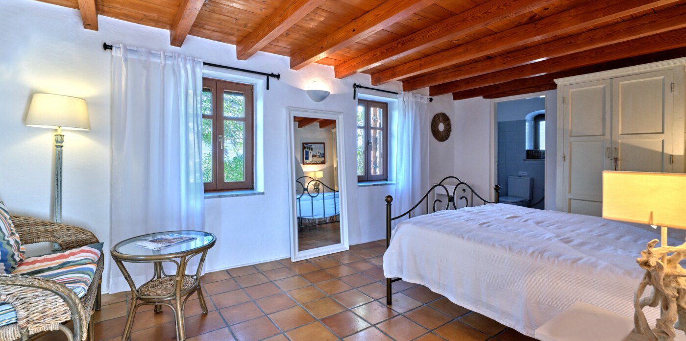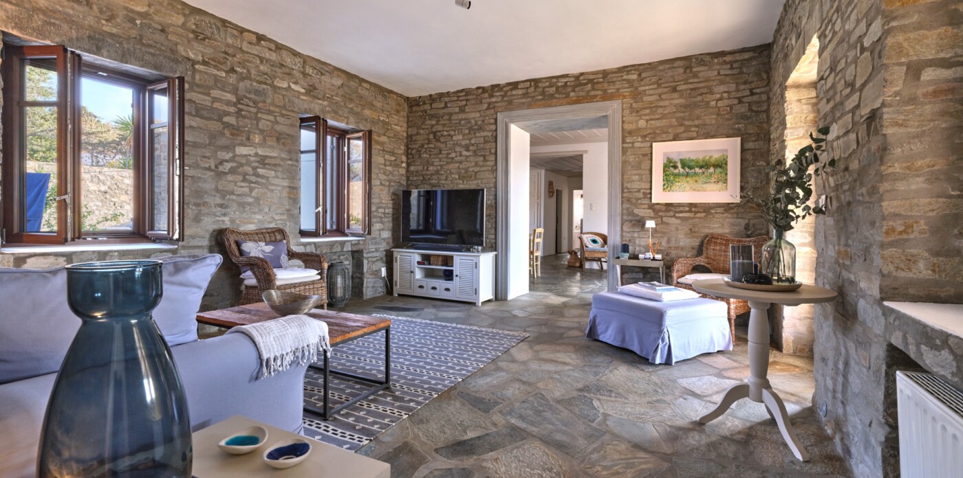 Στην καρδιά του, το Palmelia διαθέτει ευρύχωρους, άνετους εσωτερικούς χώρους. Οι πέτρινοι τοίχοι αποτελούν το τέλειο σκηνικό για την προβολή πινάκων ζωγραφικής, προσθέτοντας μια νότα παράδοσης και ζεστασιάς.