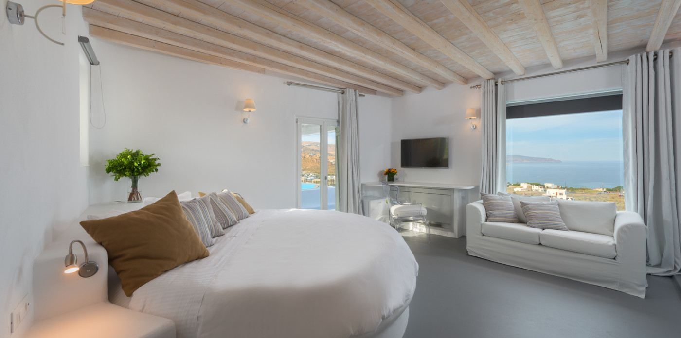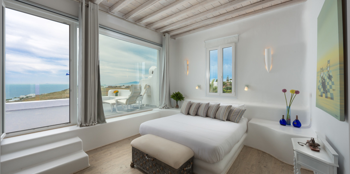 Το αρχοντικό διαθέτει 6 en suites και 7 κύρια υπνοδωμάτια με κομψή διακόσμηση σε μποέμικο στυλ. Μπορούν να φιλοξενήσουν το πολύ 30 άτομα. Οι σουίτες περιλαμβάνουν μια σουίτα νεονύμφων, μια σουίτα Junior και τέσσερις σουίτες Executive.
