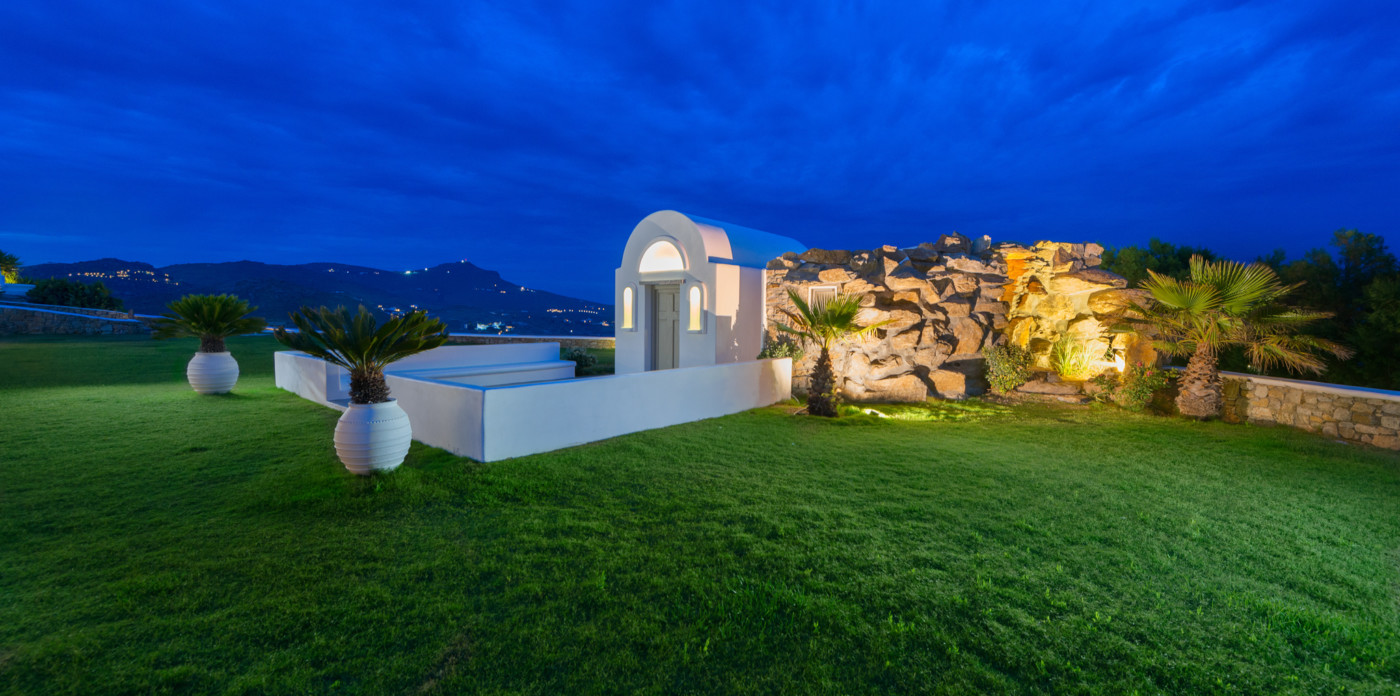 Η κομψότητα και η ομορφιά των πολύχρωμων κήπων, οι βραχώδεις βράχοι, η υπέροχη ατμόσφαιρα και η ζαφειρένια θάλασσα της Μυκόνου σε συνδυασμό με τις επαγγελματικές υπηρεσίες πρώτης κατηγορίας δημιουργούν μια μοναδική ατμόσφαιρα για να κάνετε την εκδήλωση ή το γάμο σας στο μινιμαλιστικό παρεκκλήσι Aegean Jewel.