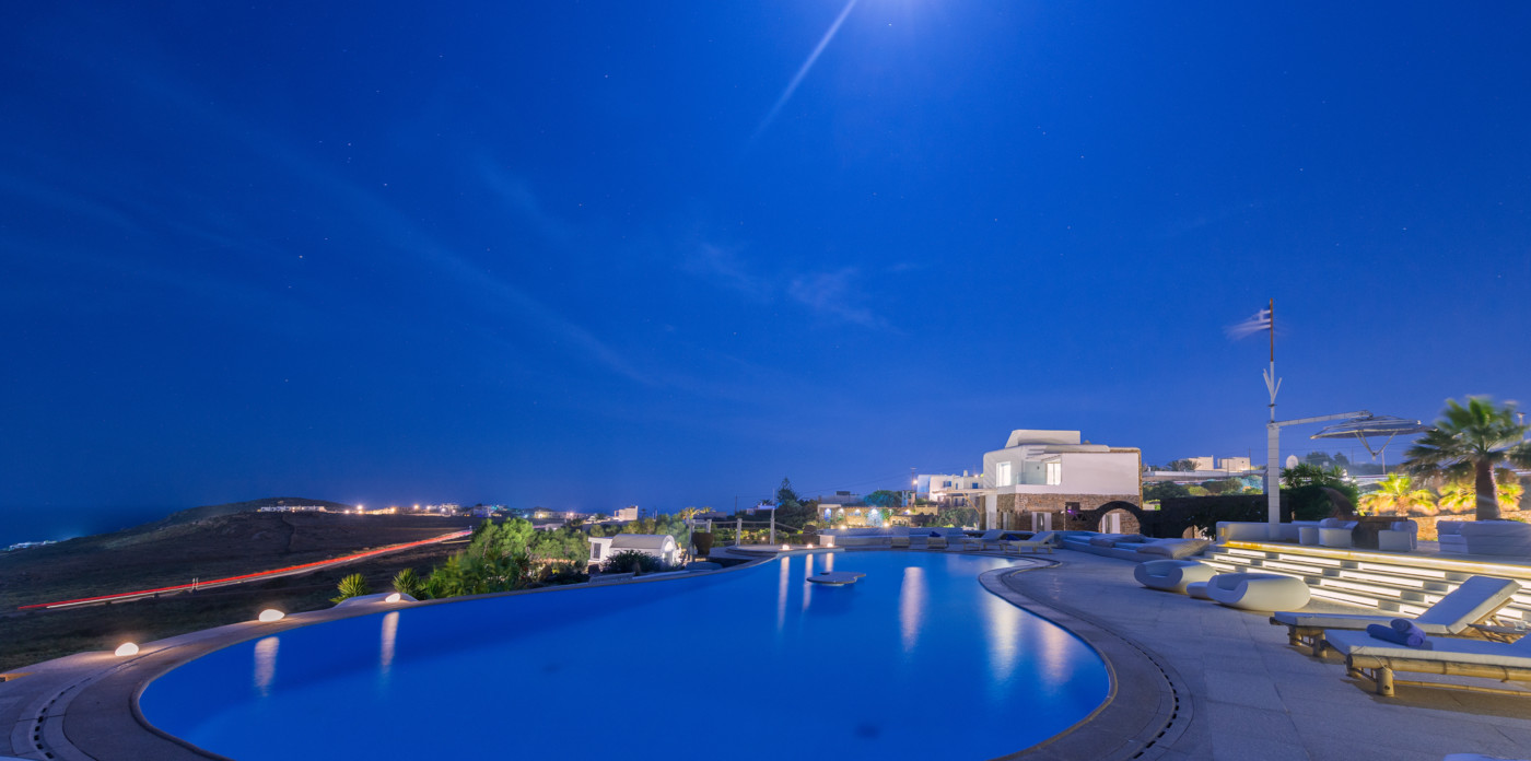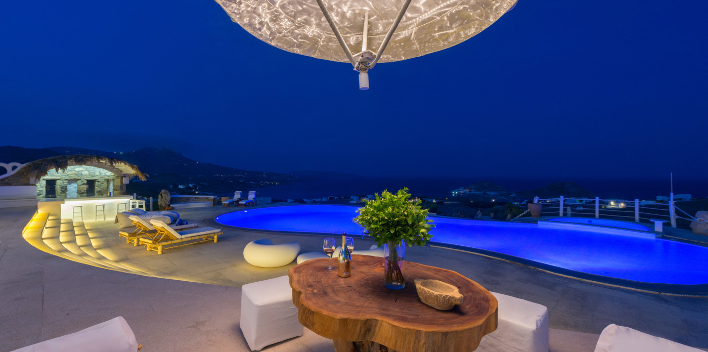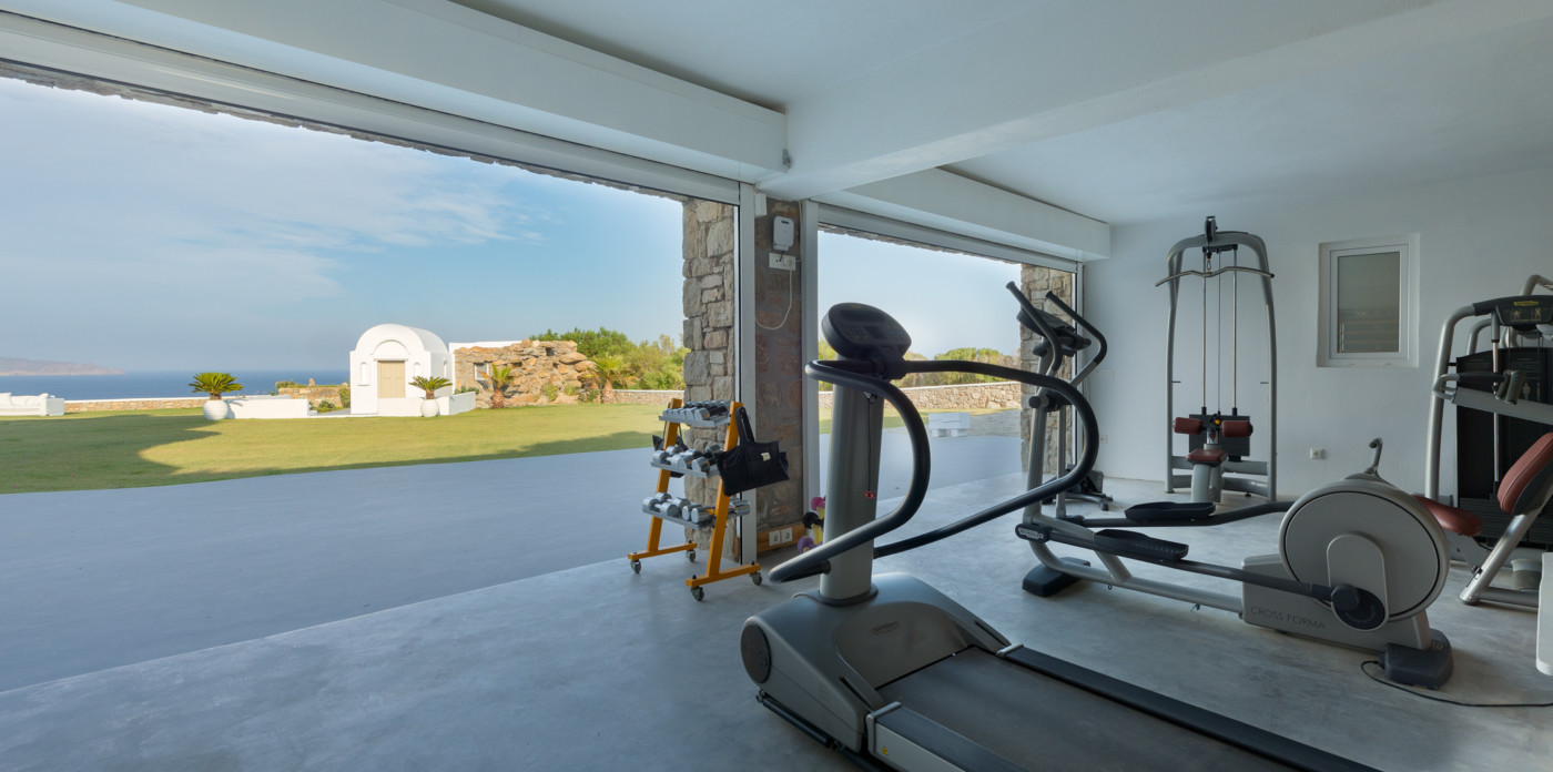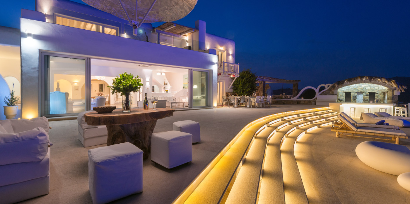 Μπροστά από τη βίλα, μια μεγάλη βεράντα και μια πισίνα υπερχείλισης απλώνονται προς τη θάλασσα, περιτριγυρισμένες από φουτουριστική επίπλωση. Μπορείτε εύκολα να περάσετε τη μέρα σας χαλαρώνοντας στις πολυθρόνες της βεράντας ή εξίσου εύκολα να κάνετε γυμναστική στο σύγχρονο, πλήρως εξοπλισμένο "technogym". Βρείτε μια ανάπαυλα από τη μεσημεριανή ζέστη στο τζακούζι και καθώς ο ήλιος δύει, μαγειρέψτε τοπικά θαλασσινά στο μπάρμπεκιου και απολαύστε την υπαίθρια τραπεζαρία. Για άνεση και ευκολία, το αρχοντικό διαθέτει ελικοδρόμιο, επιχειρηματικό κέντρο και για καθαρή διασκέδαση, διαθέτει επίσης εξοπλισμό για υπαίθριο κινηματογράφο.