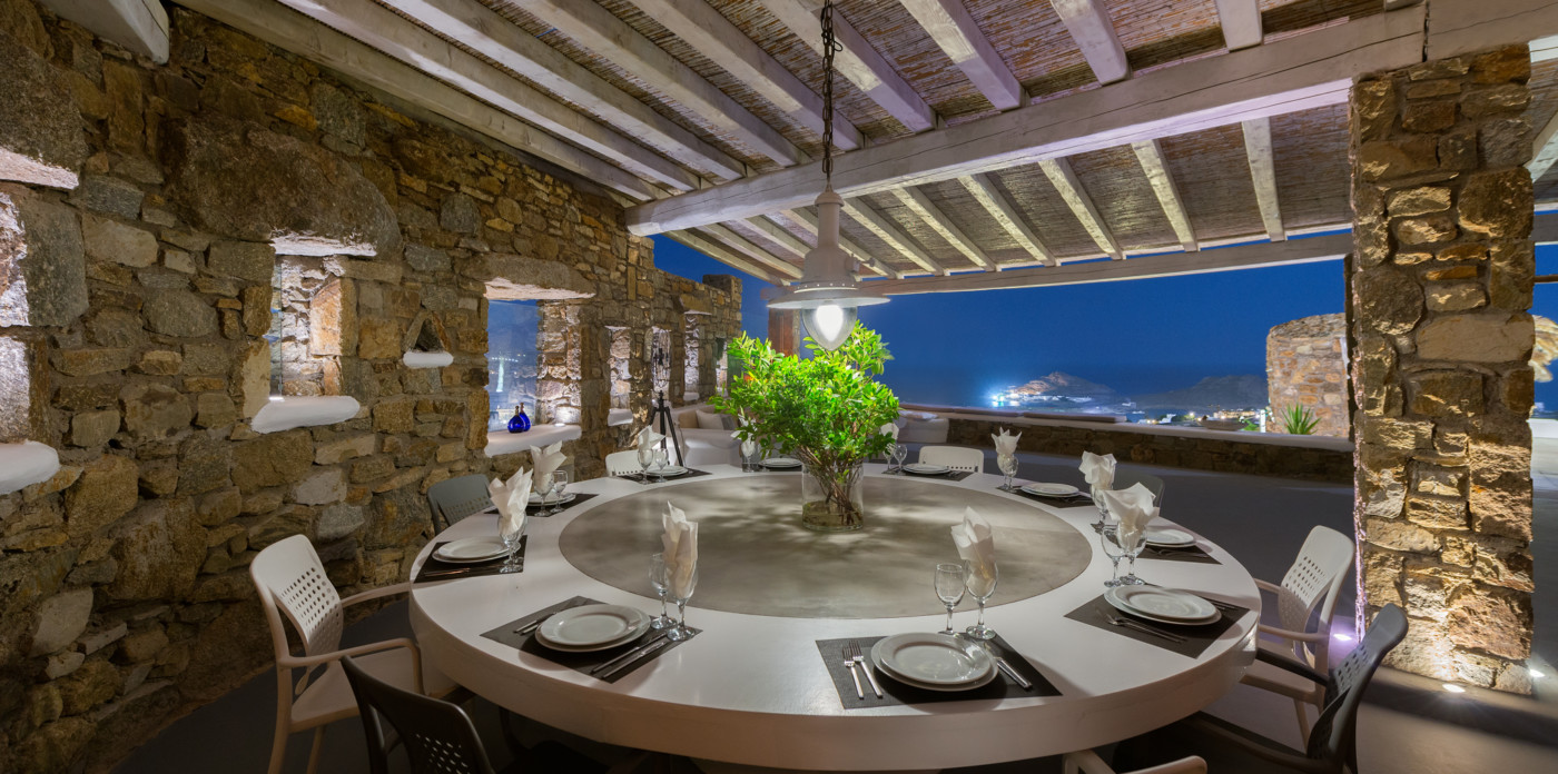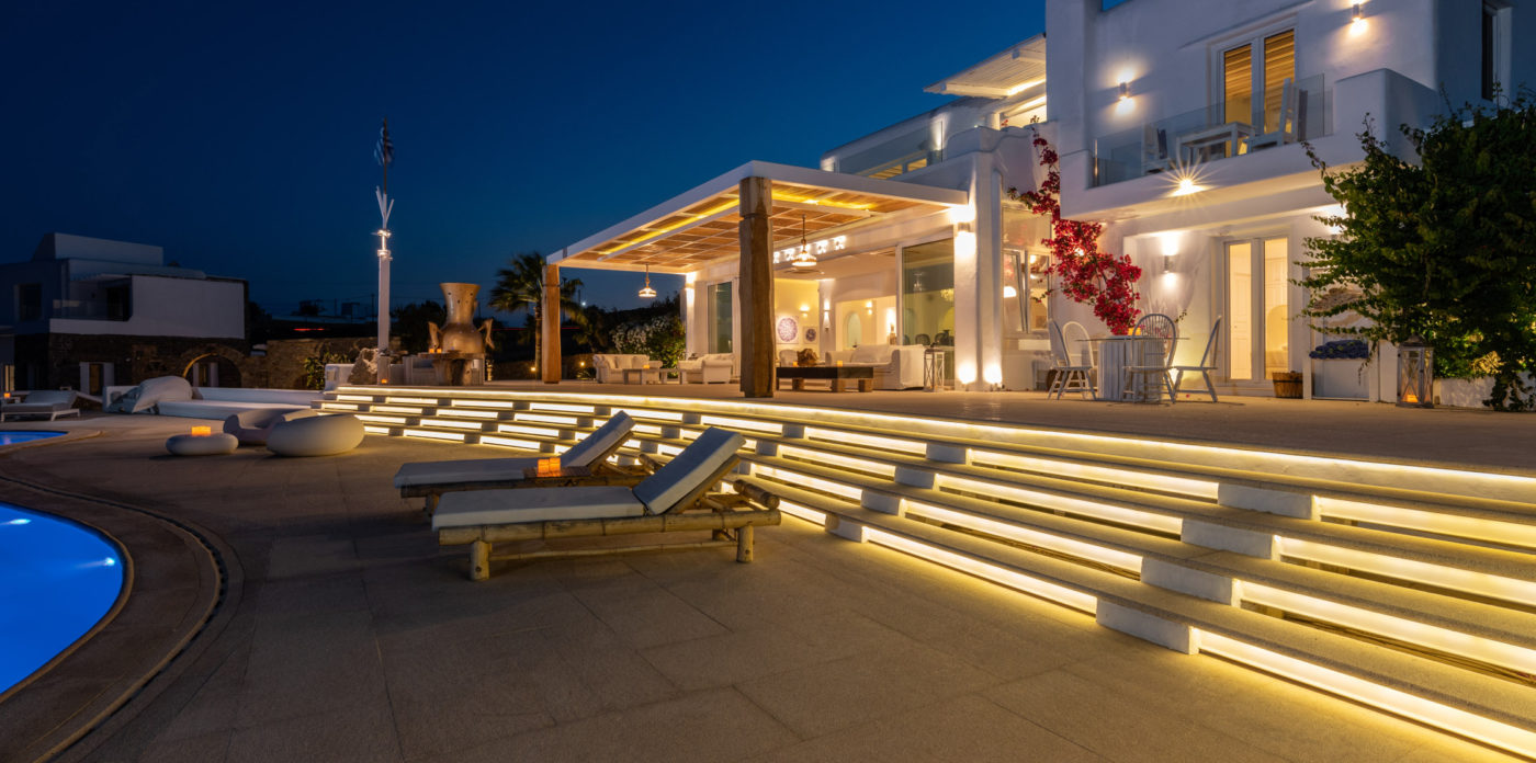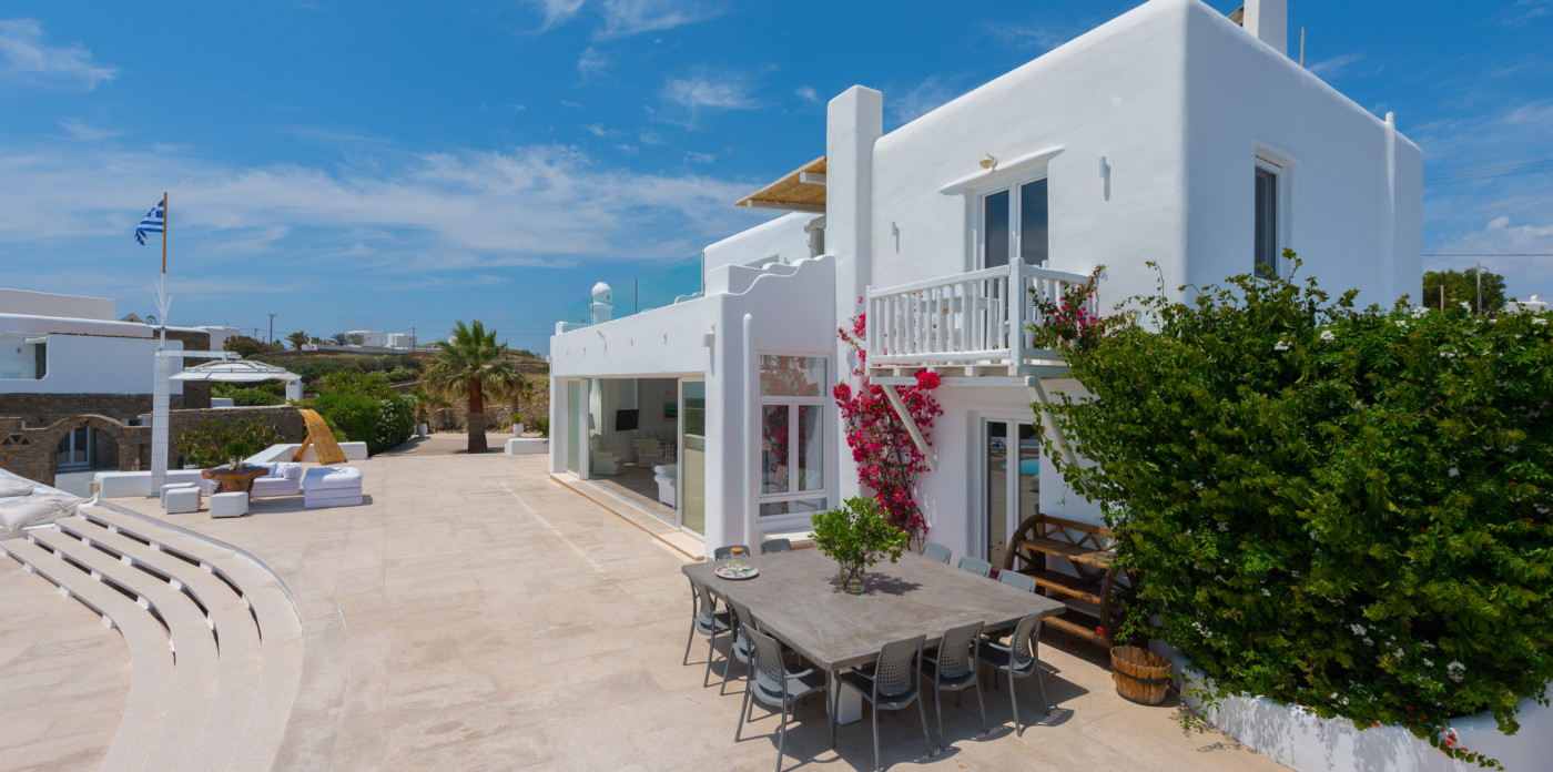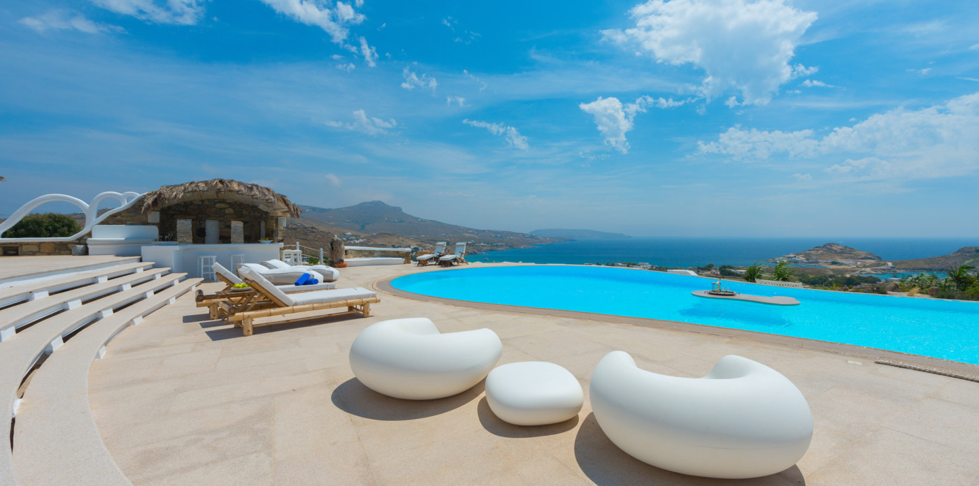 Μπροστά από τη βίλα, μια μεγάλη βεράντα και μια πισίνα υπερχείλισης απλώνονται προς τη θάλασσα, περιτριγυρισμένες από φουτουριστική επίπλωση. Μπορείτε εύκολα να περάσετε τη μέρα σας χαλαρώνοντας στις πολυθρόνες της βεράντας ή εξίσου εύκολα να κάνετε γυμναστική στο σύγχρονο, πλήρως εξοπλισμένο "technogym". Βρείτε μια ανάπαυλα από τη μεσημεριανή ζέστη στο τζακούζι και καθώς ο ήλιος δύει, μαγειρέψτε τοπικά θαλασσινά στο μπάρμπεκιου και απολαύστε την υπαίθρια τραπεζαρία. Για άνεση και ευκολία, το αρχοντικό διαθέτει ελικοδρόμιο, επιχειρηματικό κέντρο και για καθαρή διασκέδαση, διαθέτει επίσης εξοπλισμό για υπαίθριο κινηματογράφο.
