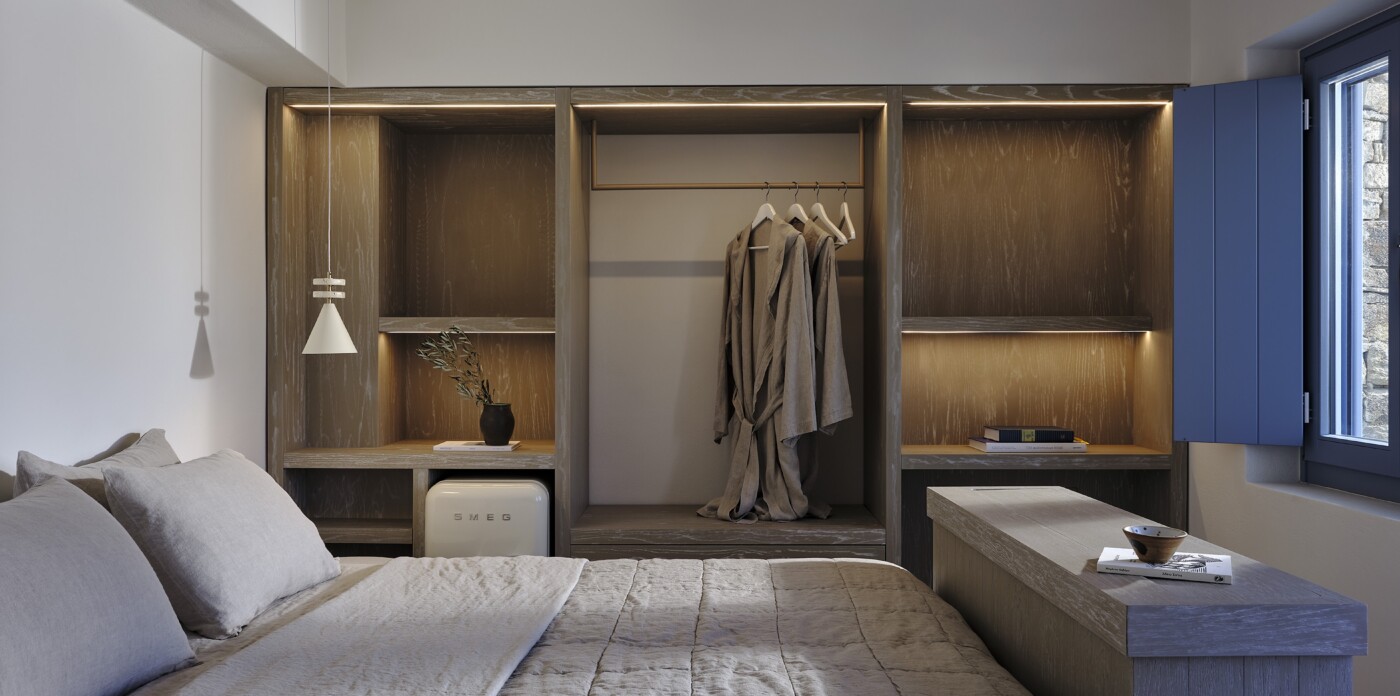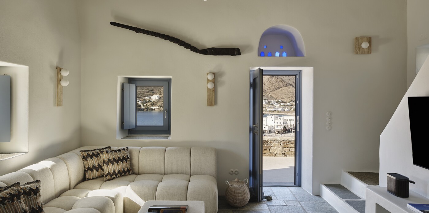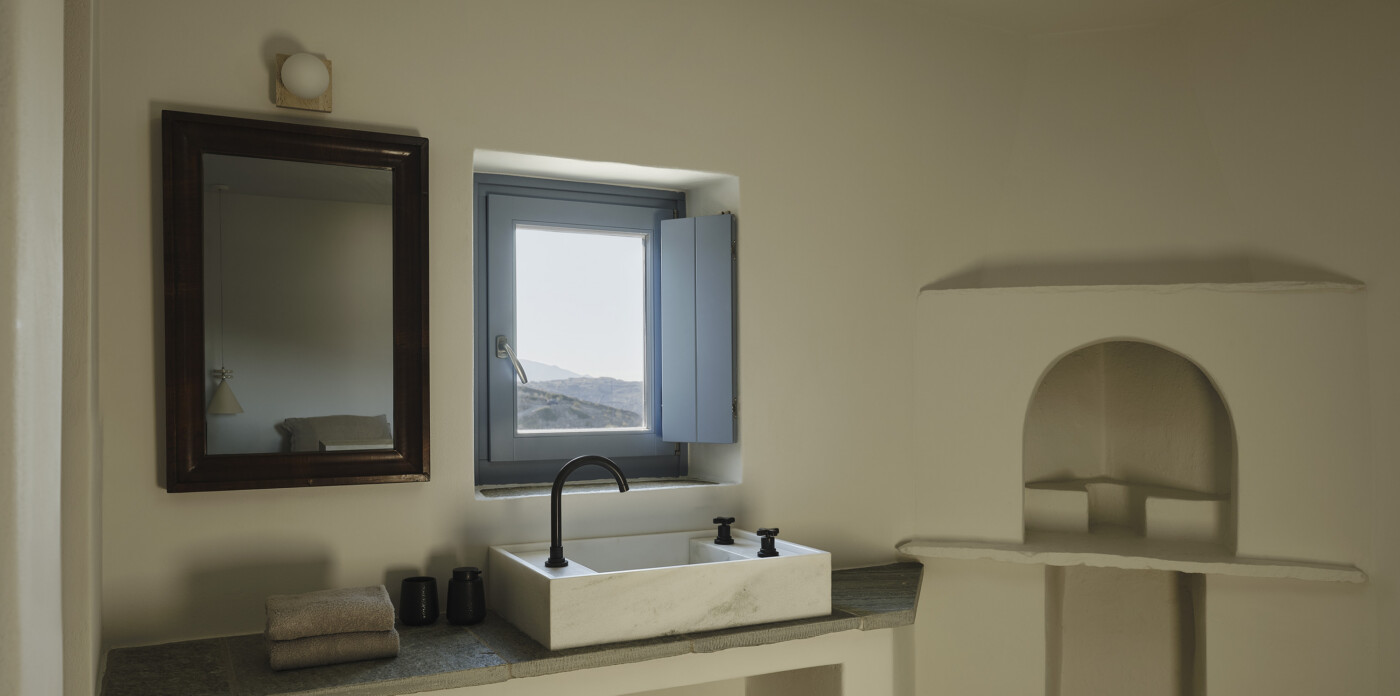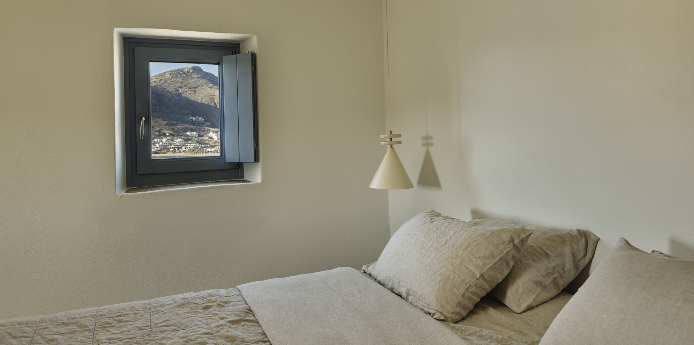Τα τέσσερα εξαιρετικά διακοσμημένα υπνοδωμάτια είναι προσεκτικά σχεδιασμένα με έναν αρμονικό συνδυασμό απαλών υφών, φυσικών υλικών και σύγχρονων ανέσεων, δημιουργώντας γαλήνια καταφύγια που ενσωματώνουν την αέρινη κομψότητα των Κυκλάδων. Τα μοντέρνα αλλά παραδοσιακά εμπνευσμένα μπάνια διαθέτουν κομψές λεπτομέρειες, ευρύχωρα ντους και εκλεπτυσμένα στοιχεία, μετατρέποντας τις καθημερινές συνήθειες σε στιγμές απόλυτης χαλάρωσης.