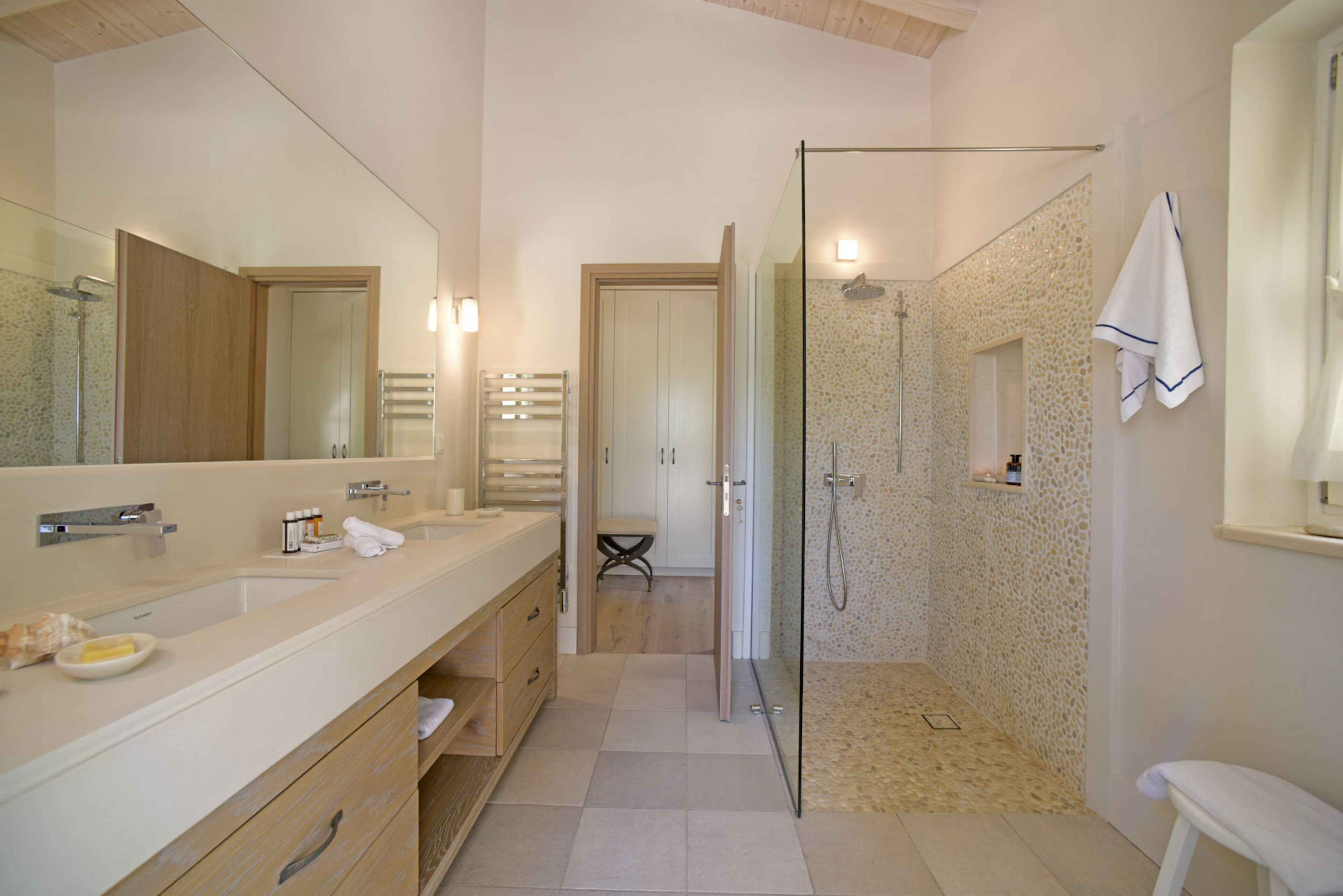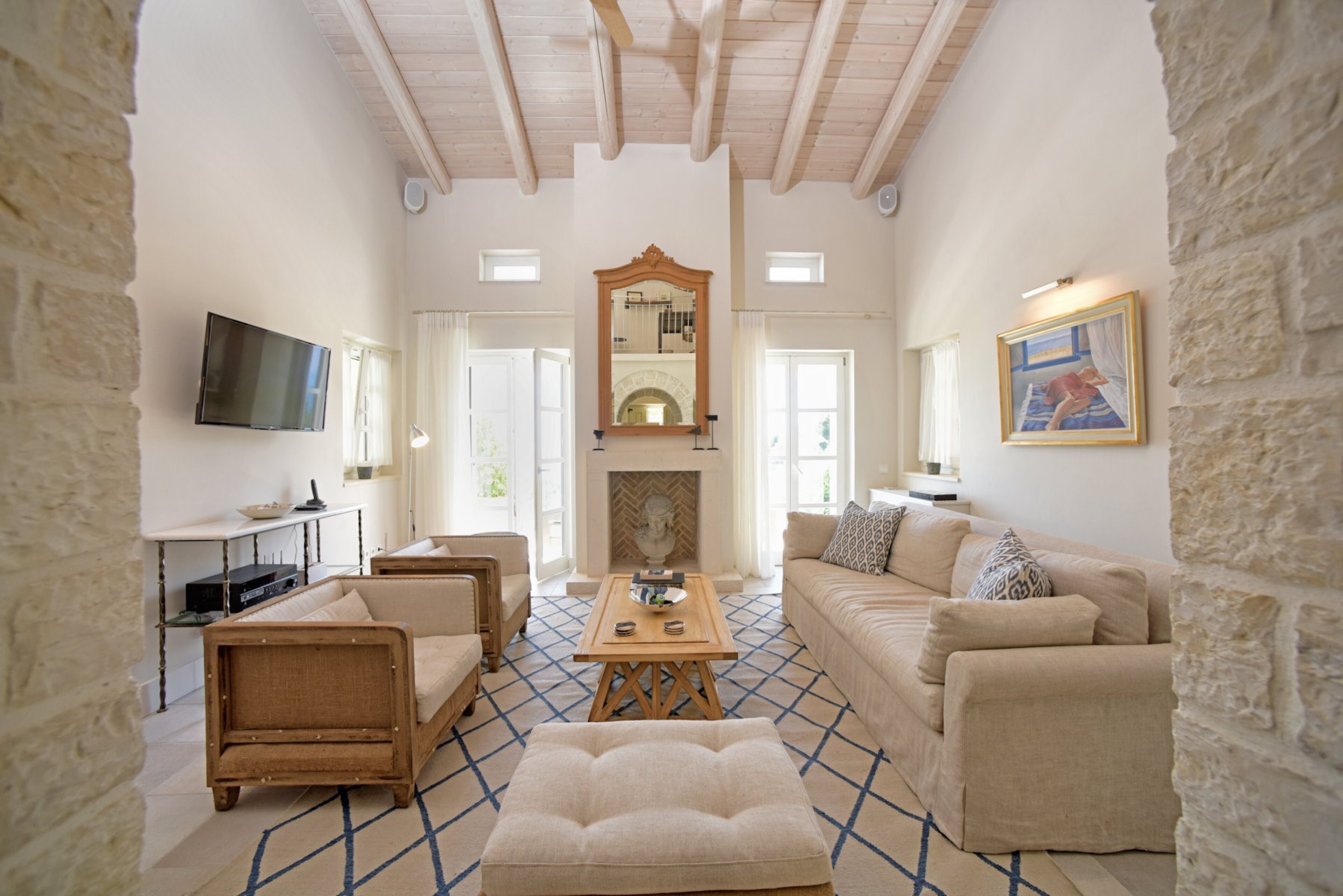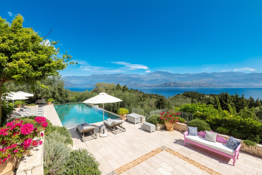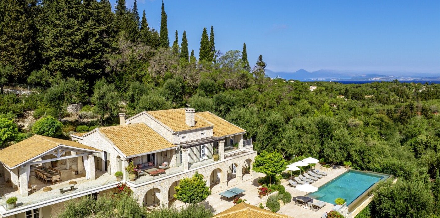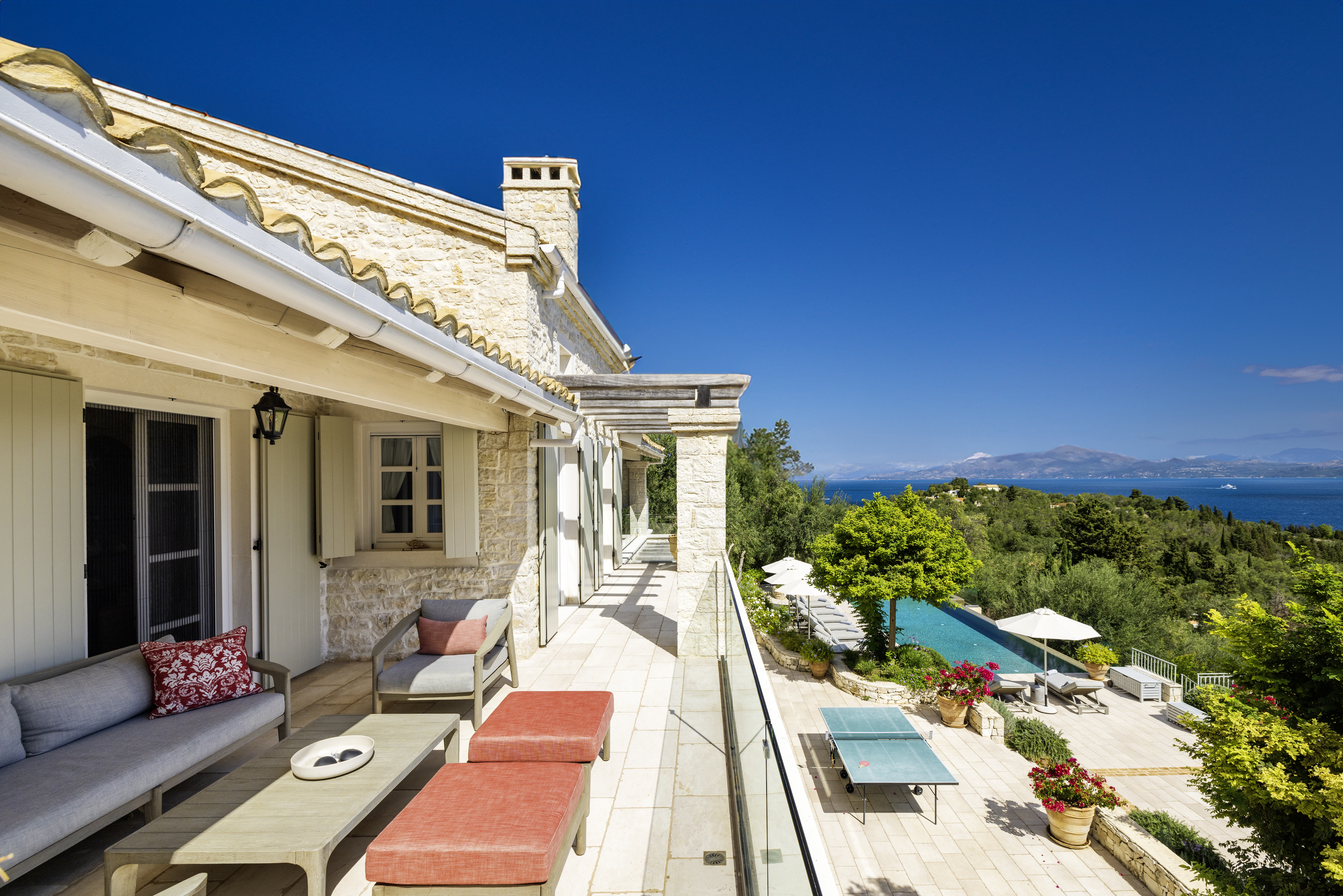 Η κύρια κατοικία διαθέτει 3 δίκλινα υπνοδωμάτια με θέα στη θάλασσα, μια κύρια σουίτα με ιδιωτικό τζακούζι, υπαίθριο μπάνιο και βεράντα και ένα εκλεπτυσμένο καθιστικό με ημιώροφο και γωνιά βιβλιοθήκης. Επιπλέον, μια υπαίθρια κουζίνα & μπάρμπεκιου με σαρωτική θέα στο Ιόνιο, καθώς και ιδιωτικό γυμναστήριο, αίθουσα ψυχαγωγίας & πισίνα υπερχείλισης 15 μέτρων.