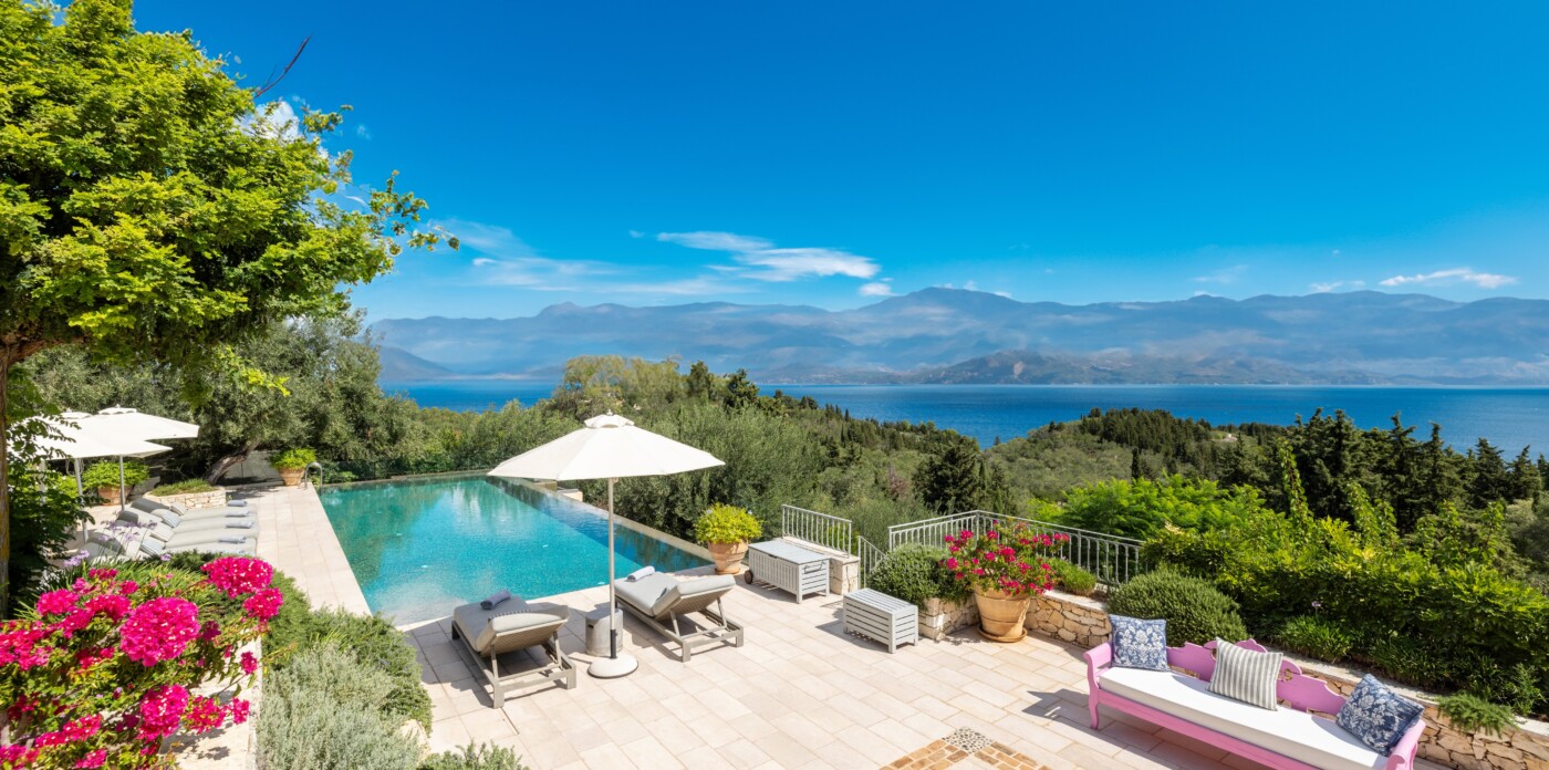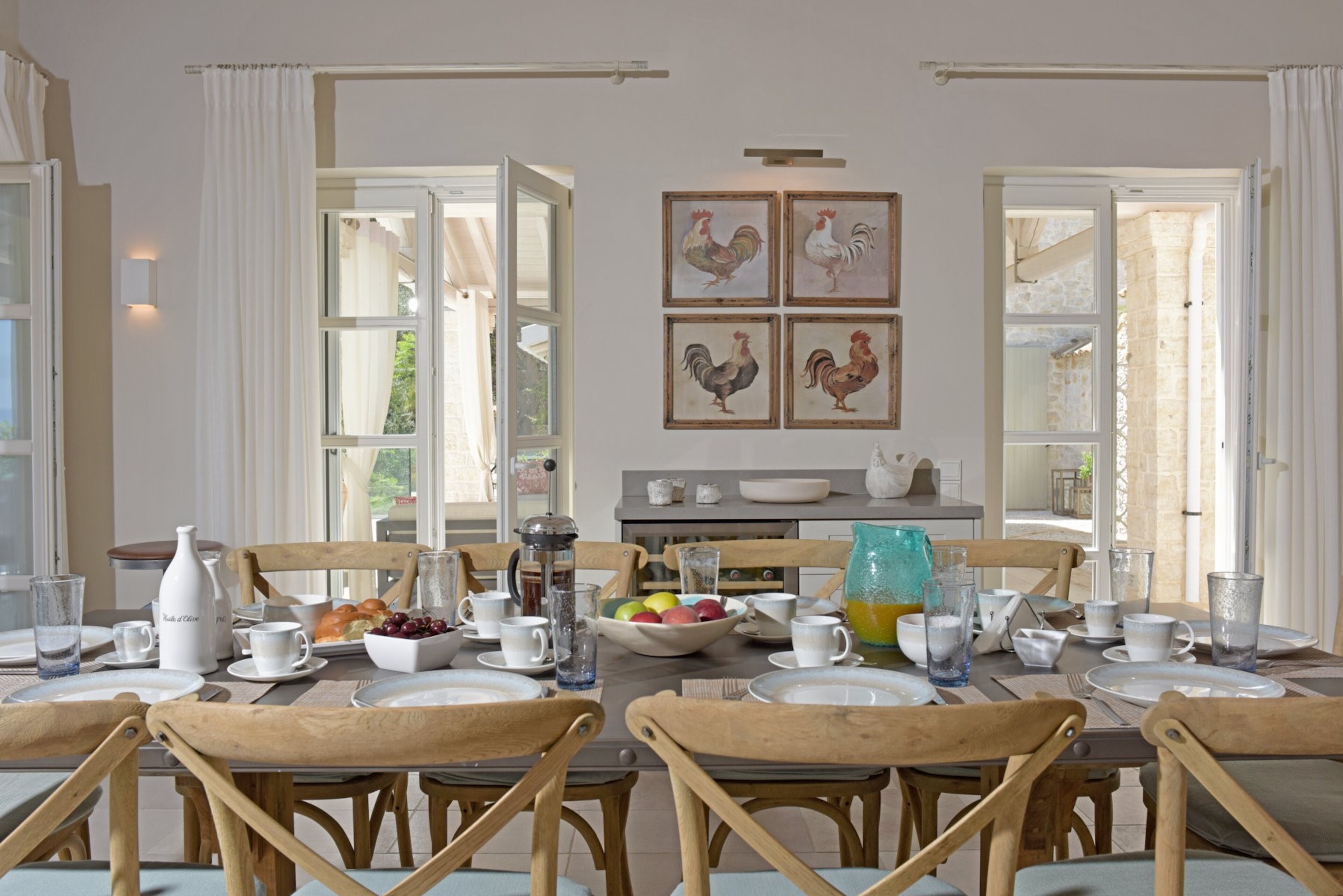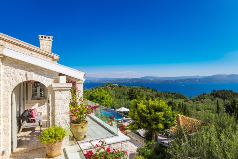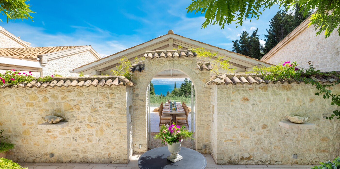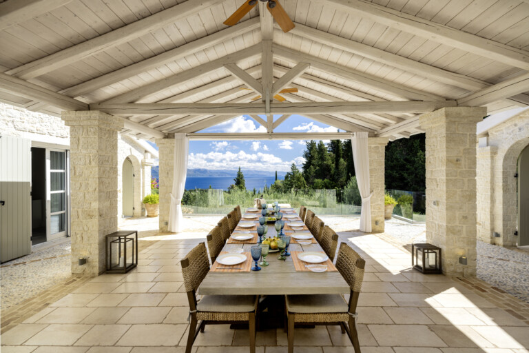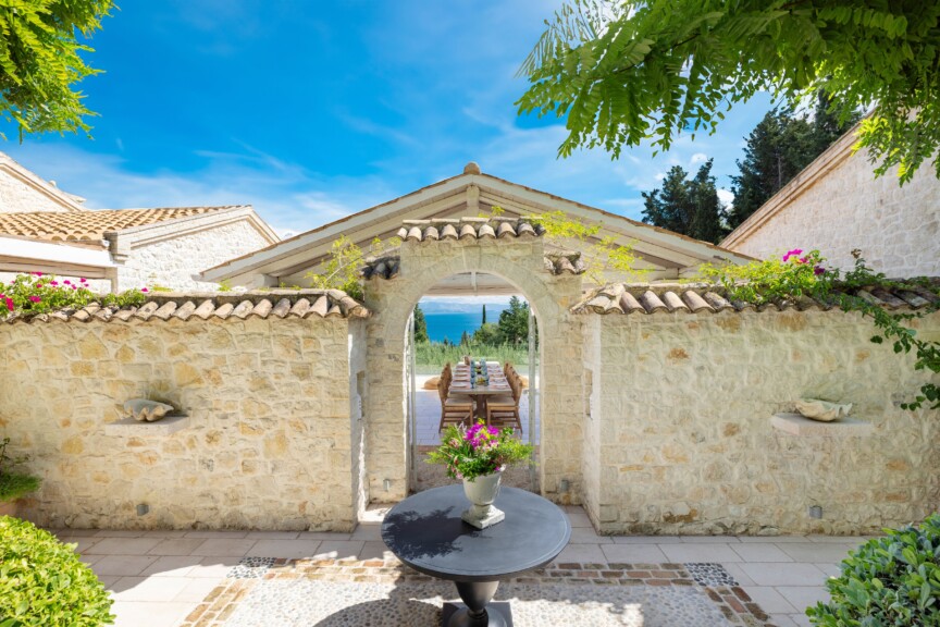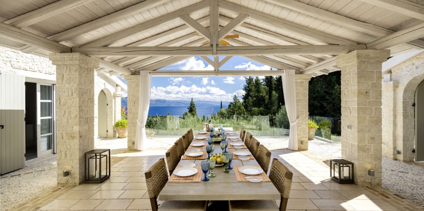 Η κύρια κατοικία διαθέτει 3 δίκλινα υπνοδωμάτια με θέα στη θάλασσα, μια κύρια σουίτα με ιδιωτικό τζακούζι, υπαίθριο μπάνιο και βεράντα και ένα εκλεπτυσμένο καθιστικό με ημιώροφο και γωνιά βιβλιοθήκης. Επιπλέον, μια υπαίθρια κουζίνα & μπάρμπεκιου με σαρωτική θέα στο Ιόνιο, καθώς και ιδιωτικό γυμναστήριο, αίθουσα ψυχαγωγίας & πισίνα υπερχείλισης 15 μέτρων.