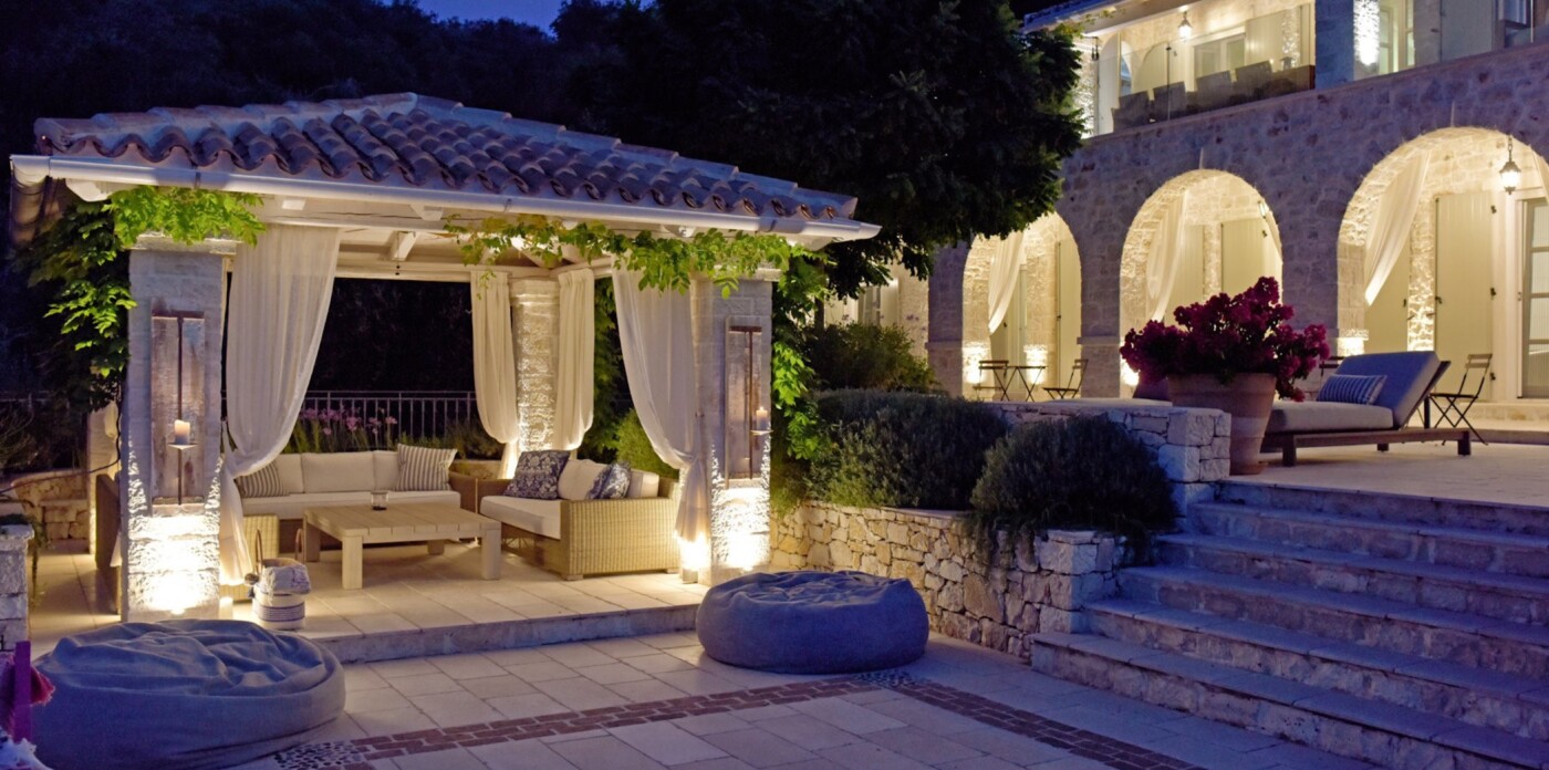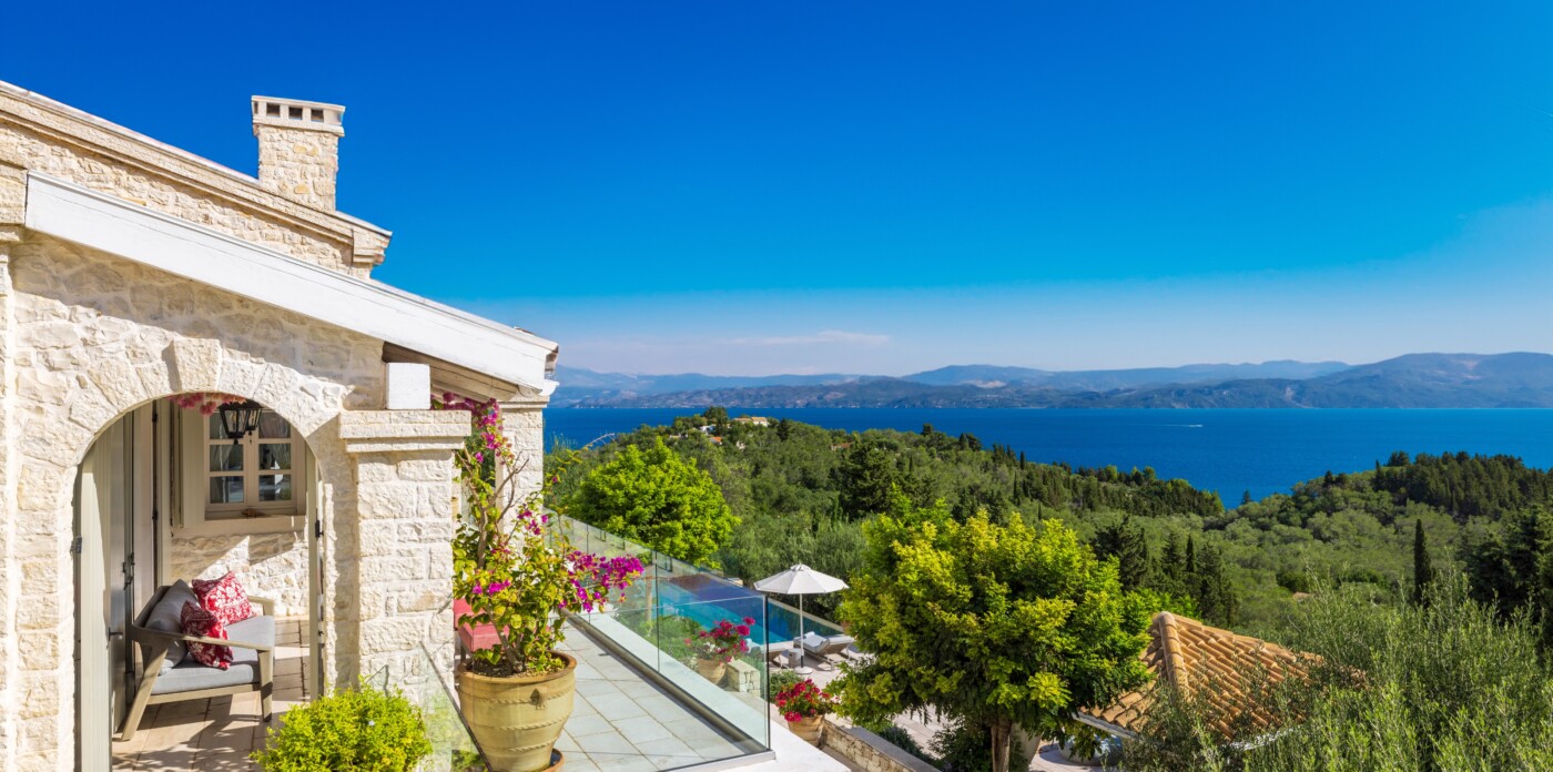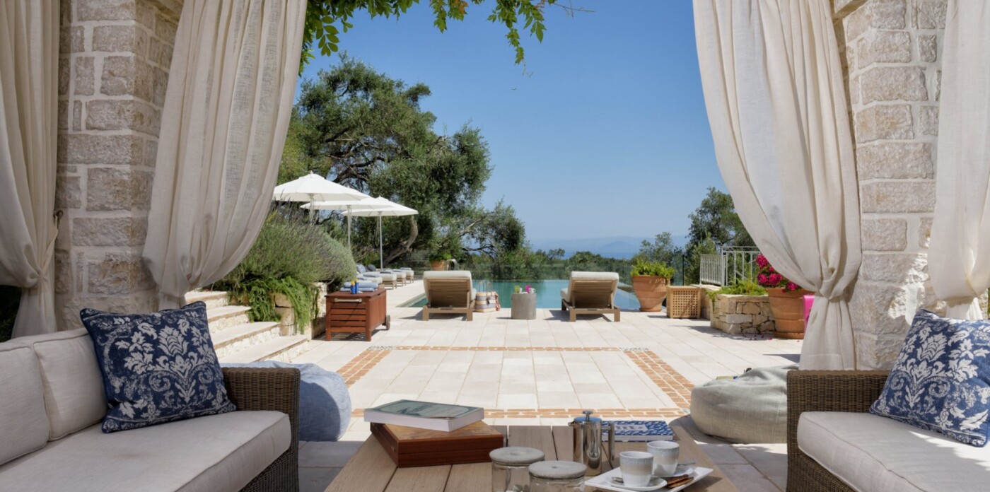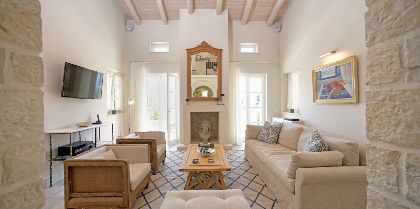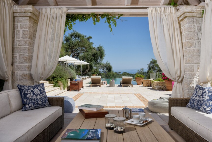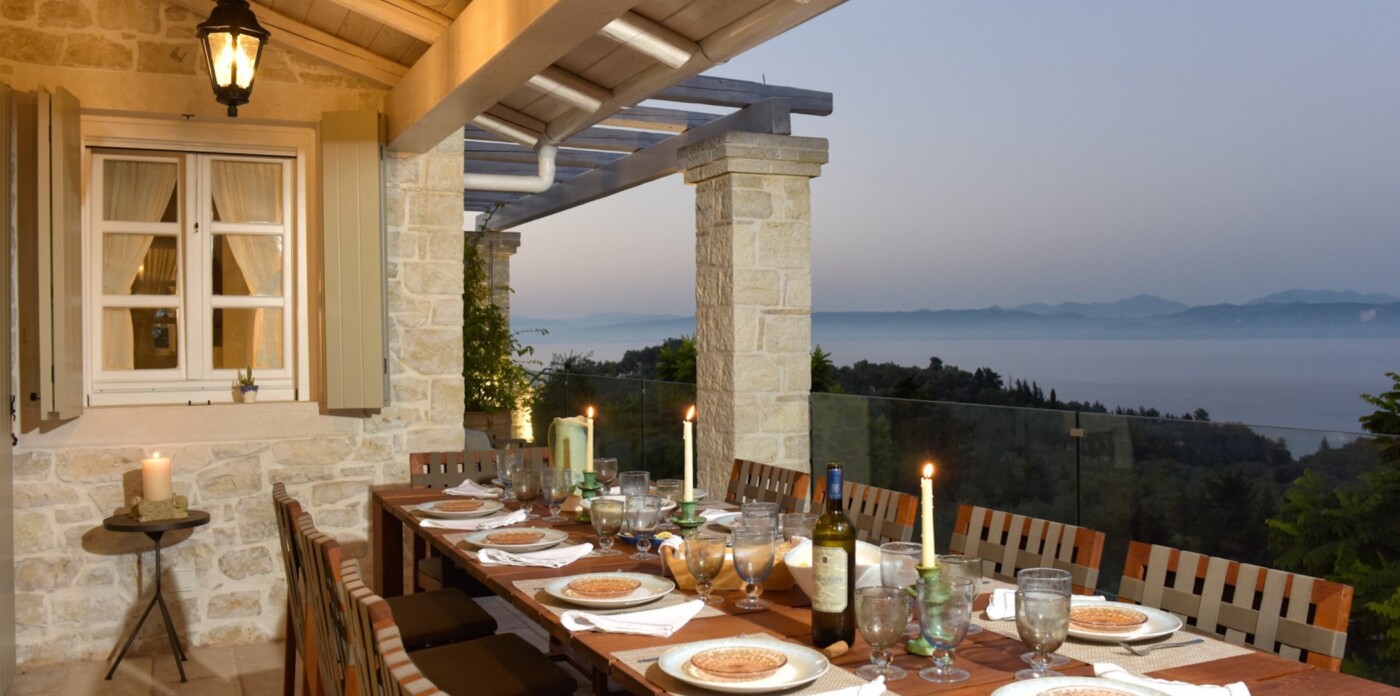 Η κύρια κατοικία διαθέτει 3 δίκλινα υπνοδωμάτια με θέα στη θάλασσα, μια κύρια σουίτα με ιδιωτικό τζακούζι, υπαίθριο μπάνιο και βεράντα και ένα εκλεπτυσμένο καθιστικό με ημιώροφο και γωνιά βιβλιοθήκης. Επιπλέον, μια υπαίθρια κουζίνα & μπάρμπεκιου με σαρωτική θέα στο Ιόνιο, καθώς και ιδιωτικό γυμναστήριο, αίθουσα ψυχαγωγίας & πισίνα υπερχείλισης 15 μέτρων.