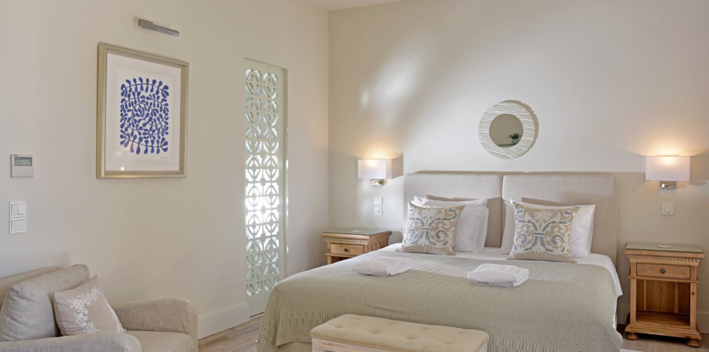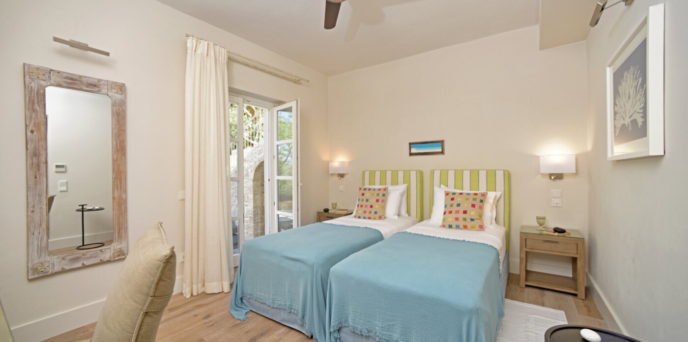 Αποτελούμενο από δύο κομψές πέτρινες κατοικίες, αυτό το ιδιωτικό κτήμα φιλοξενεί 12+ επισκέπτες. Σκεφτείτε μαλακά σεντόνια, ηλιόλουστες βεράντες, πανοραμική θέα στη θάλασσα και το άρωμα του γιασεμιού να πλανάται στον αέρα. Κάθε εξοχικό σπίτι είναι ένας κόσμος από μόνο του - με ευρύχωρα υπνοδωμάτια με ιδιωτικό μπάνιο, φωτεινούς χώρους καθιστικού και γοητευτικές γωνιές που προσφέρονται για παρατεταμένες συζητήσεις και κοινές γιορτές.