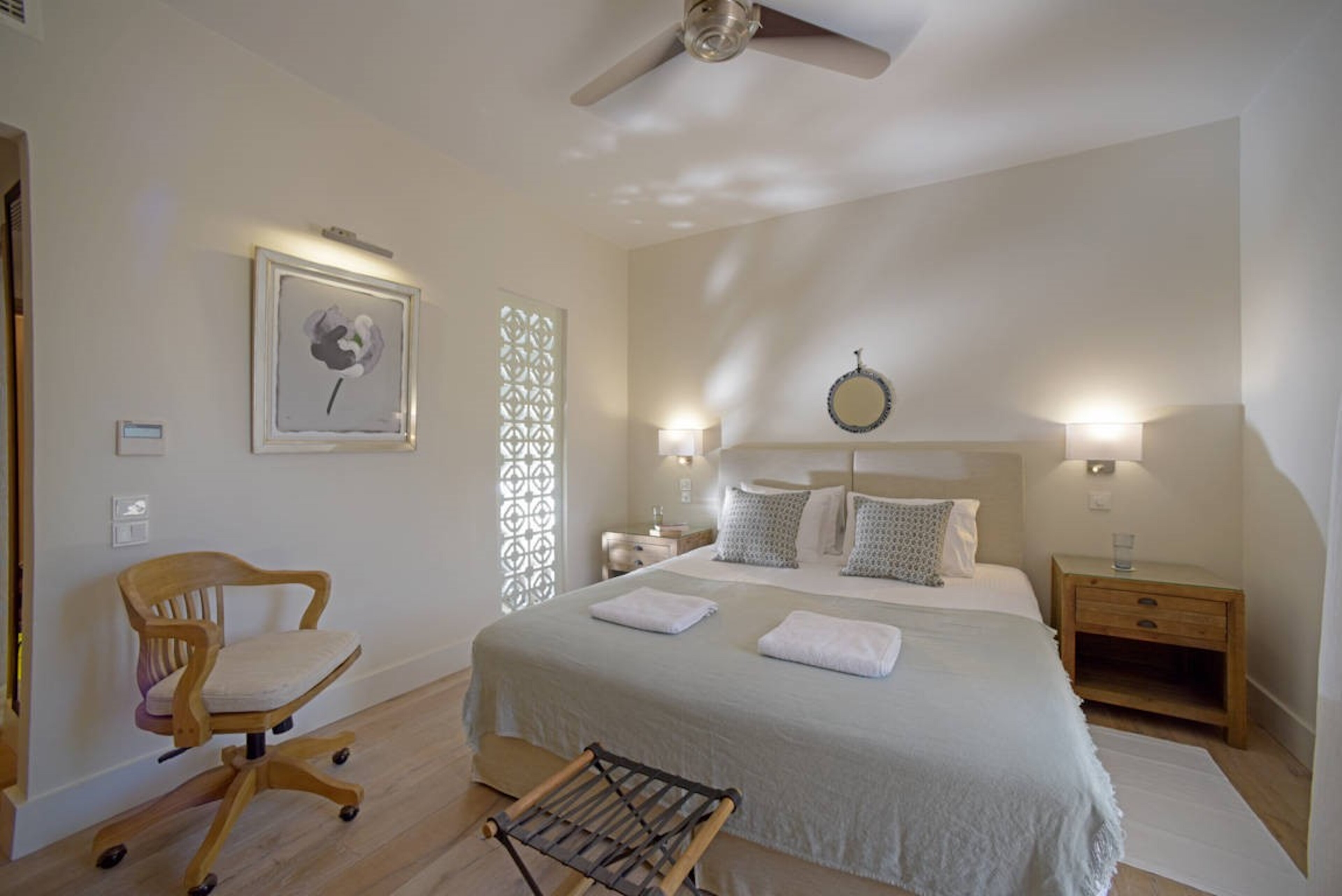 Το εξοχικό διαθέτει 3 υπνοδωμάτια με διπλό κρεβάτι και θέα στη θάλασσα, 3 υπνοδωμάτια με διπλό κρεβάτι και θέα στη θάλασσα, κουζίνα και σαλόνι σε ενιαίο χώρο που ανοίγουν σε πανοραμικές βεράντες και μια πισίνα υπερχείλισης 8,5 μέτρων με ρωμαϊκά σκαλοπάτια.