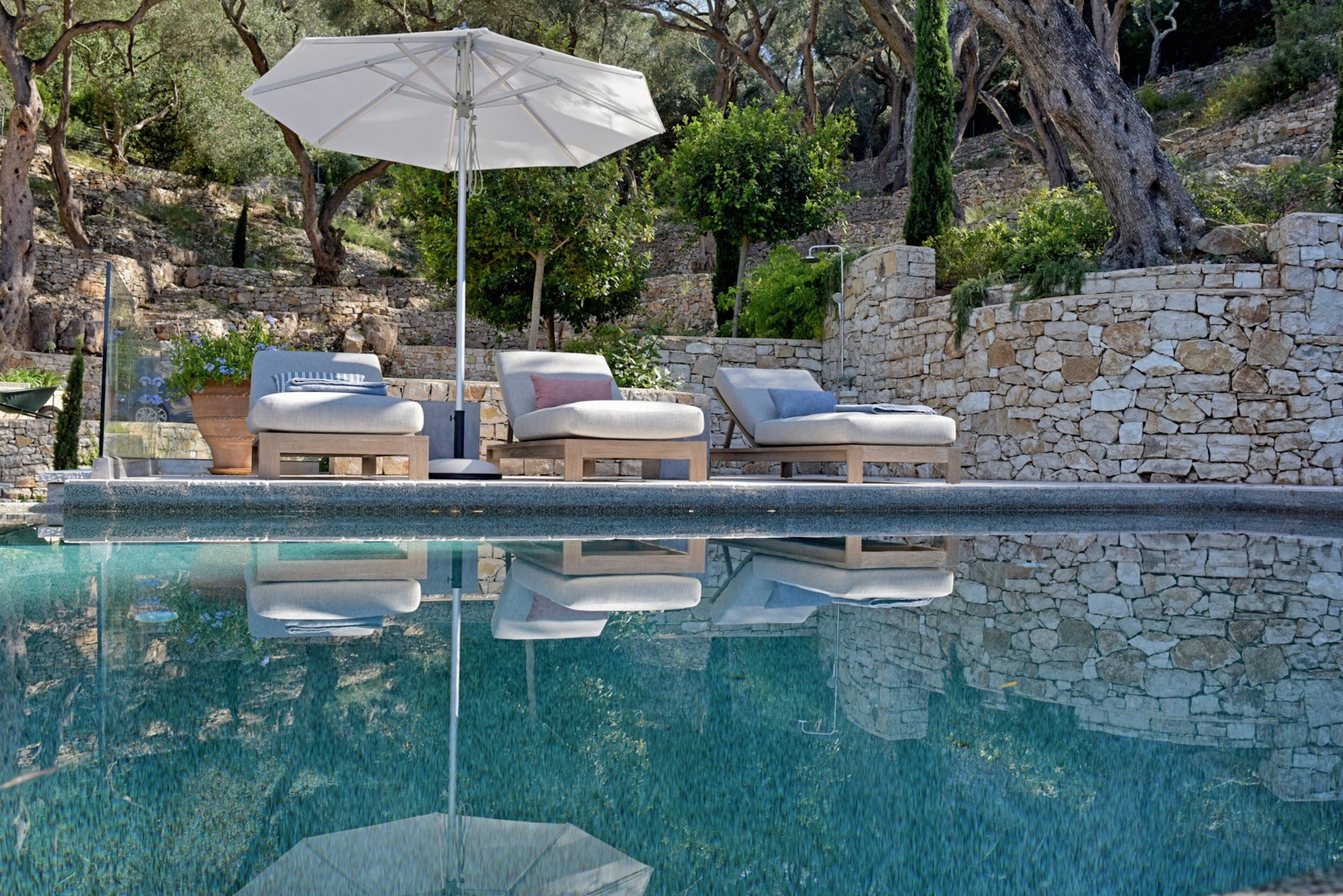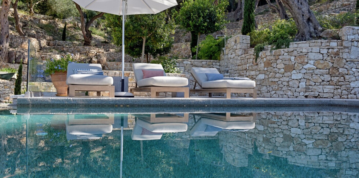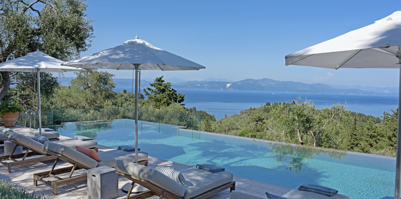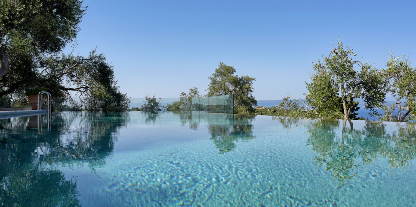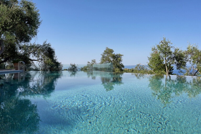 Στον εξωτερικό χώρο δύο πισίνες υπερχείλισης λάμπουν κάτω από τον μεσογειακό ήλιο, ενώ οι σκιερές πέργκολες προσκαλούν σε χαλαρά απογεύματα.