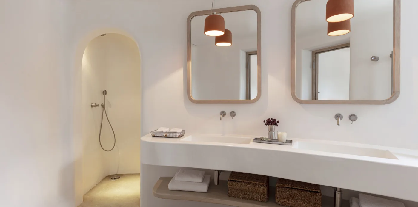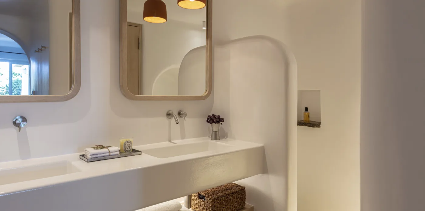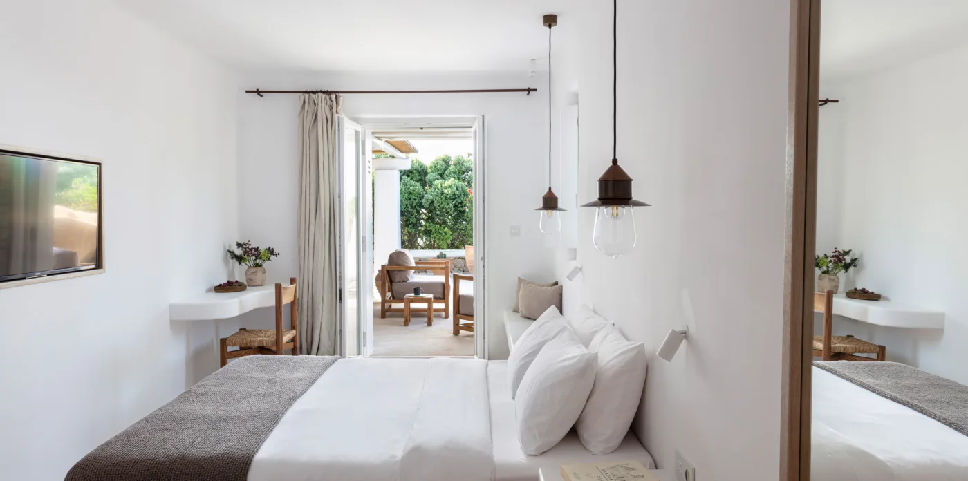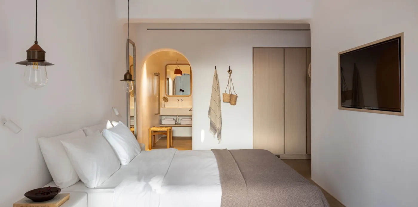 Ενώ ο σχολαστικός επανασχεδιασμός του καταλύματος βασίζεται στα κλασικά χαρακτηριστικά της παραδοσιακής κυκλαδίτικης αρχιτεκτονικής, οι εντυπωσιακές σύγχρονες σχεδιαστικές πινελιές και οι τεχνολογικές ανέσεις εμφανίζονται παντού, από τους ευάερους κοινόχρηστους χώρους μέχρι τα οικεία υπνοδωμάτια και παντού ενδιάμεσα. Οι ευκαιρίες για χαλάρωση είναι άφθονες: αναζητήστε την αναζωογόνηση στον ειδικό χώρο ευεξίας, ο οποίος είναι εξοπλισμένος με ένα πολυτελές χαμάμ, αίθουσα μασάζ και γυμναστήριο, ή κατεβείτε πιο κάτω στο καταφύγιο με τους καταρράκτες στην εκτεταμένη θερμαινόμενη πισίνα με θέα το γαλάζιο της Μεσογείου. Εναλλακτικά, εγκατασταθείτε στην αίθουσα κινηματογράφου, όπου ταινίες και τηλεοπτικές εκπομπές μπορούν να προβάλλονται απευθείας στους ασβεστωμένους τοίχους.