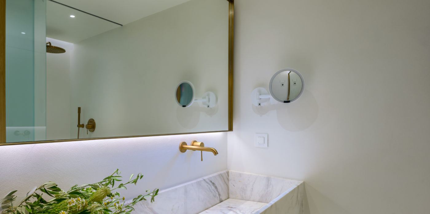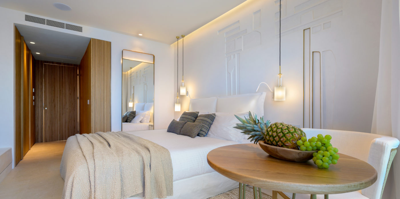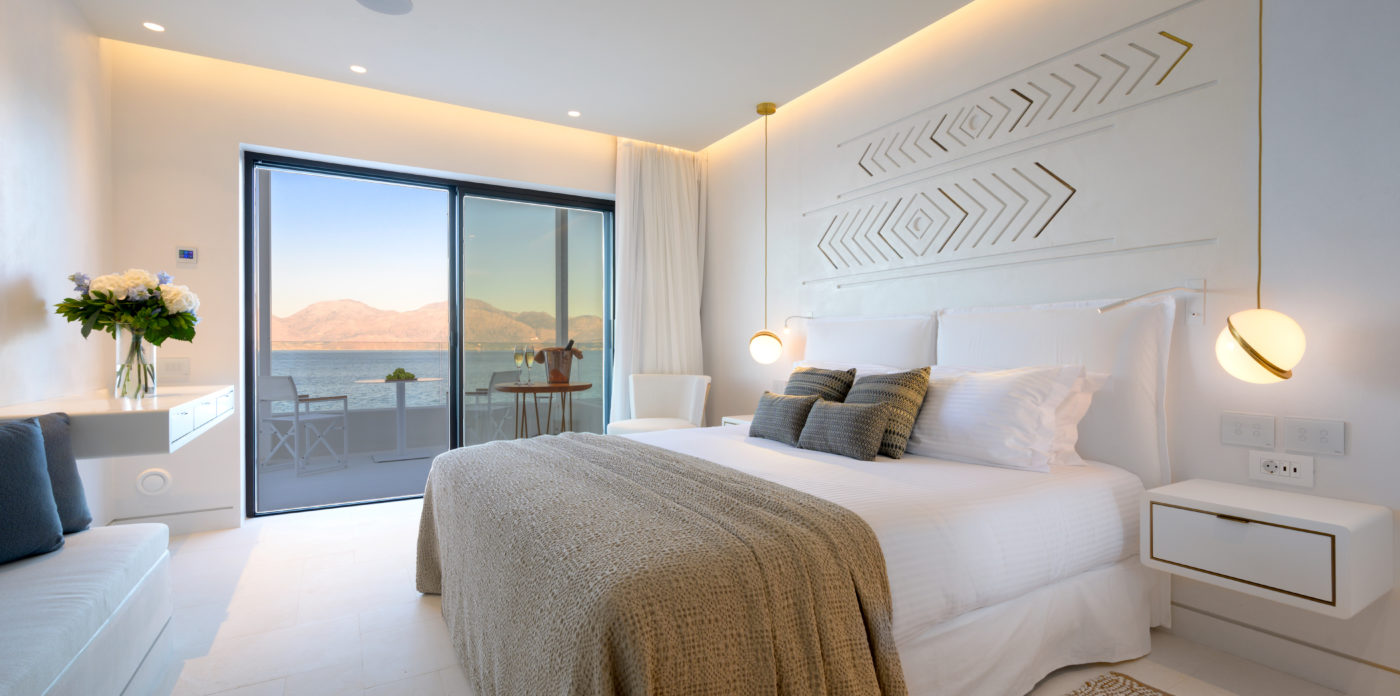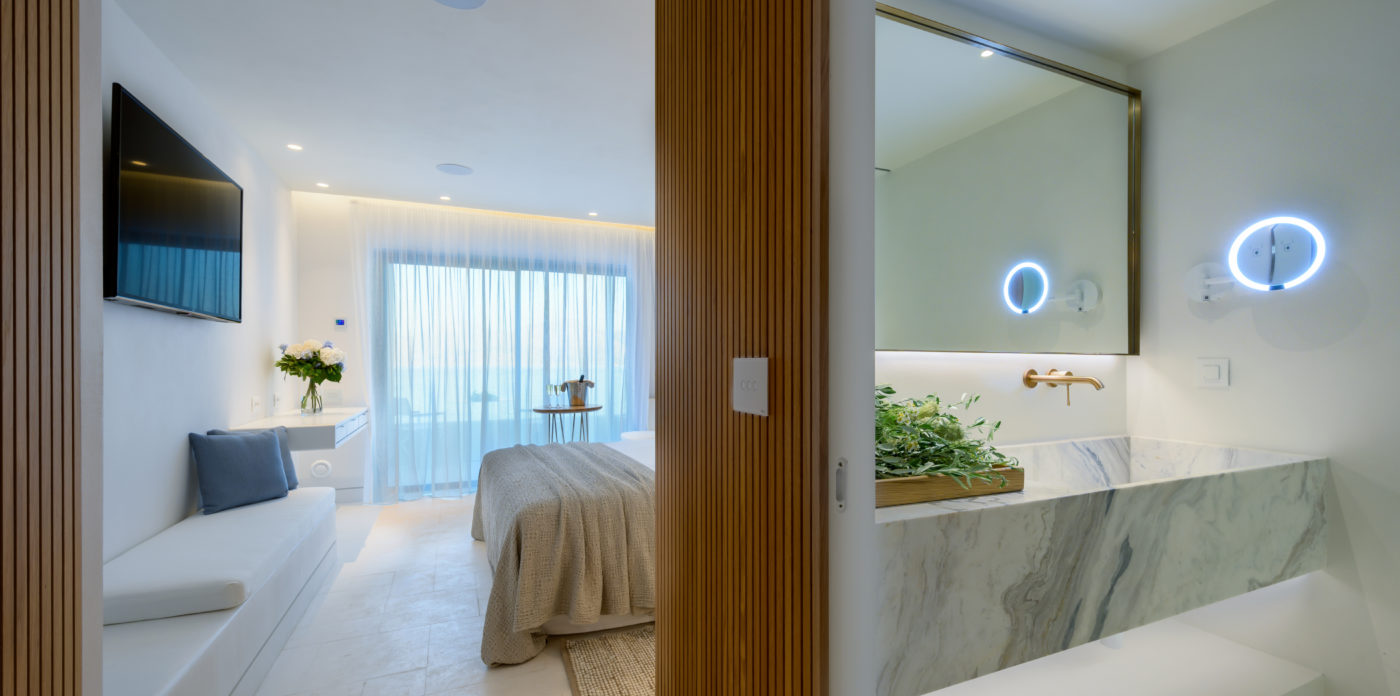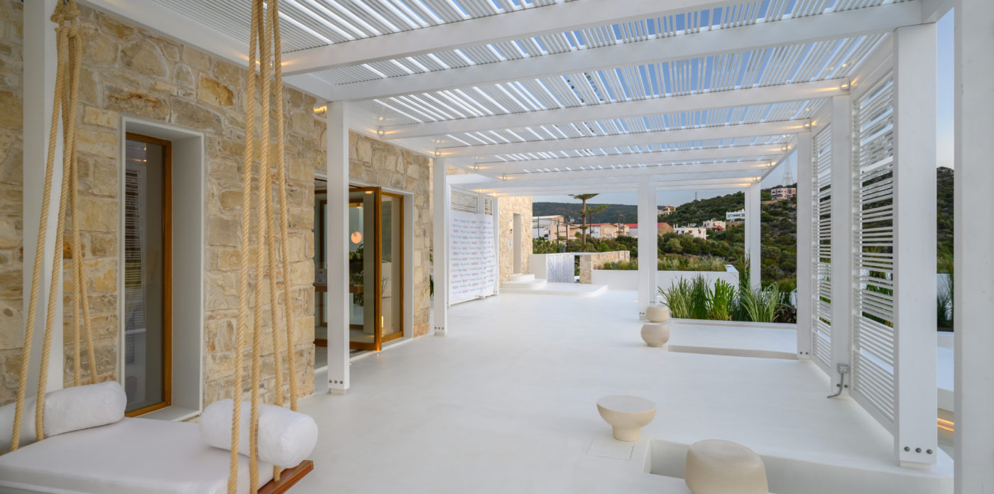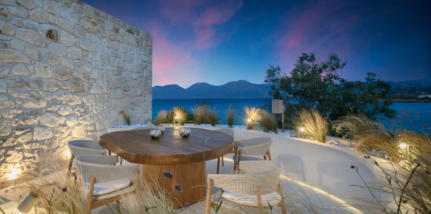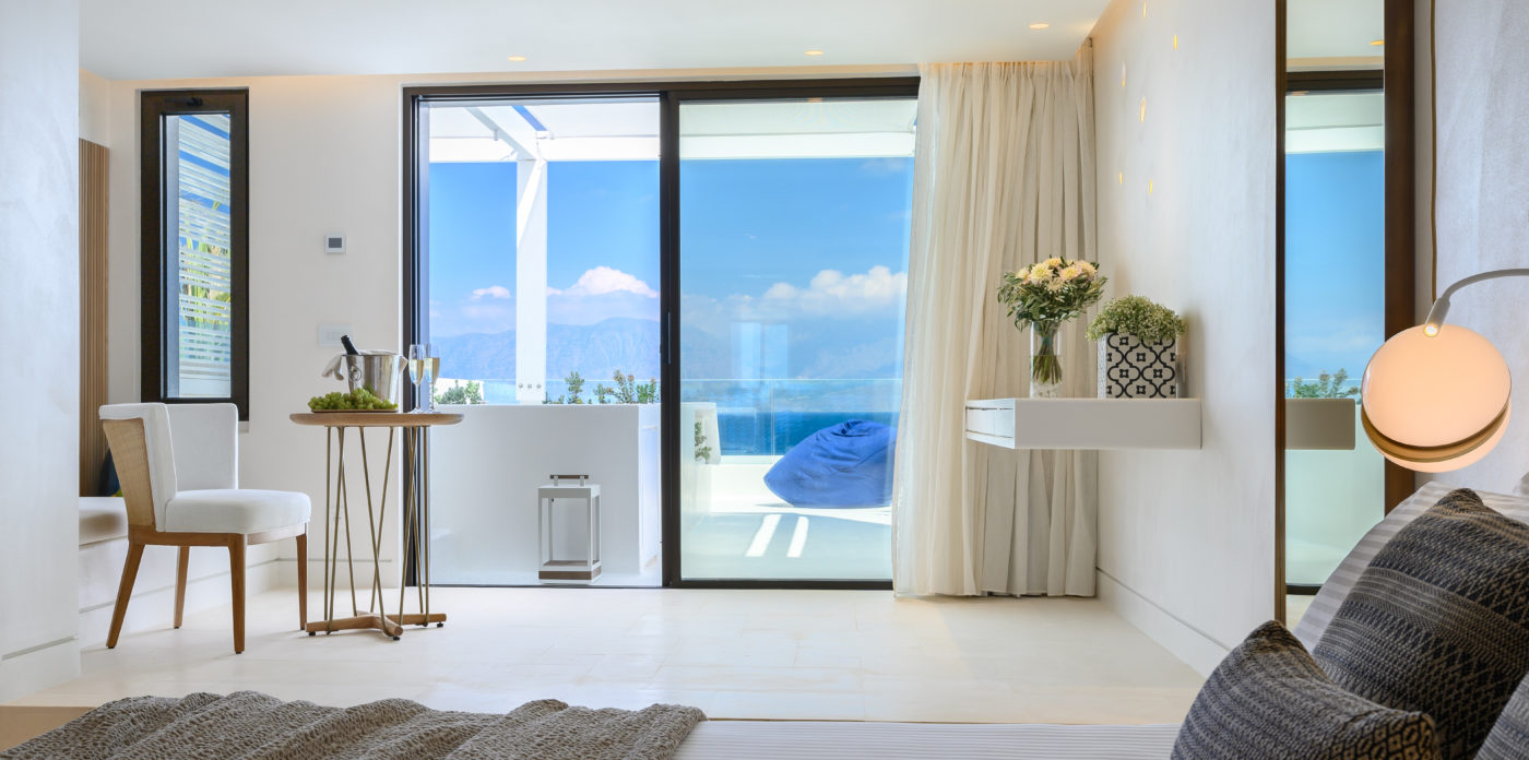 Το ασβεστωμένο παραθαλάσσιο θέρετρο διαθέτει μινιμαλιστικό σχεδιασμό που σέβεται τη σύγχρονη αρχιτεκτονική των ελληνικών νησιών και προσφέρει μια αυθεντική, αλλά σύγχρονη εμπειρία, συνδυάζοντας πολυτελή διαμονή με την εμβληματική κρητική φιλοξενία. Όλοι οι χώροι είναι ευρύχωροι και ευάεροι, γεμάτοι με άπλετο φυσικό φως. Τα μεγάλα κουφώματα ανοίγουν σε ευάερα μπαλκόνια και βεράντες, ξαπλώστρες και ξαπλώστρες ή μεγαλύτερες βεράντες, οι οποίες προσφέρουν εκπληκτική θέα στο Κρητικό Πέλαγος.