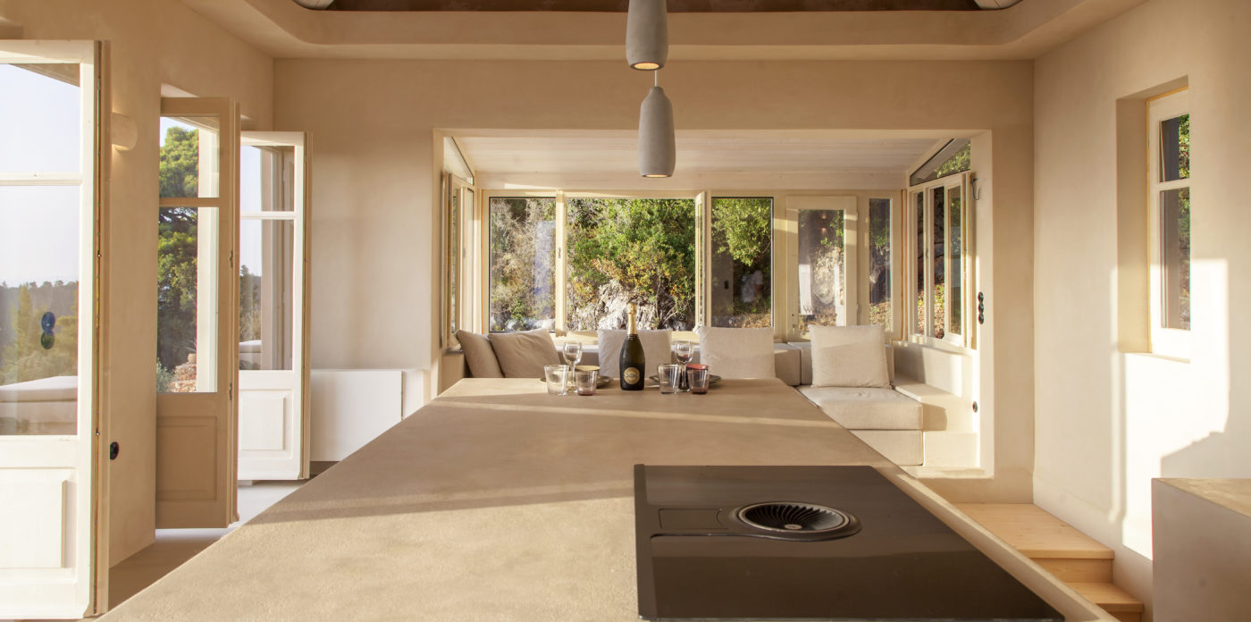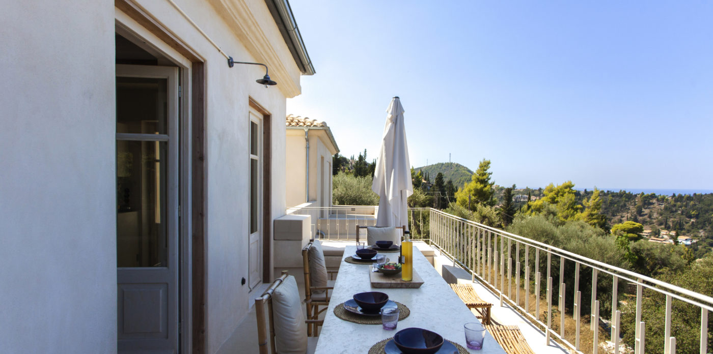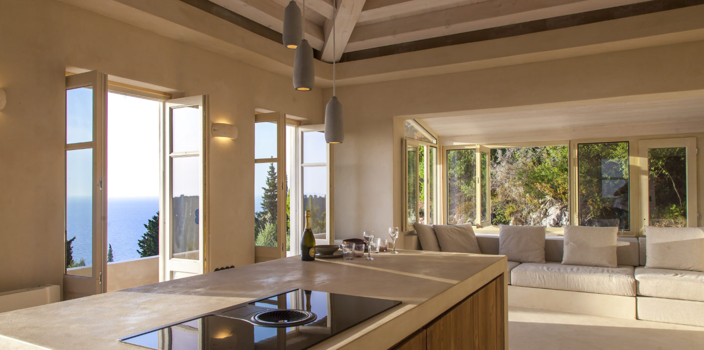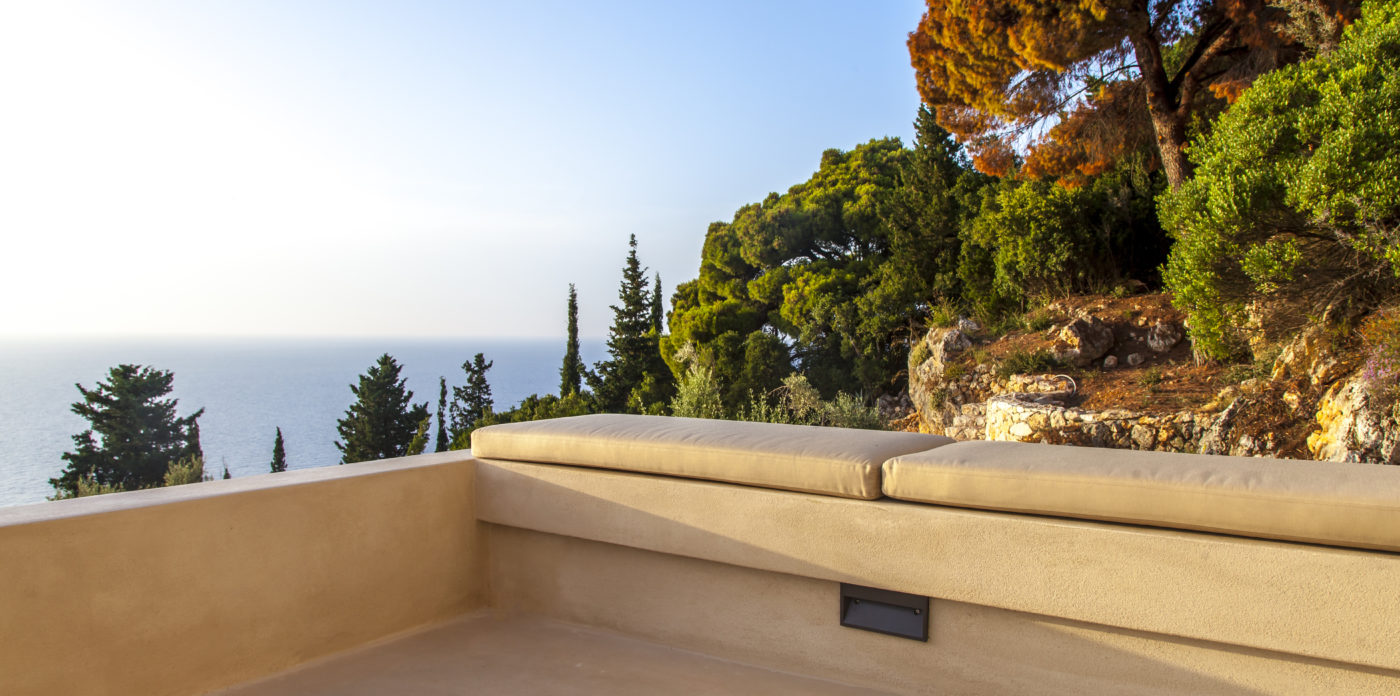 Το καθιστικό του σαλονιού έχει μια έκταση παραθύρων με φόντο την πλαγιά του βουνού που φέρνει φυσικά ένα αεράκι και το καθιστά ιδανική γωνιά για μια απογευματινή σιέστα. Υπάρχει ένα όμορφο μπαλκόνι που μπορεί να προσεγγιστεί από το ανώτερο επίπεδο, το οποίο θα είναι το μέρος για να συναντηθείτε με φίλους και οικογένεια τα απογεύματα για να απολαύσετε τα καταπληκτικά ηλιοβασιλέματα του Ιονίου.