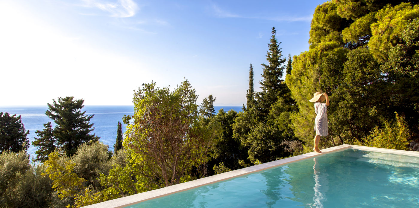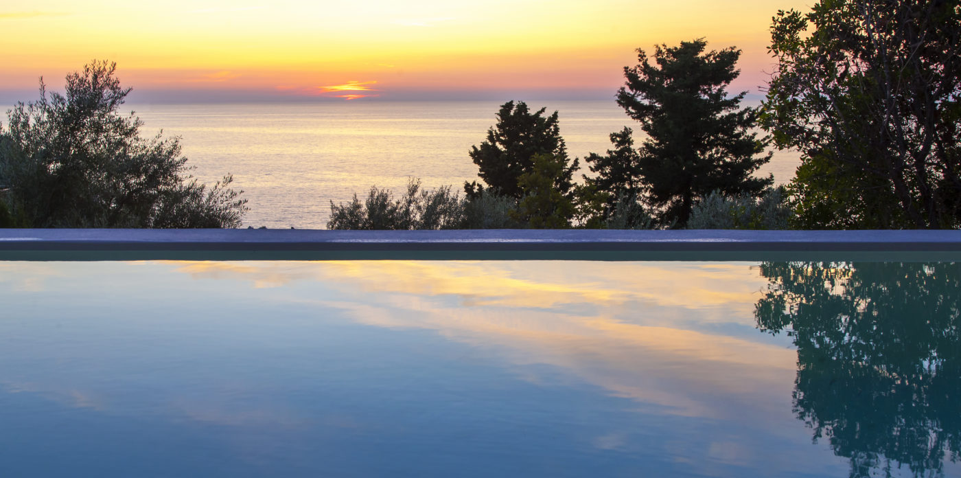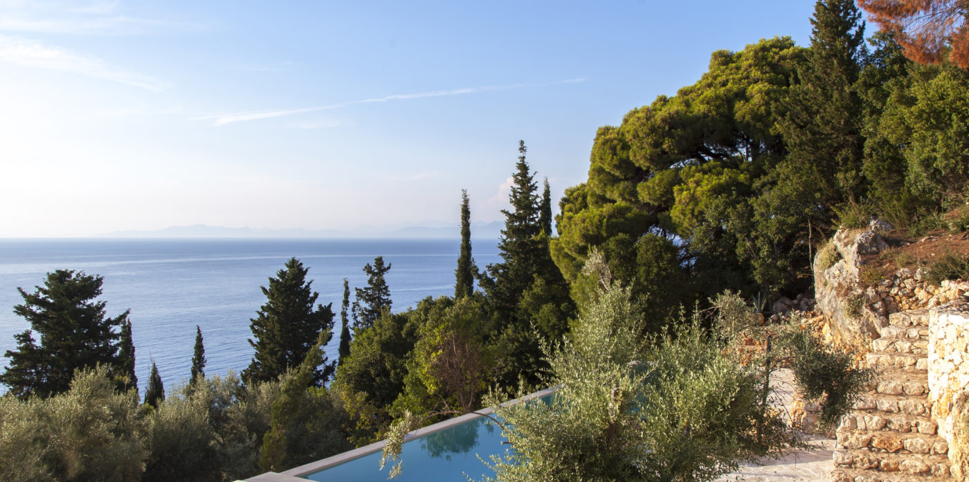 Οι εξωτερικοί χώροι της αποτελούνται από μια σειρά από βεράντες, κάποιες σκιερές, κάποιες άλλες για να ξαπλώνετε στον ζεστό ήλιο, που περιβάλλουν τη βίλα σε πολλά διαφορετικά επίπεδα με φόντο τα ζωντανά χρώματα του βουνού. Απολαύστε την πισίνα υπερχείλισης με θέα το Ιόνιο Πέλαγος, ενώ πίνετε τα παγωμένα κοκτέιλ σας όλες τις ώρες της ημέρας.