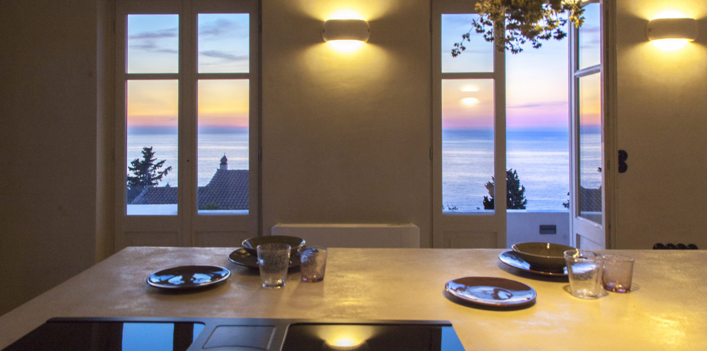 Το ανώτερο επίπεδο αποτελείται από μια ανοιχτή κουζίνα, τραπεζαρία και σαλόνι. Λουσμένος στο φυσικό φως από τις πρωινές ώρες μέχρι το βράδυ ο χώρος μοιάζει να προσελκύει τον αιώνιο ελληνικό ήλιο στα καλύτερά του ! Η κουζίνα και η τραπεζαρία θα είναι το αγαπημένο σας μέρος για να καθίσετε και να πάρετε αυθεντικό ελληνικό πρωινό απολαμβάνοντας την πρωινή θέα στο Ιόνιο Πέλαγος.