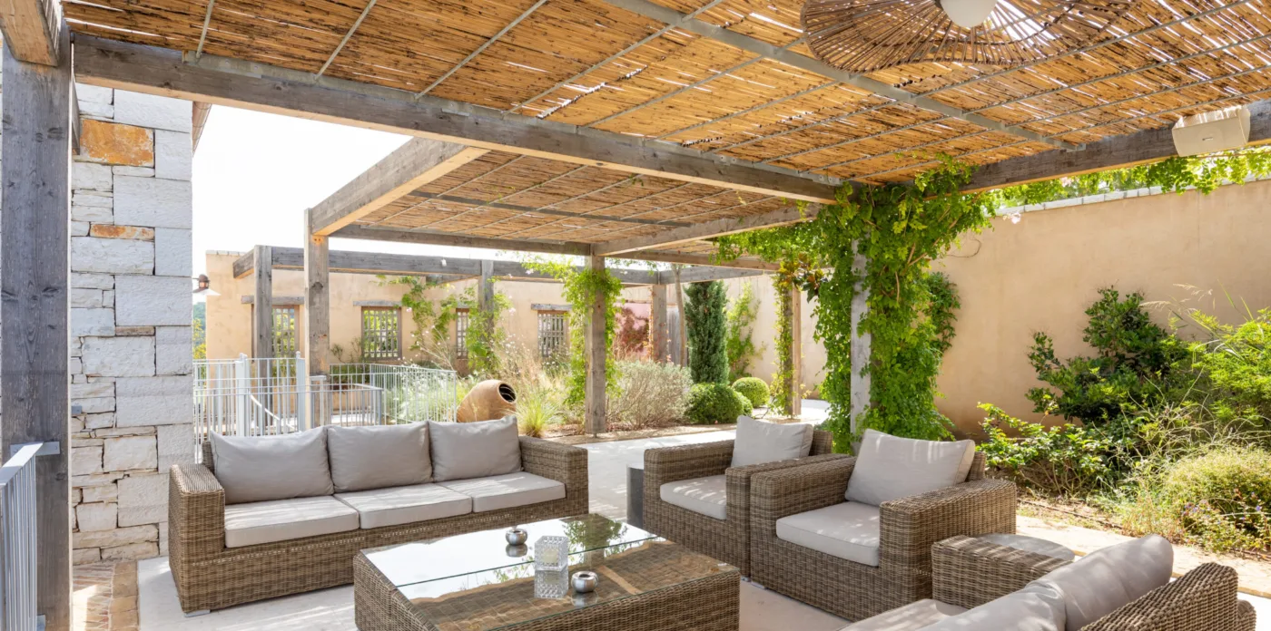 - Μεγάλο καθιστικό και τραπεζαρία στην επάνω βεράντα (τραπεζαρία για έως και 40 άτομα)
