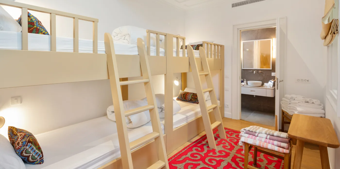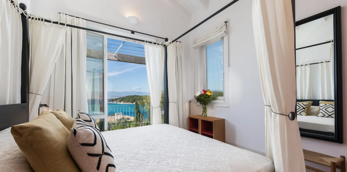Τέσσερα κύρια δίκλινα υπνοδωμάτια και ένα δωμάτιο με κουκέτα για τέσσερα άτομα μπορούν να φιλοξενήσουν συνολικά έως 12 άτομα. Η πρόσβαση στην παραλία και την προβλήτα είναι δυνατή μέσω της βεράντας της πισίνας στο πλάι του καταλύματος, μέσω ενός καλά κατασκευασμένου πέτρινου μονοπατιού.