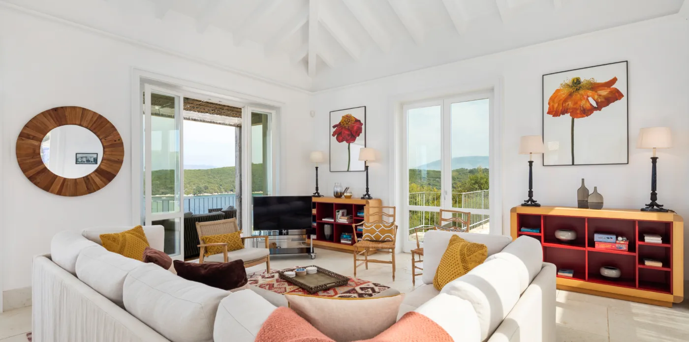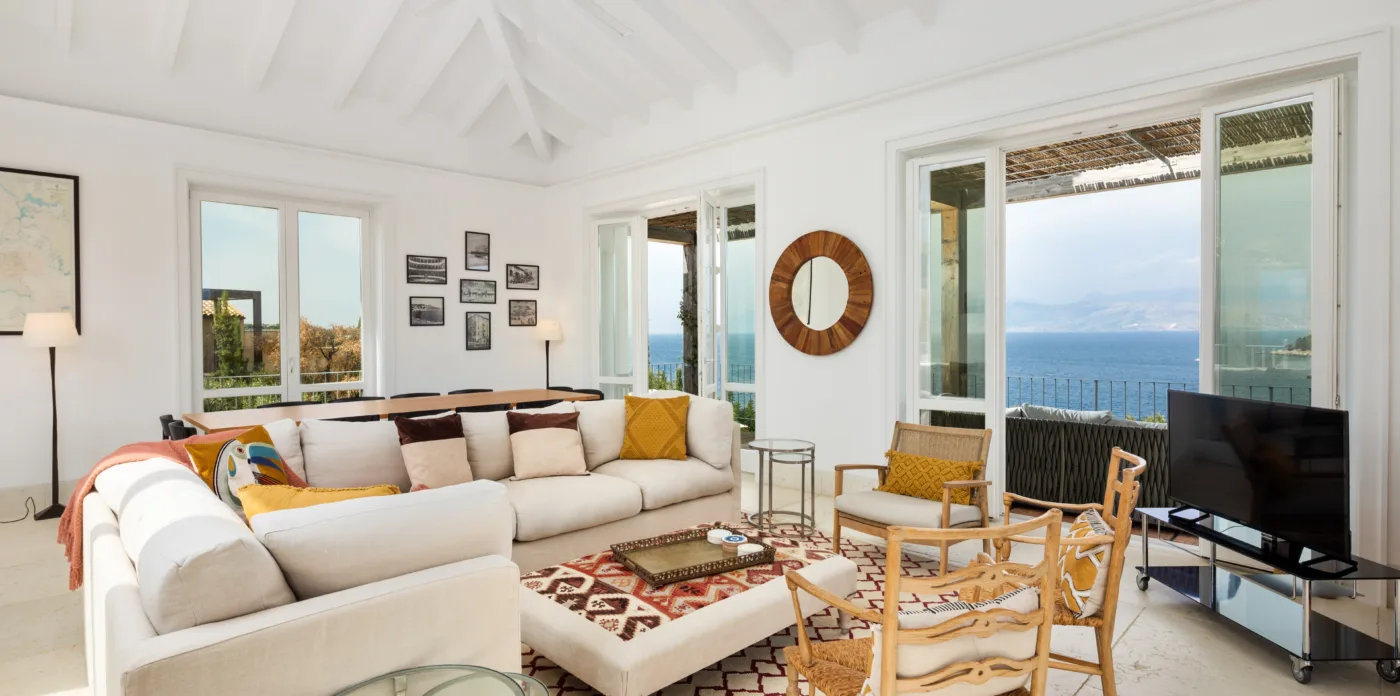 - Αίθουσα τηλεόρασης, με επιτοίχια έξυπνη τηλεόραση 72 ιντσών, μεγάλο καναπέ και καναπέδες-κρεβάτια, αέρα
