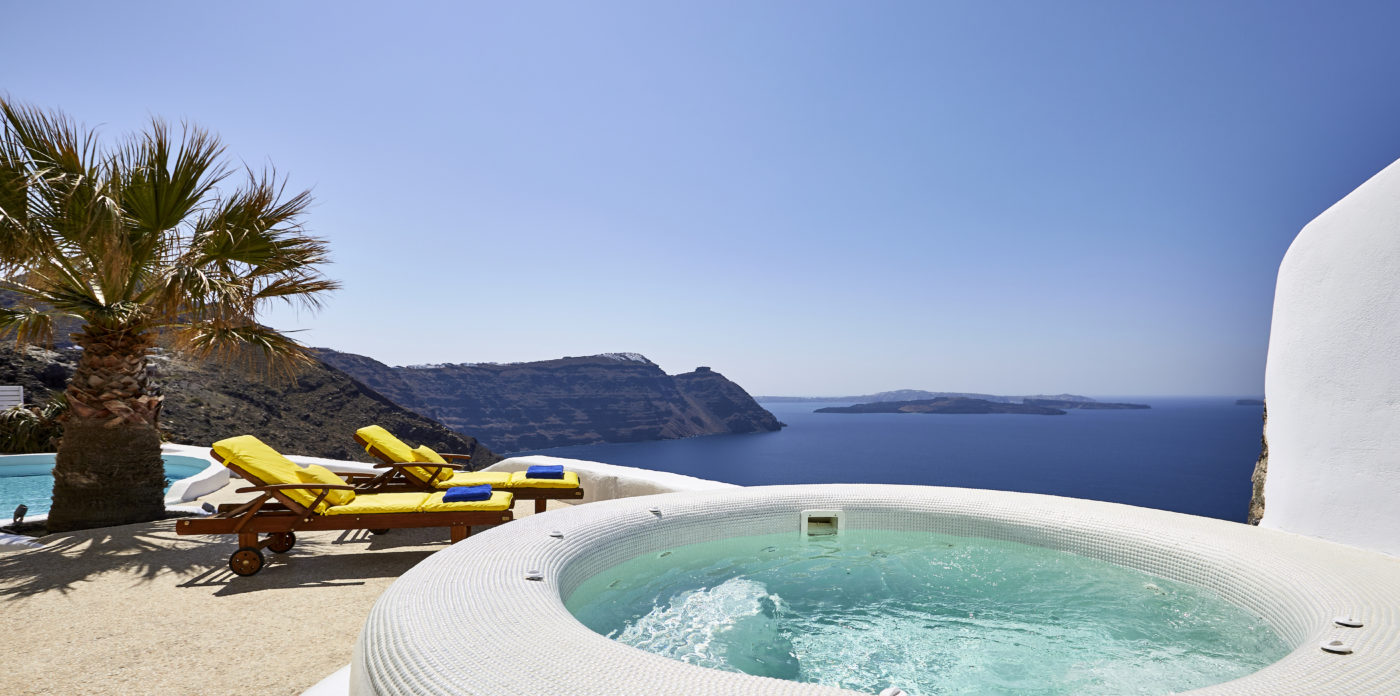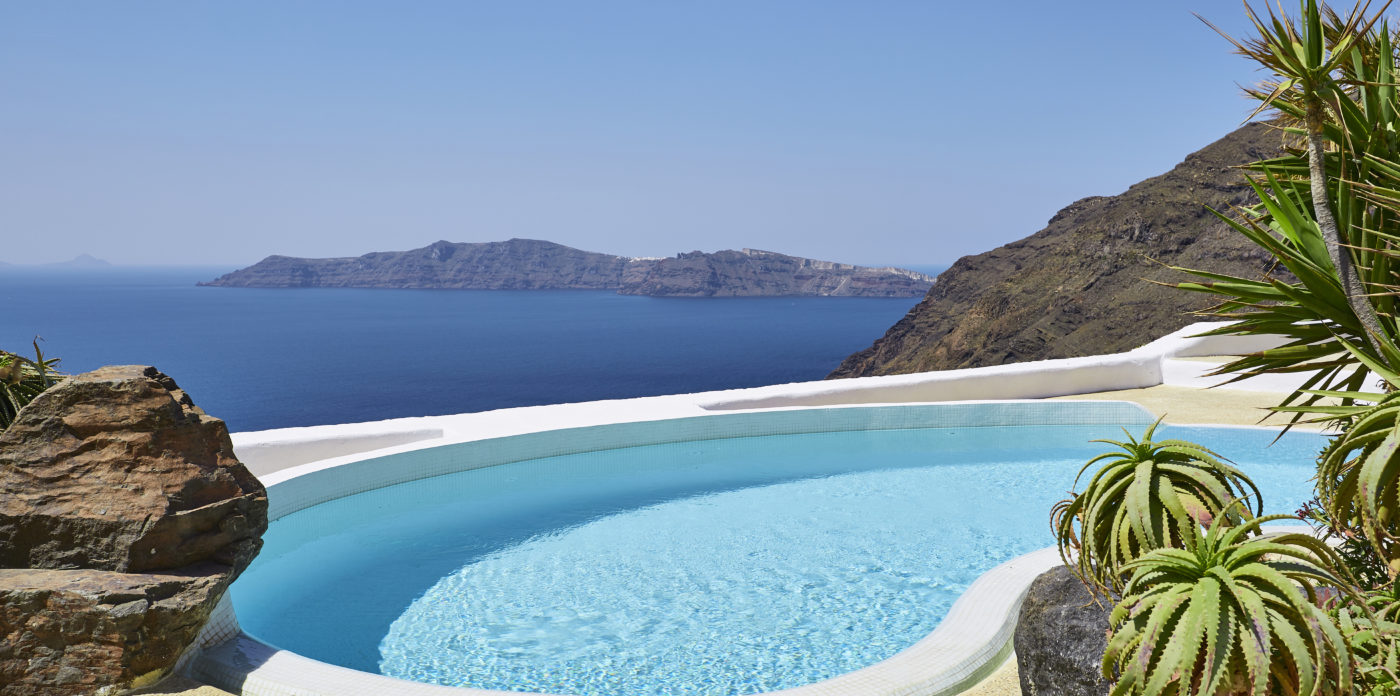 Αυτή η ηλιόλουστη και ζωηρή βίλα είναι χτισμένη μέσα στο λαξευμένο ηφαιστειακό βράχο και διαθέτει την πιο εκπληκτική θέα στη θάλασσα και το νησί. Με καμπύλους τοίχους και καμάρες, χαρακτηριστικές της παραδοσιακής αρχιτεκτονικής της Σαντορίνης, το ακίνητο διαθέτει ευρύχωρα υπνοδωμάτια και καθιστικά, πισίνα με θέα στο Αιγαίο, υδρομασάζ και ανοιχτές πλακόστρωτες βεράντες με μπάρμπεκιου και ξυλόφουρνο. Συνεχίζοντας στον εξωτερικό χώρο, οι φοίνικες προσθέτουν μια τροπική αίσθηση χωρίς να κρύβουν την εκπληκτική θέα με θέα στην καλντέρα. Το φαγητό στην ύπαιθρο είναι τόσο φυσικό για τον μεσογειακό τρόπο ζωής και τα καλοκαιρινά υπαίθρια έπιπλα και η διακόσμηση είναι σκόπιμα τοποθετημένα για να απολαύσετε την πανοραμική θέα μέρα και νύχτα.