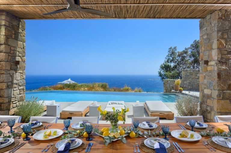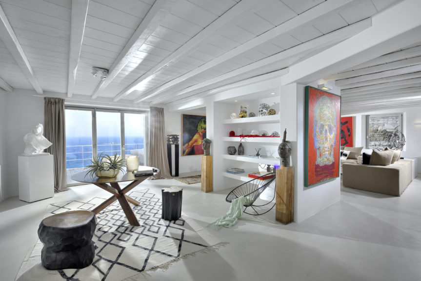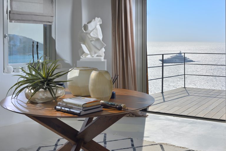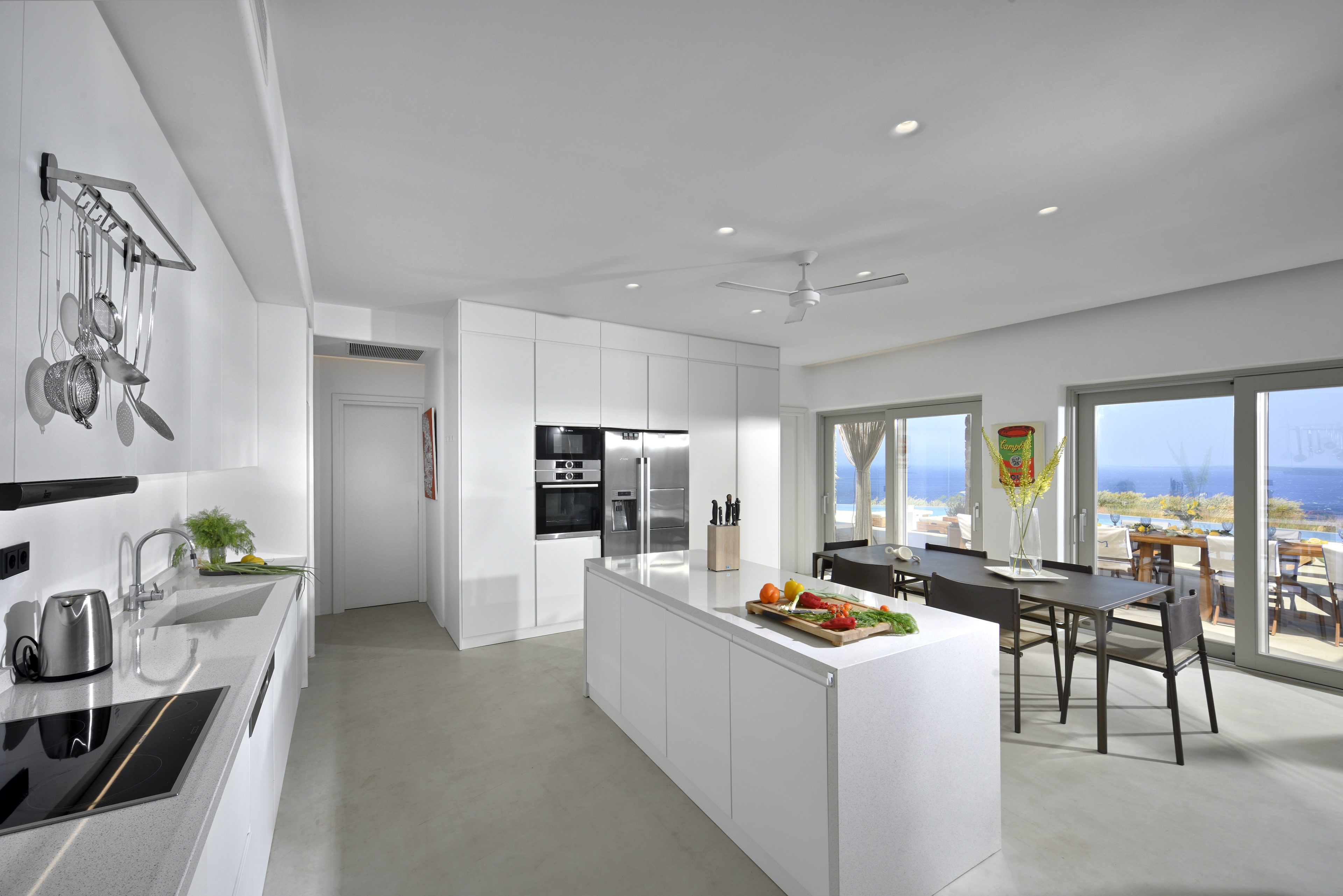 Όλα τα υπνοδωμάτια έχουν υπέροχη θέα στη θάλασσα και πρόσβαση σε ιδιωτική βεράντα.Το ευρύχωρο σαλόνι με το κεντρικό τζάκι δείχνει μια πραγματική αίσθηση του στυλ και της κομψότητας, ενώ οι καθαρές λευκές επιφάνειες κυριαρχούν σε όλους τους χώρους και διακόπτονται μόνο από πολύχρωμα εξαρτήματα. Υπάρχει ξεχωριστή κουζίνα με αποθηκευτικό χώρο και 1 δωμάτιο προσωπικού.