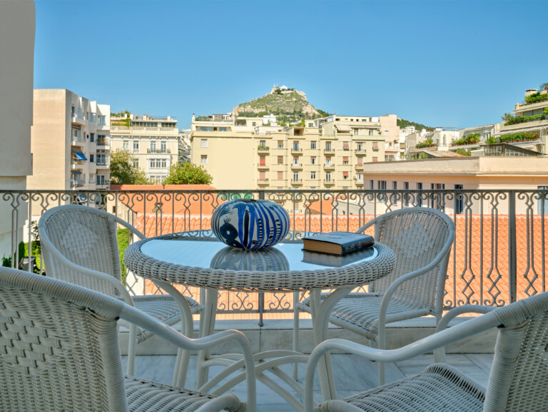 Royale features a spacious veranda that looks out to views of Lycabettus Hill. Accessible from both the living room and the TV room, it offers the ideal setting for al fresco dining or simply enjoying the Athenian sun.