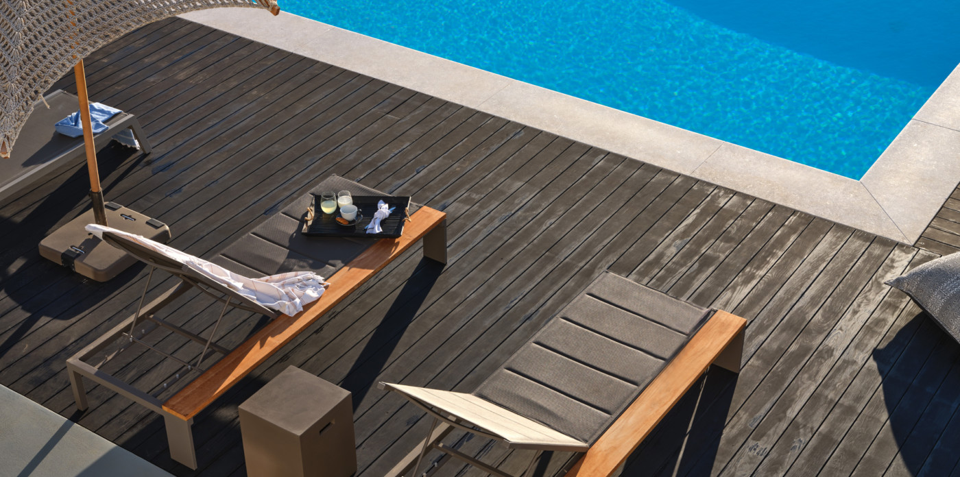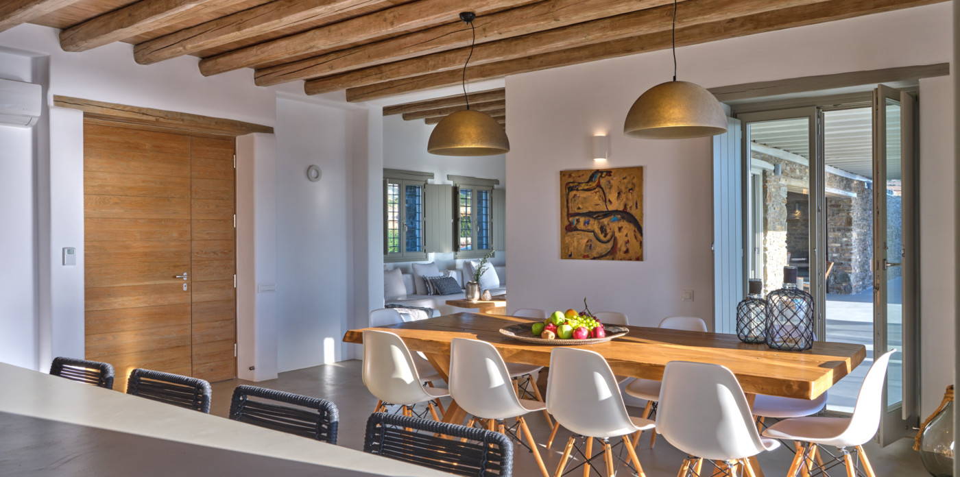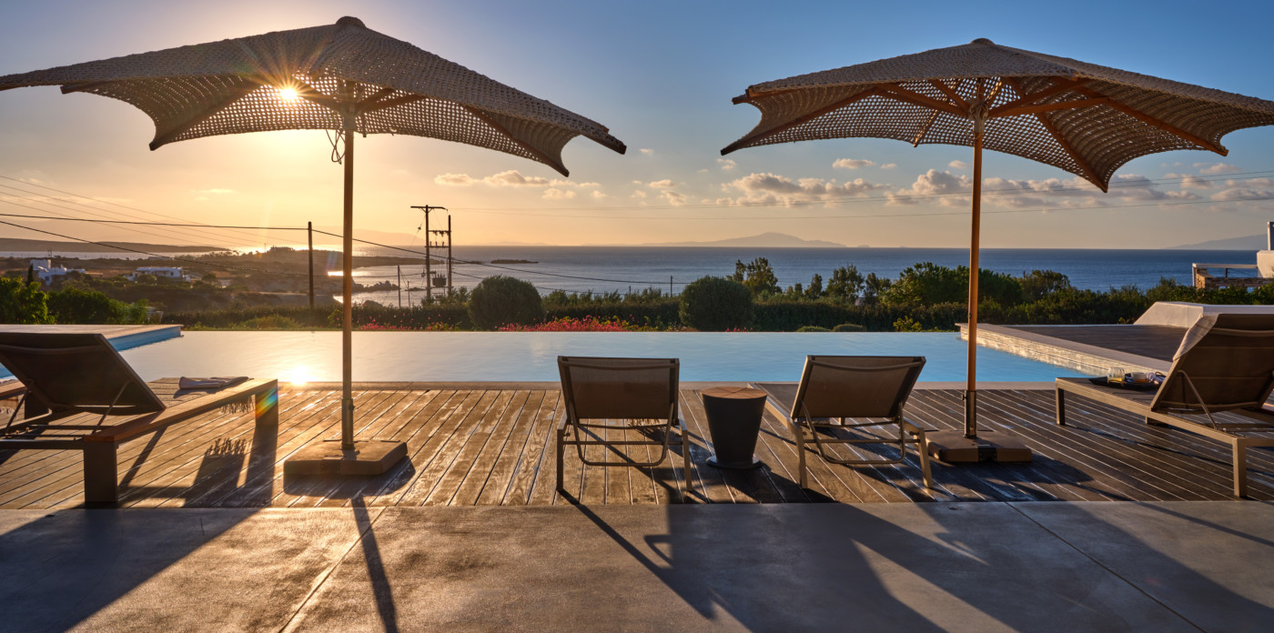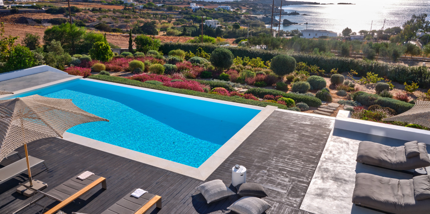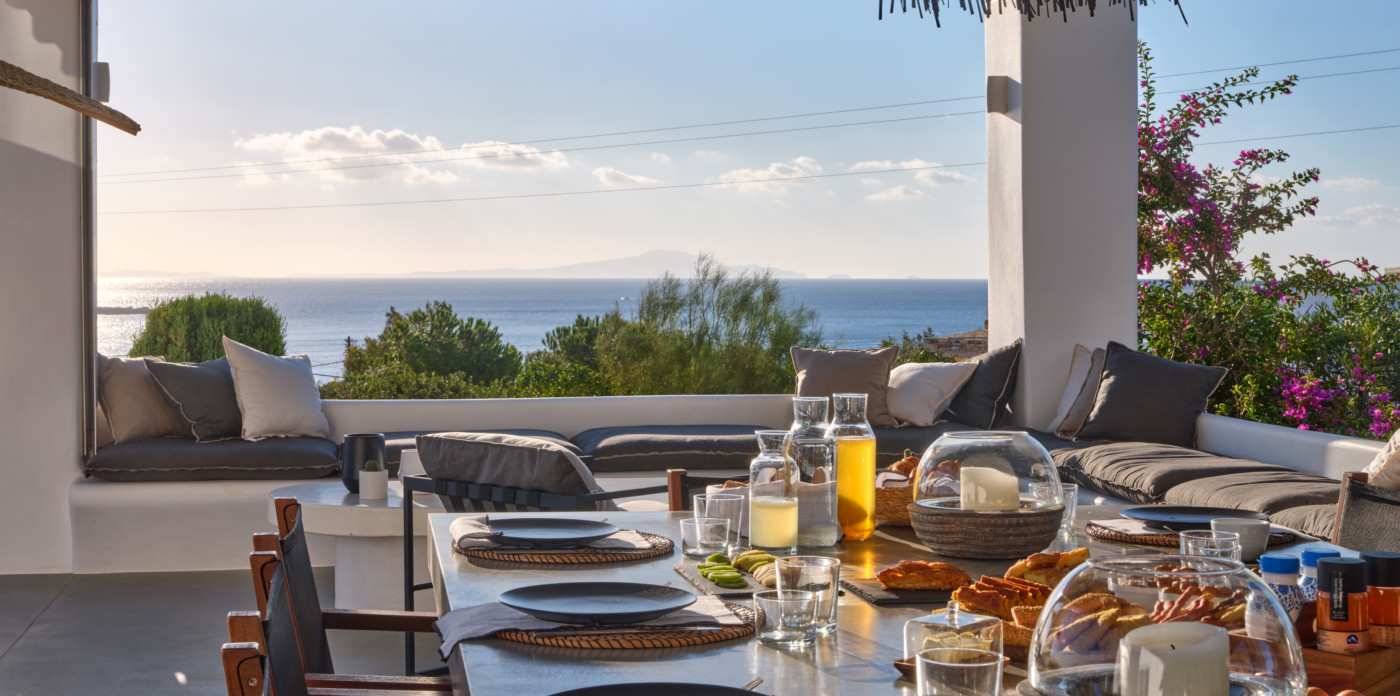 Consisting of a main house and a guesthouse with a total of seven bedrooms, Agape is the ideal property for a multigenerational escape. An inviting terrace at the front offers plenty of outdoor space and includes a lovely pool area, shaded dining, and lounge area. A large ten-seater dining table under a shaded terrace is just the spot to entertain and enjoy a barbeque or cocktails.