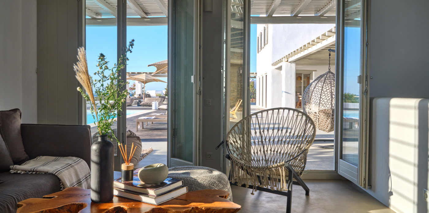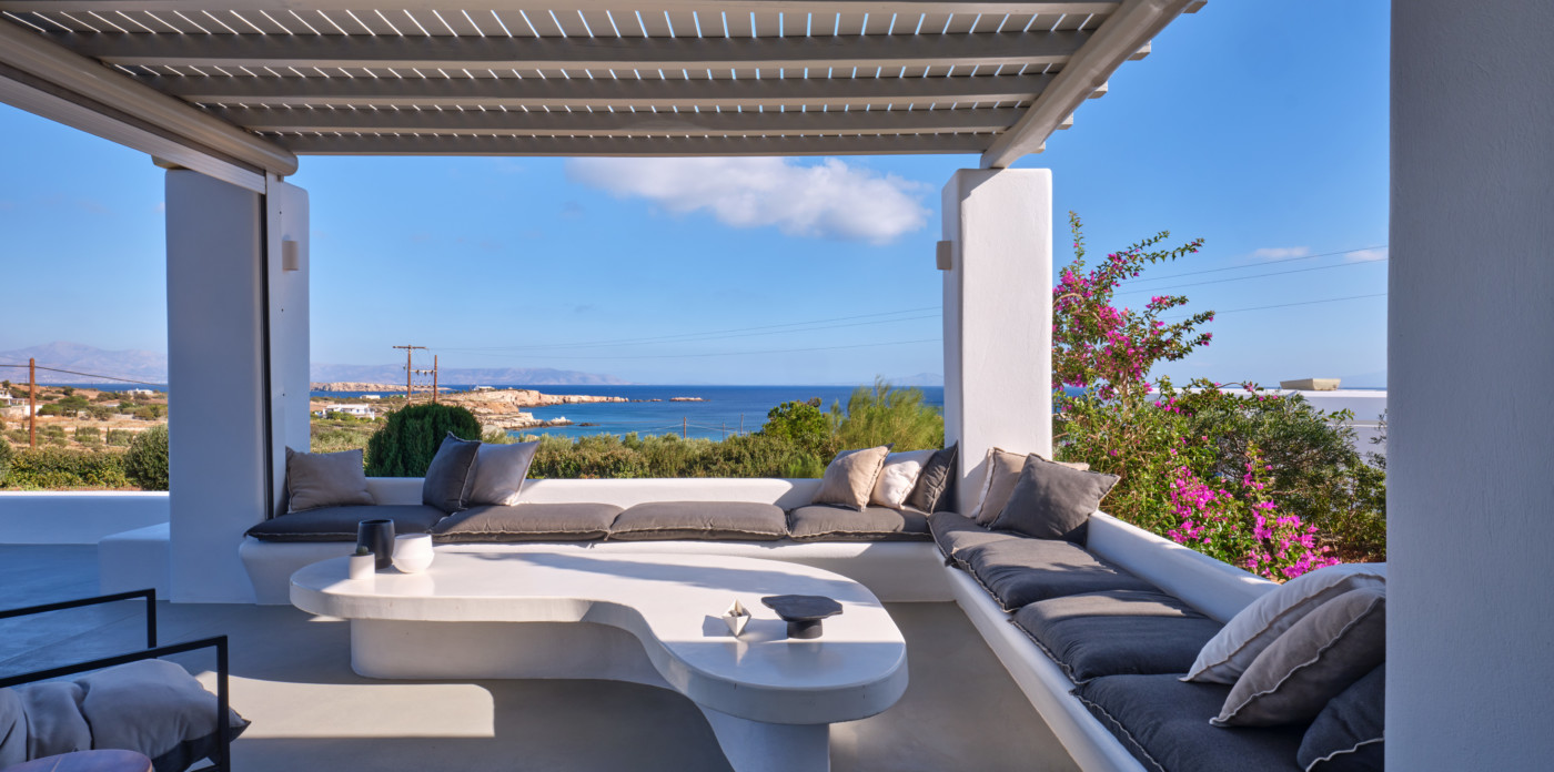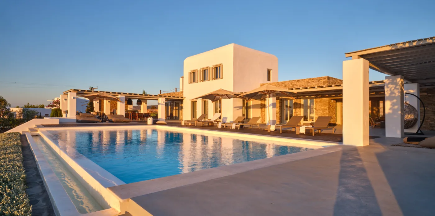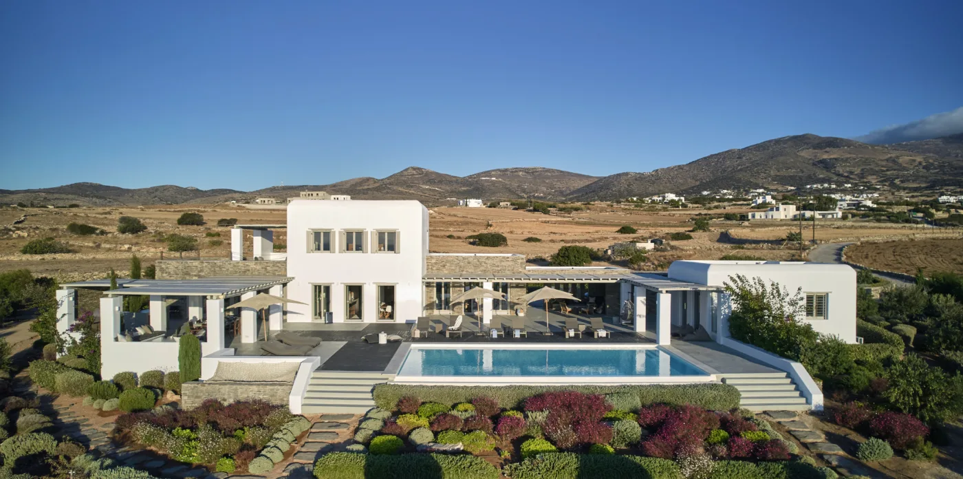 Nestled in a tranquil location, Agape is a stunning white-washed Cycladic villa just off the beaten track. This grand, newly-built mansion, provides a spacious getaway that’s only a short walk from the shimmering shoreline.