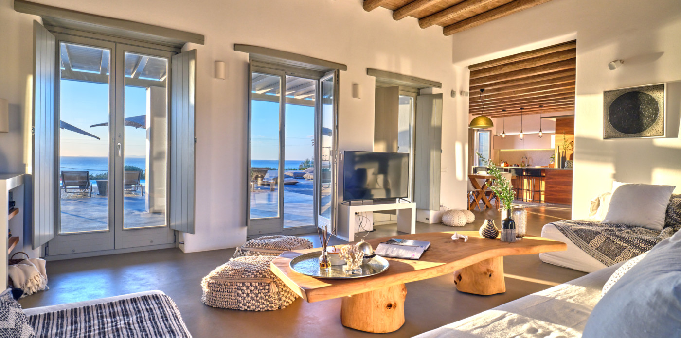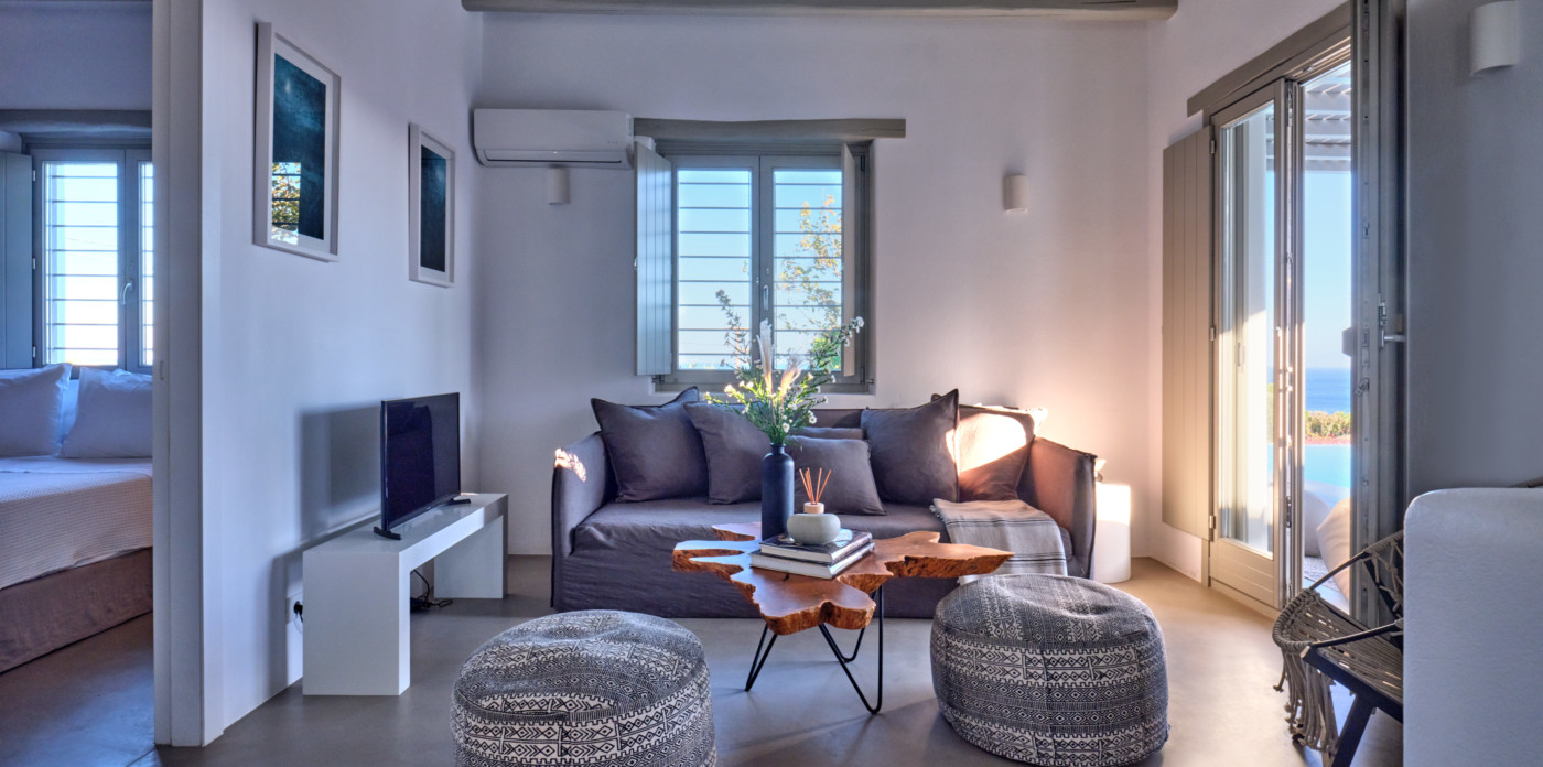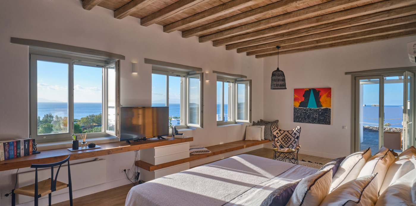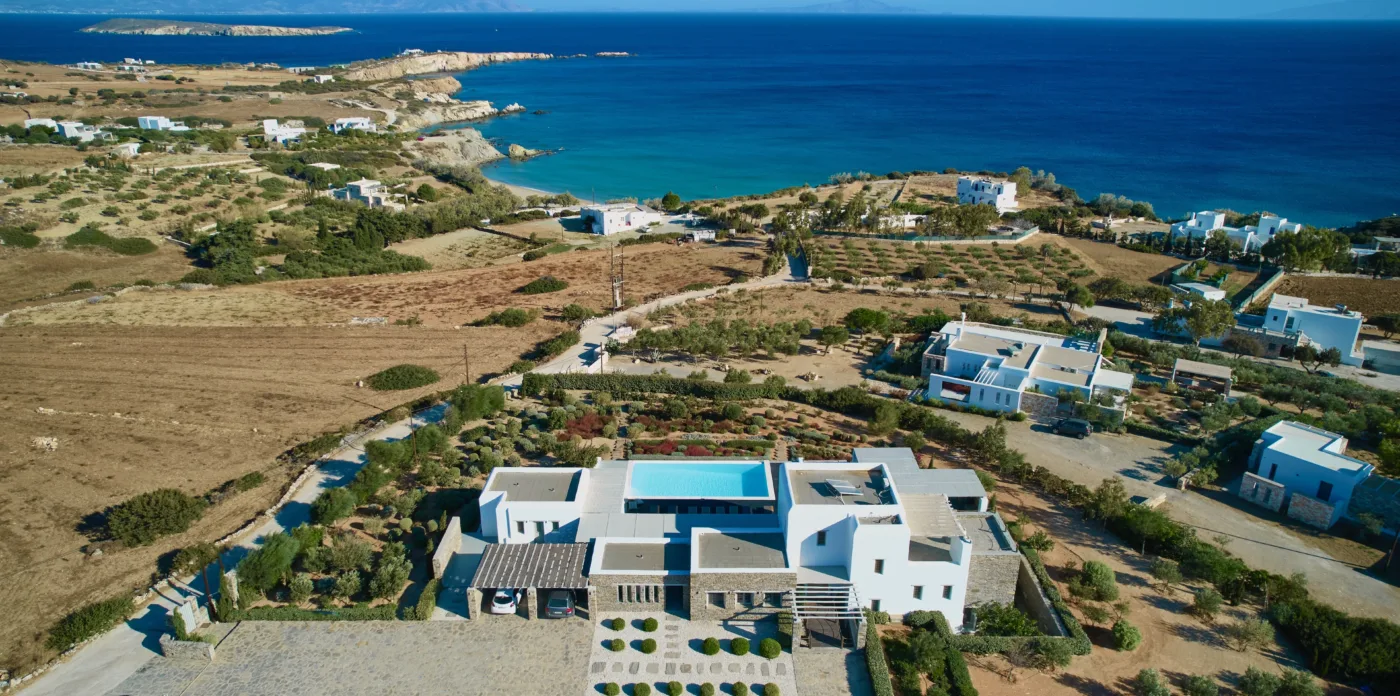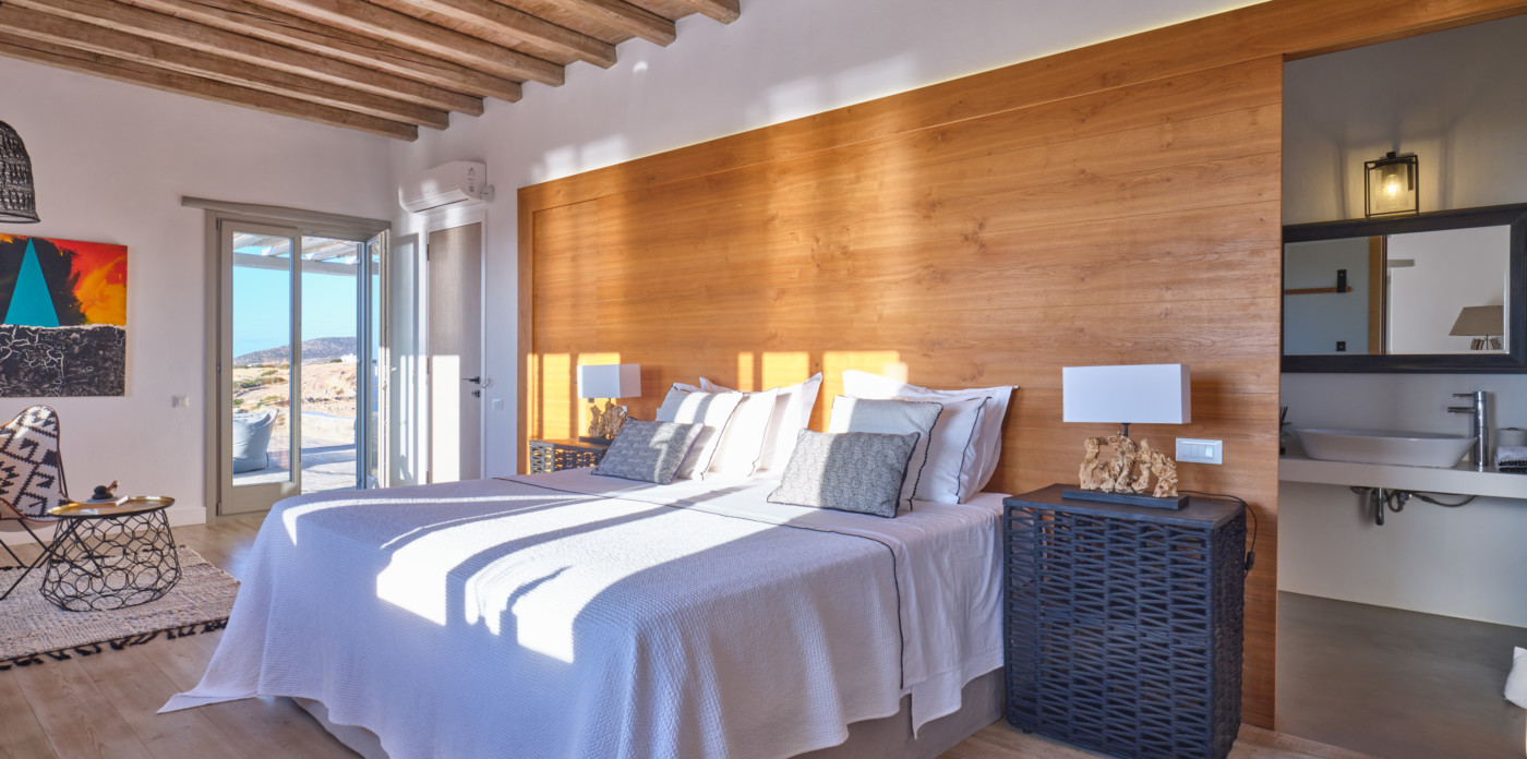 Nestled in a tranquil location, Agape is a stunning white-washed Cycladic villa just off the beaten track. This grand, newly-built mansion, provides a spacious getaway that’s only a short walk from the shimmering shoreline.