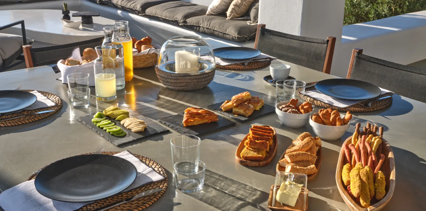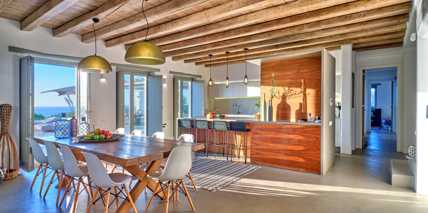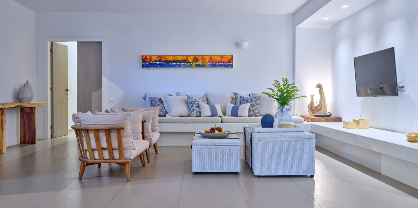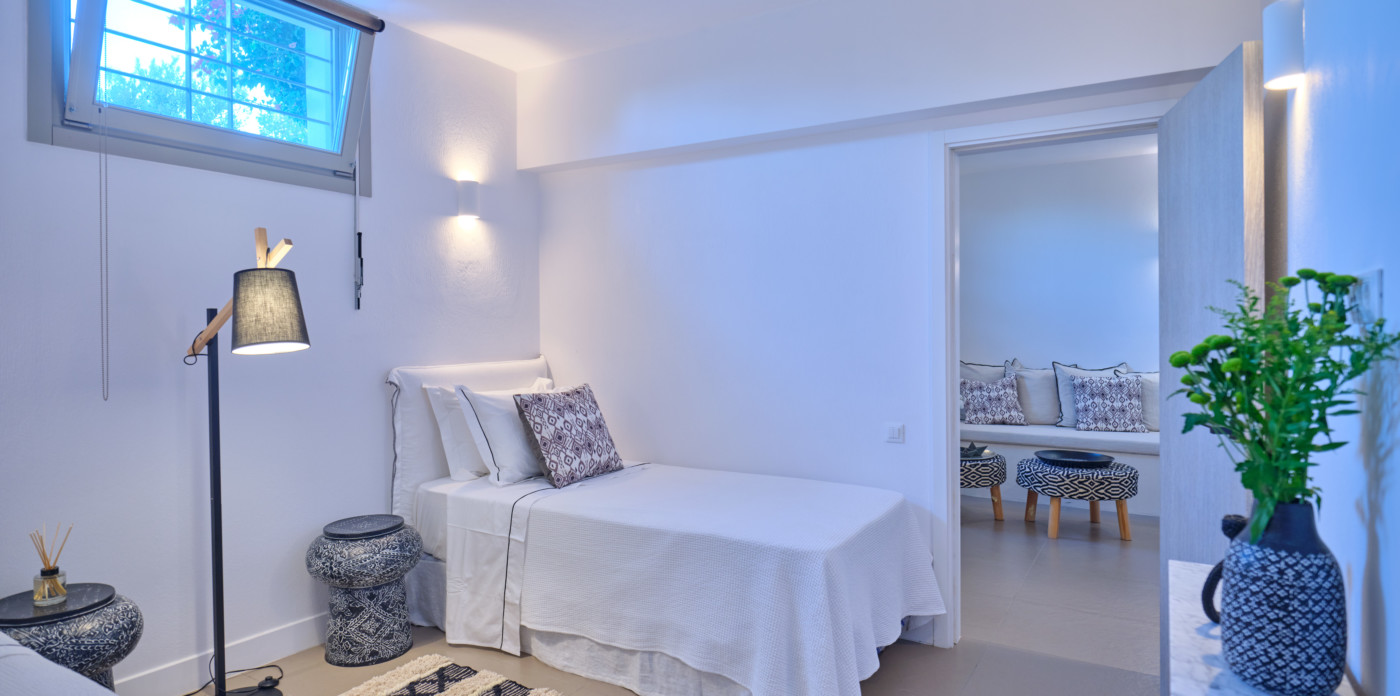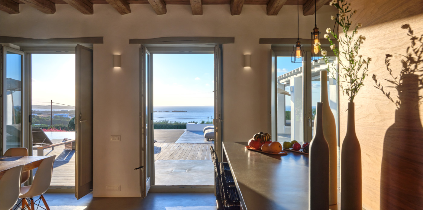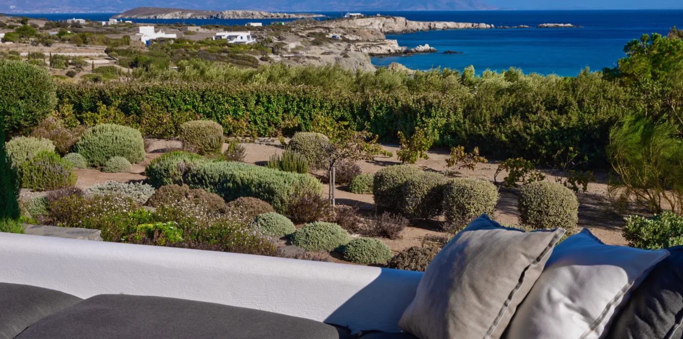 Stone paths lead around the property through a Mediterranean garden with island vegetation and aromatic herbs. The sea views will delight you at all hours of the day.