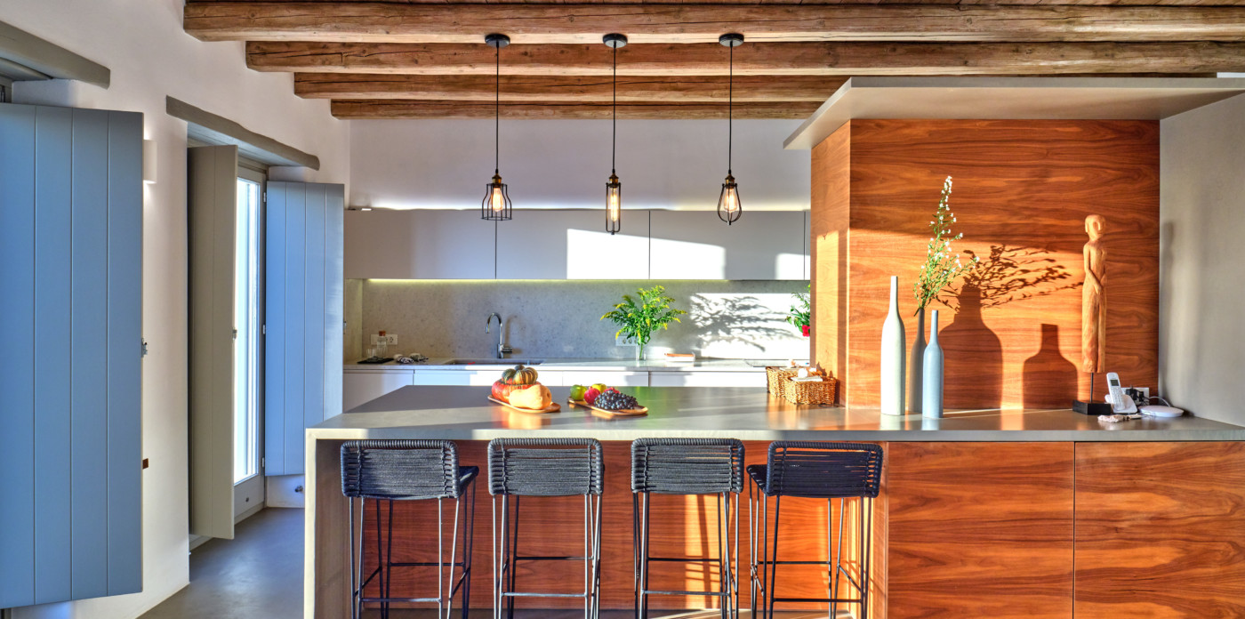 Recent renovations with island chic furnishings and a palette of earth tones playfully accent the spaces. Beautiful wooden surfaces are a dominant element in the decor, adding a warm flair to the entire ambiance. Bespoke lighting above the eat-in kitchen and dining room tables enhances the visual elements.