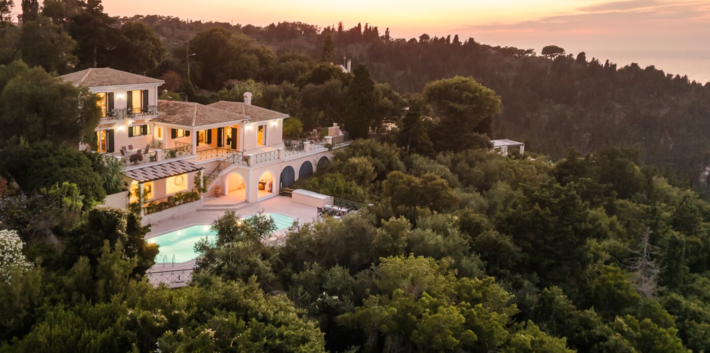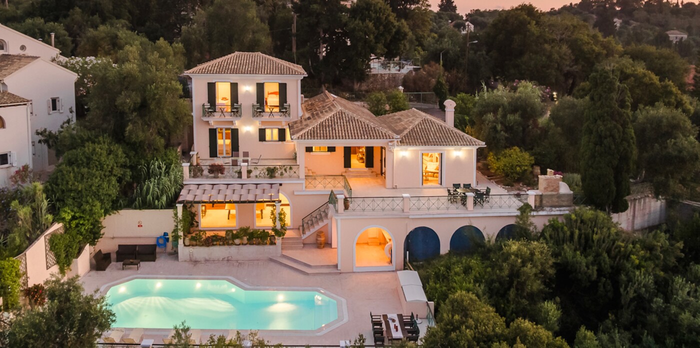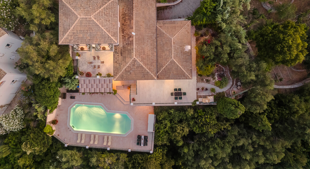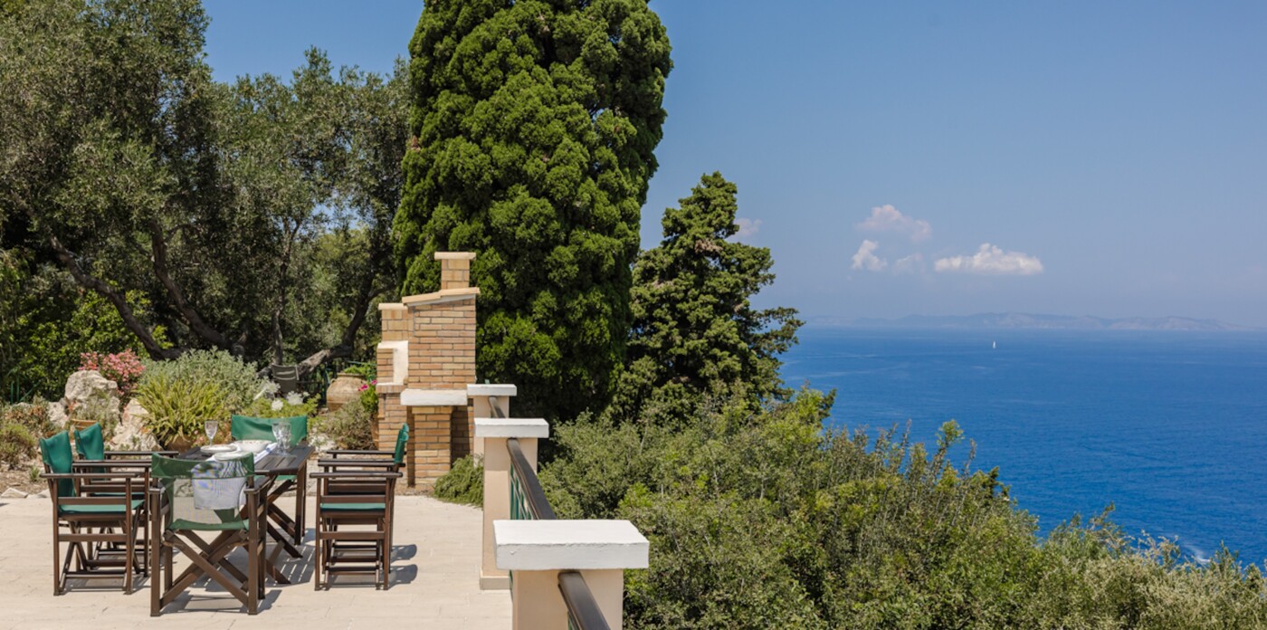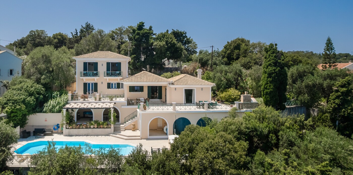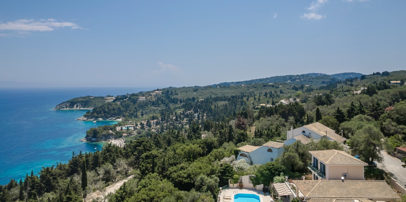The unrivalled panoramic views span 180 degrees covering the island of Corfu and in the far distance, north the Albanian mountains, directly ahead and to the south of the property is the ever changing vista of the stunning Greek mainland.