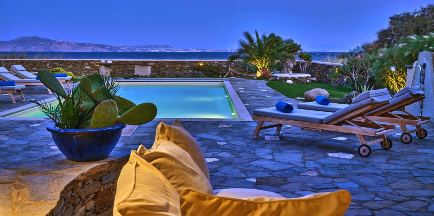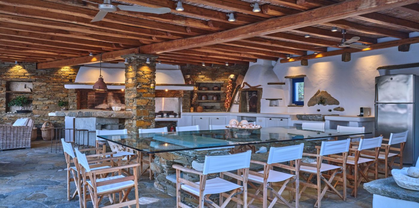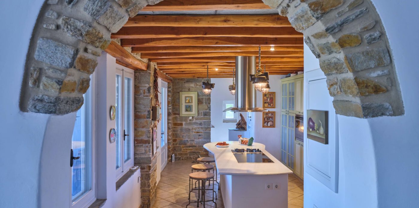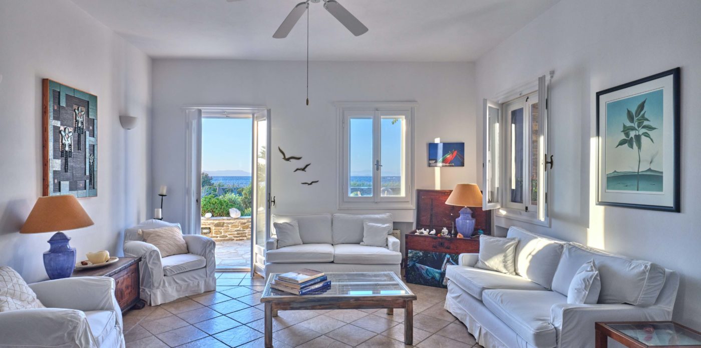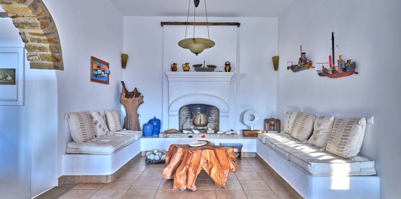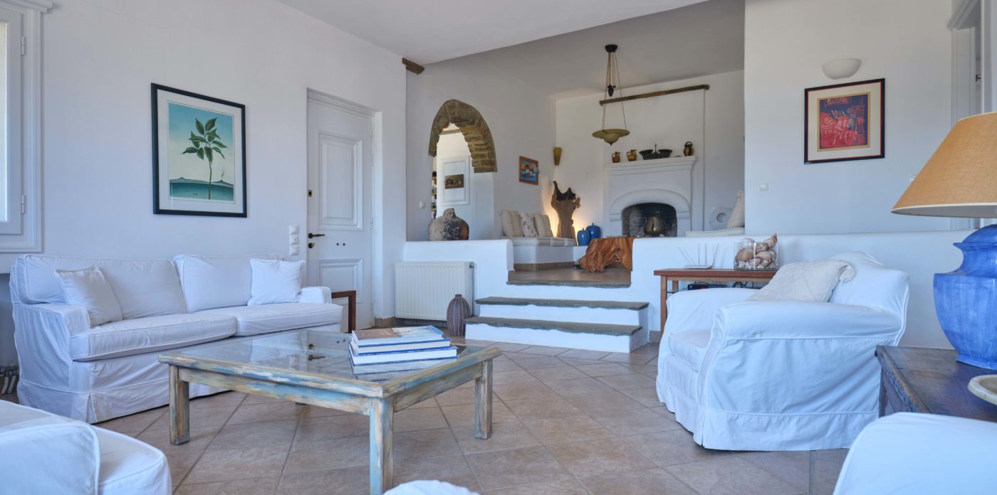 Quietly sophisticated, yet relaxed interiors, define the spaces here. Comfortable, chic furnishings throughout the entire home, from the sumptuous living areas through to each and every one of the six, en-suite bedrooms. The captivating Aegean sea, glistening in the bright Mediterranean light, stretches out to the horizon. Your traditional stone terraces are blessed with endless sea views