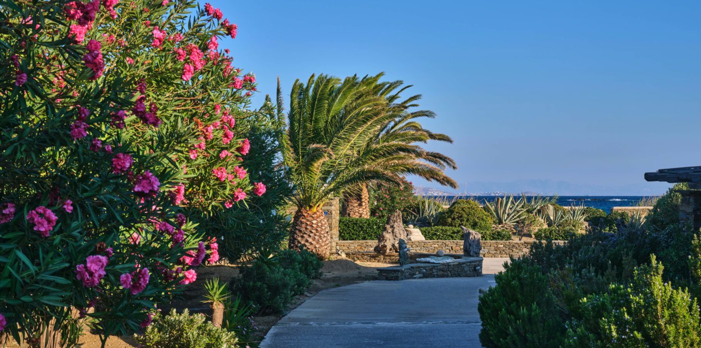 Outside a world of mesmerizing beauty waits to enthrall. From manicured lawns, to lush green Mediterranean planting, the gardens, an extension of the beach, have been landscaped and designed in perfect harmony with nature. The sweet scent of jasmine and wisteria hangs in the air.