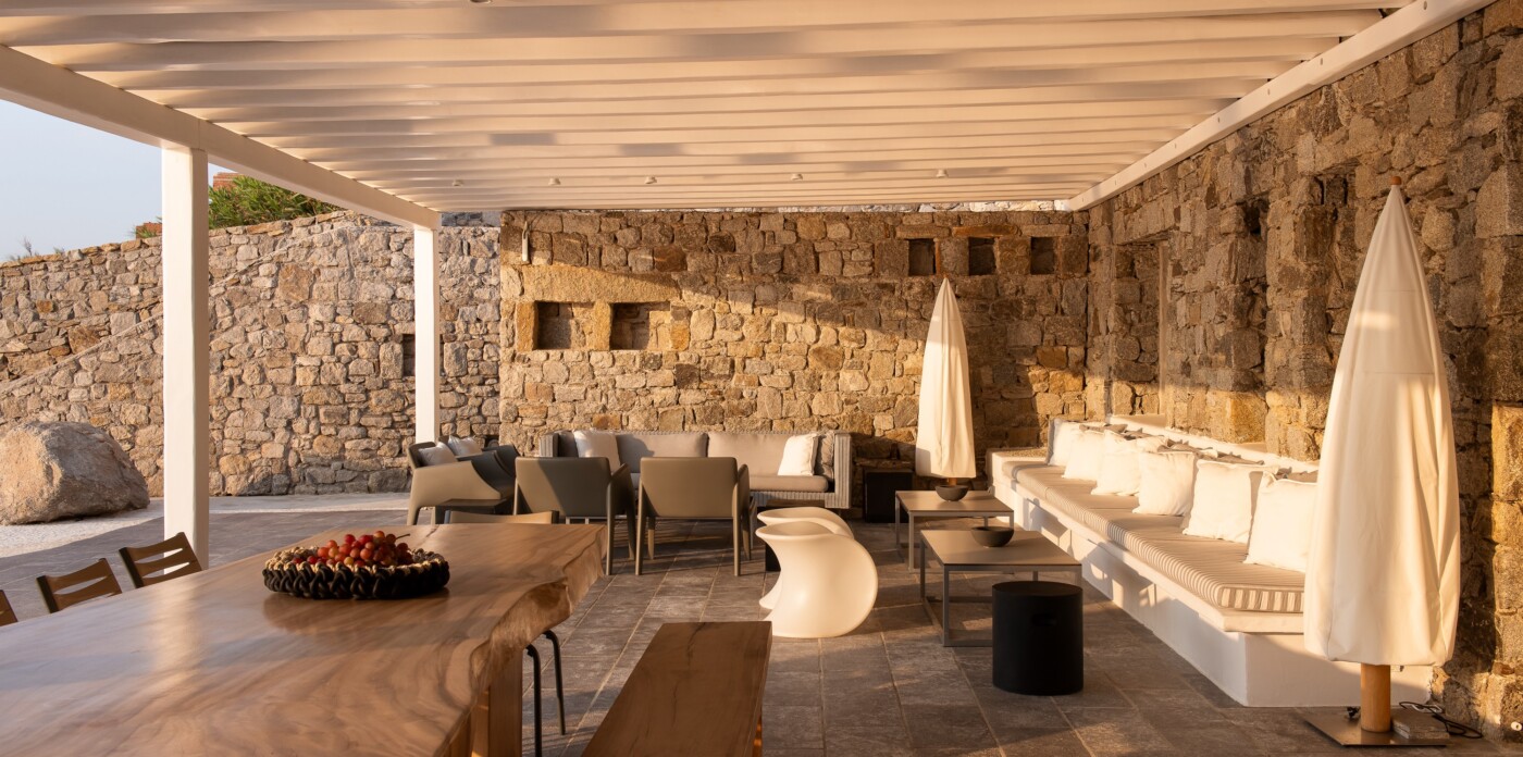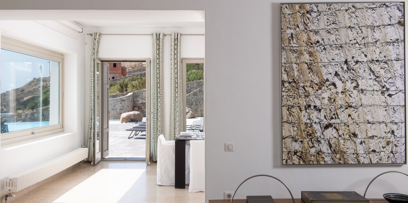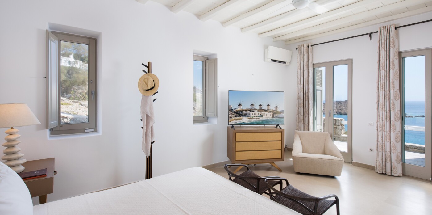 This captivating villa, a harmonious blend of soft Mykonian architecture, exquisite interior design, and a thoughtful layout, is an idyllic sanctuary to enjoy with friends and family.