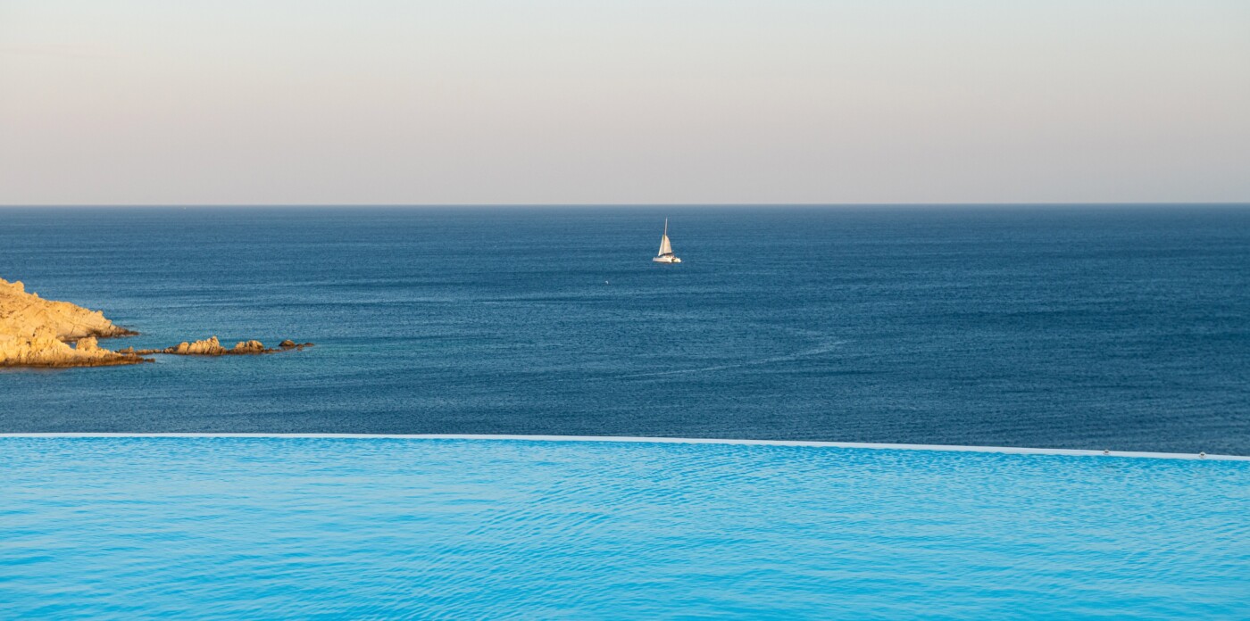 Anise, an extraordinary property for sale on Mykonos, enchants with its charm and style, accessible by boat and offering singularly spectacular sea views. Perfectly situated and protected from the northern summer winds, Anise basks in the eastern sun, capturing the wondrous beauty of the endless horizon.