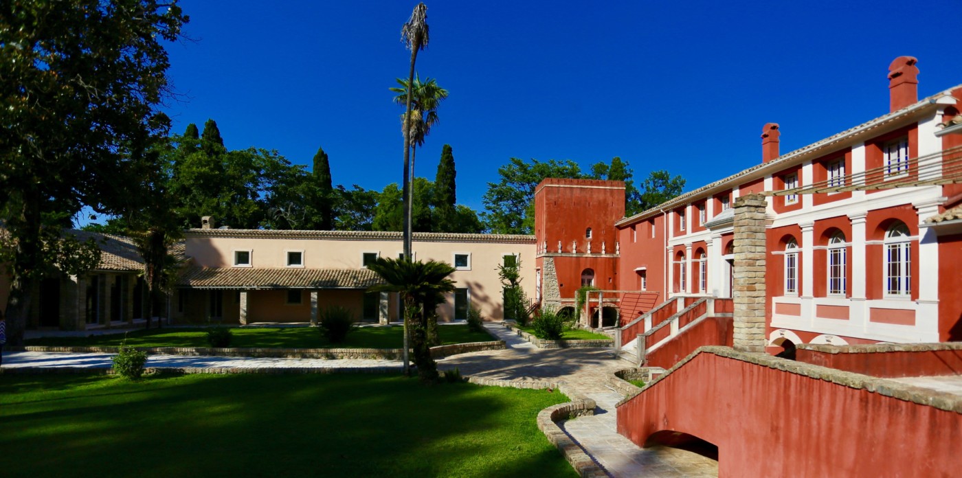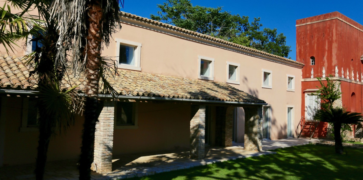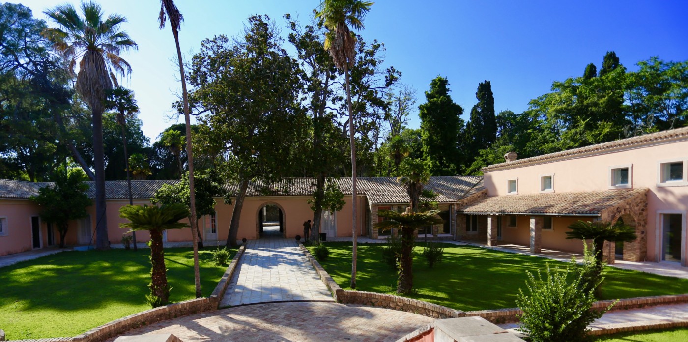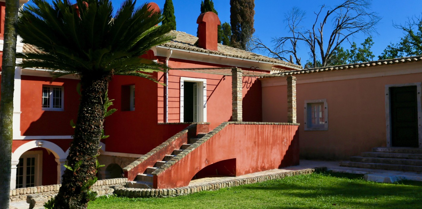 An estate of spectacular beauty, Antico Rosso, once home to one of the most prominent families in Corfu,has been brought back to its original glory by its current owners. Surrounded by a large ancient olive grove, with an abundance of other trees some imported by colonies afar at the time of construction, it’s a private paradise “away from it all”. Yet, it is only a few minutes drive from the town of Corfu, the international marina, airport and all amenities. The Corfu Golf club is located 8km away.