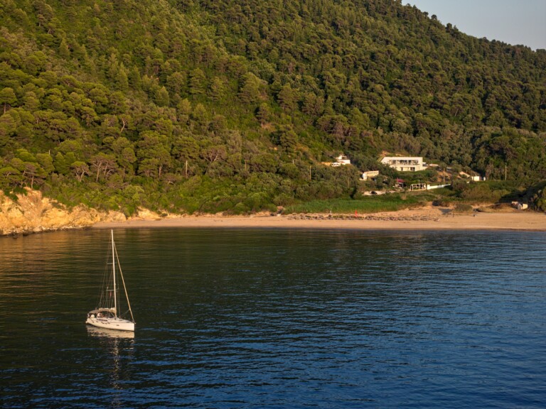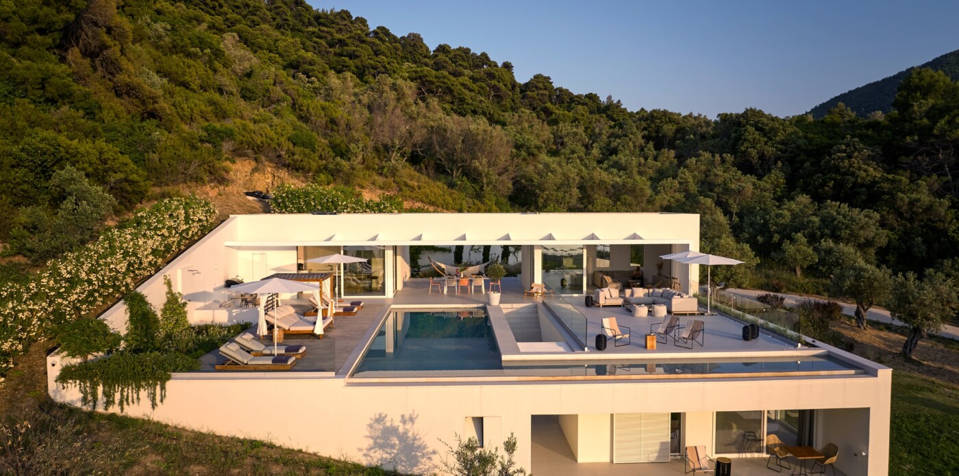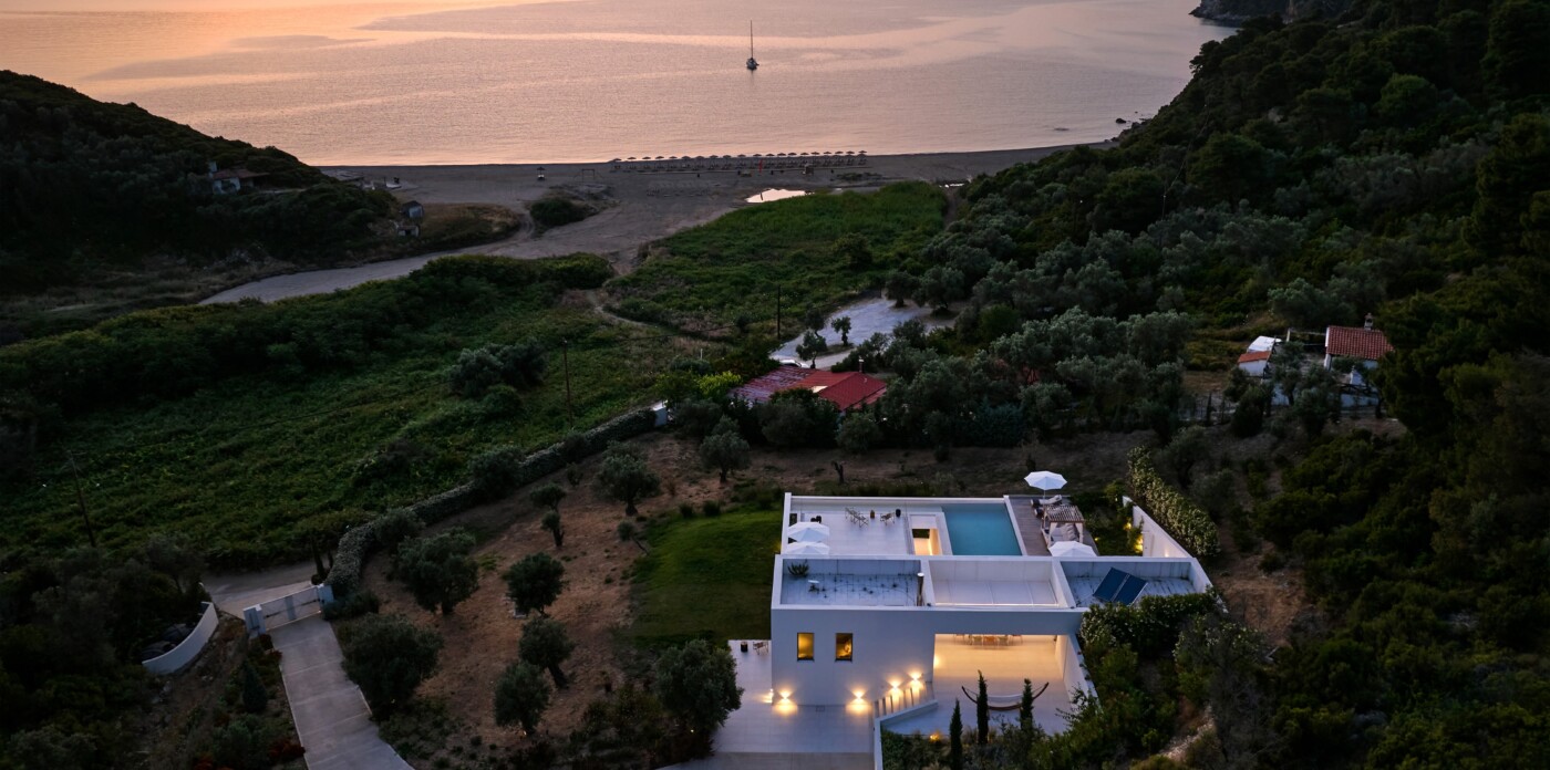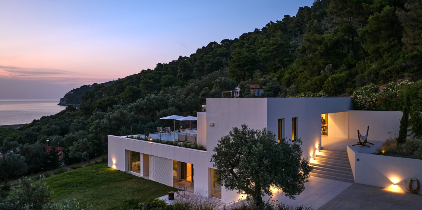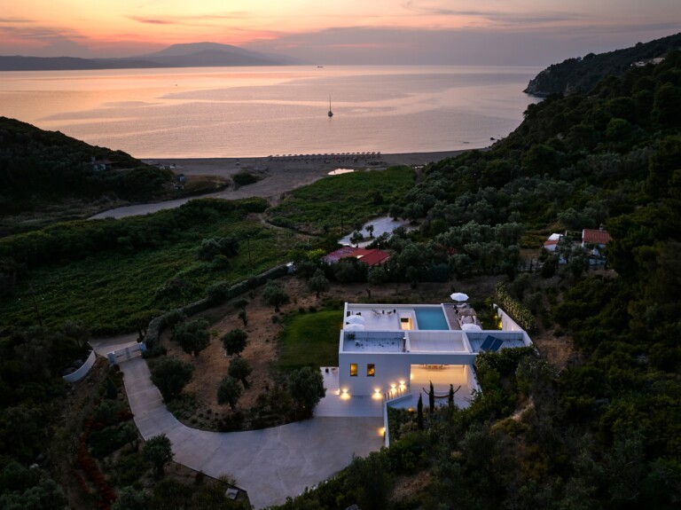 Discover Asteri Villa, a rare beachfront retreat just 100 meters from the golden sands of Ligaries Beach in the serene Kechria area of Skiathos. Designed by renowned architects and nestled within an ancient olive grove, the villa blends clean, modern lines with its natural surroundings, offering a unique sense of harmony and seclusion.