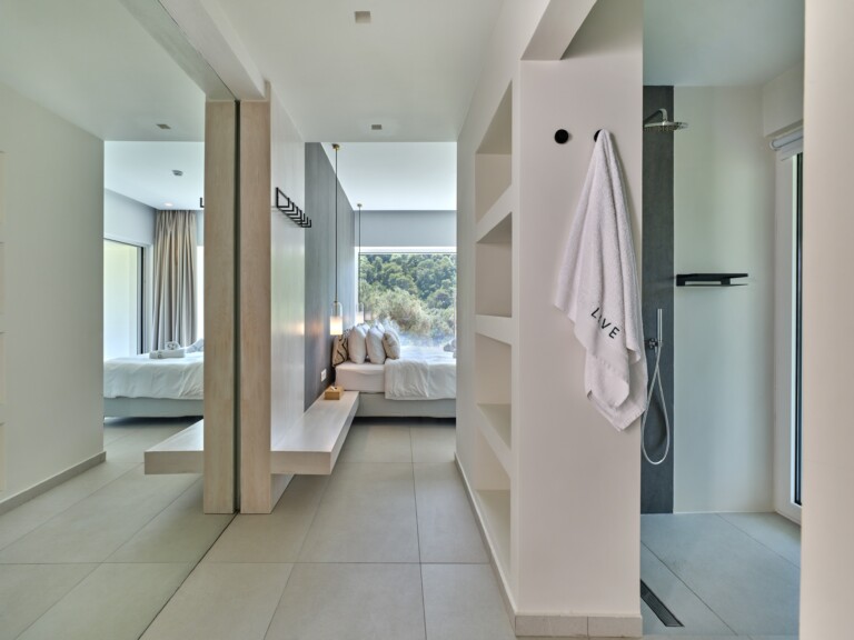 Asteri’s L-shaped infinity pool includes a shallow chill zone—ideal for lounging in the sun or stargazing by night. And when it’s time to dip into the sea, Ligaries Beach is just a short stroll away. For a change of scenery, nearby Kechria Beach offers a unique, grass-lined coastal setting.