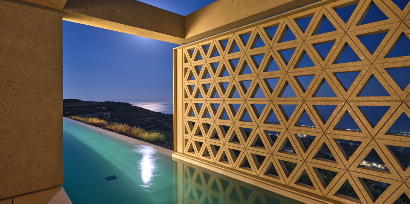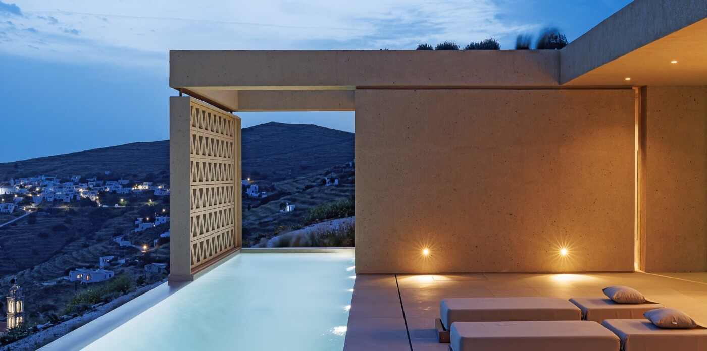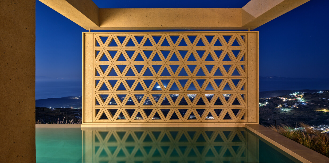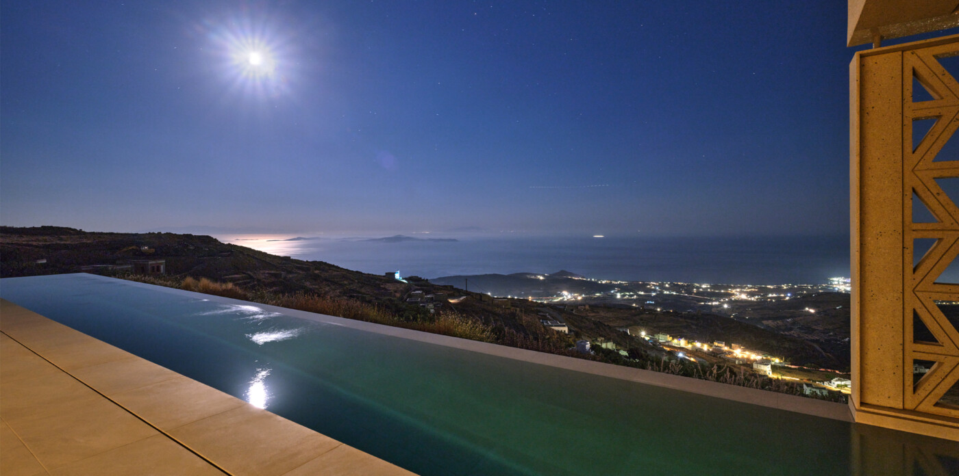 450 meters above the shimmering Aegean, Villa Axis is a breathtaking 240 sqm sanctuary. This exquisite home, nestled on a sprawling 7,600 sqm plot at the edge of Dio Choria village in Tinos, offers an unrivaled 180-degree panorama. On clear days, the view unfolds into a stunning tableau of Cycladic islands, stretching across the horizon like a scattered constellation.