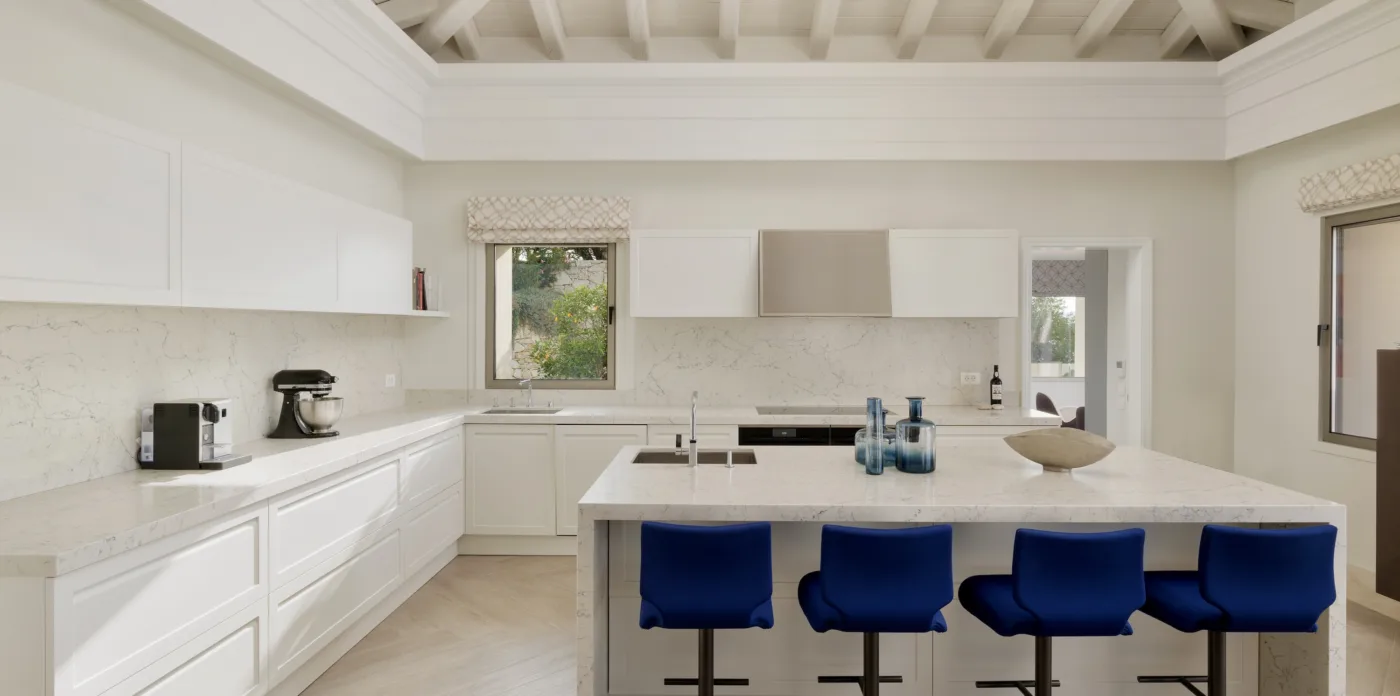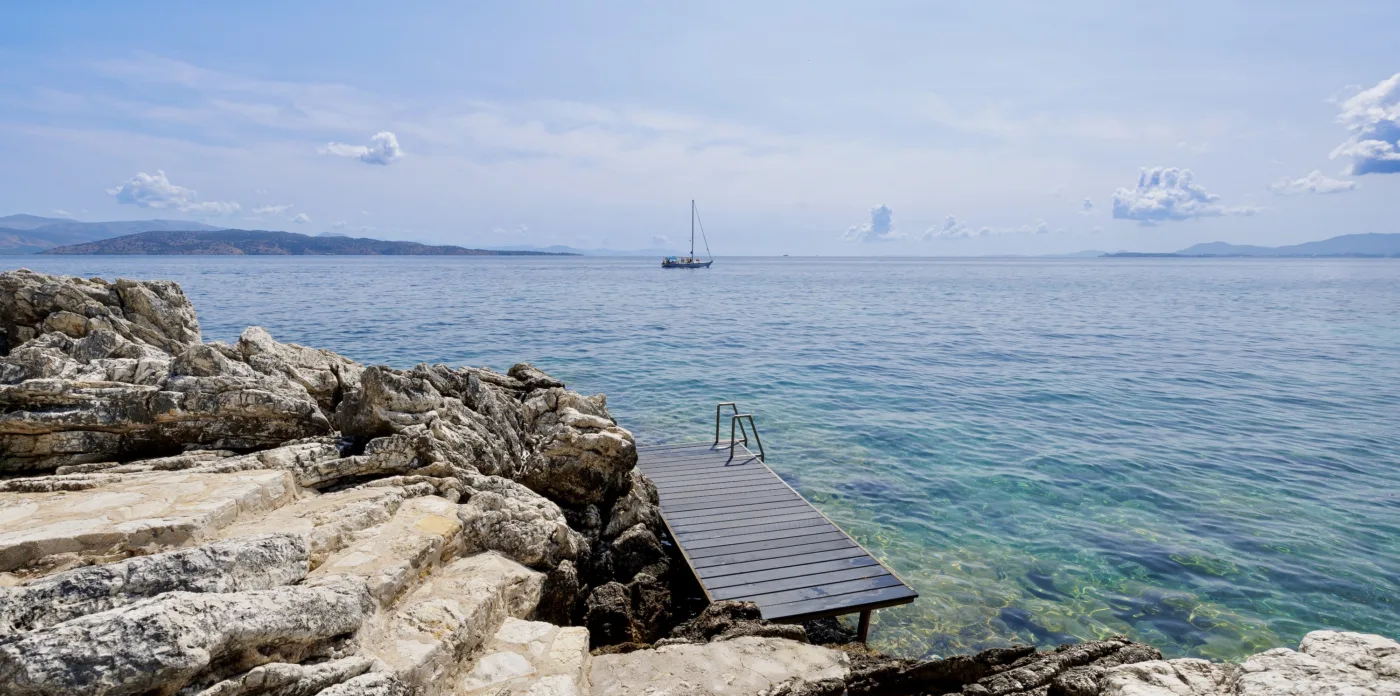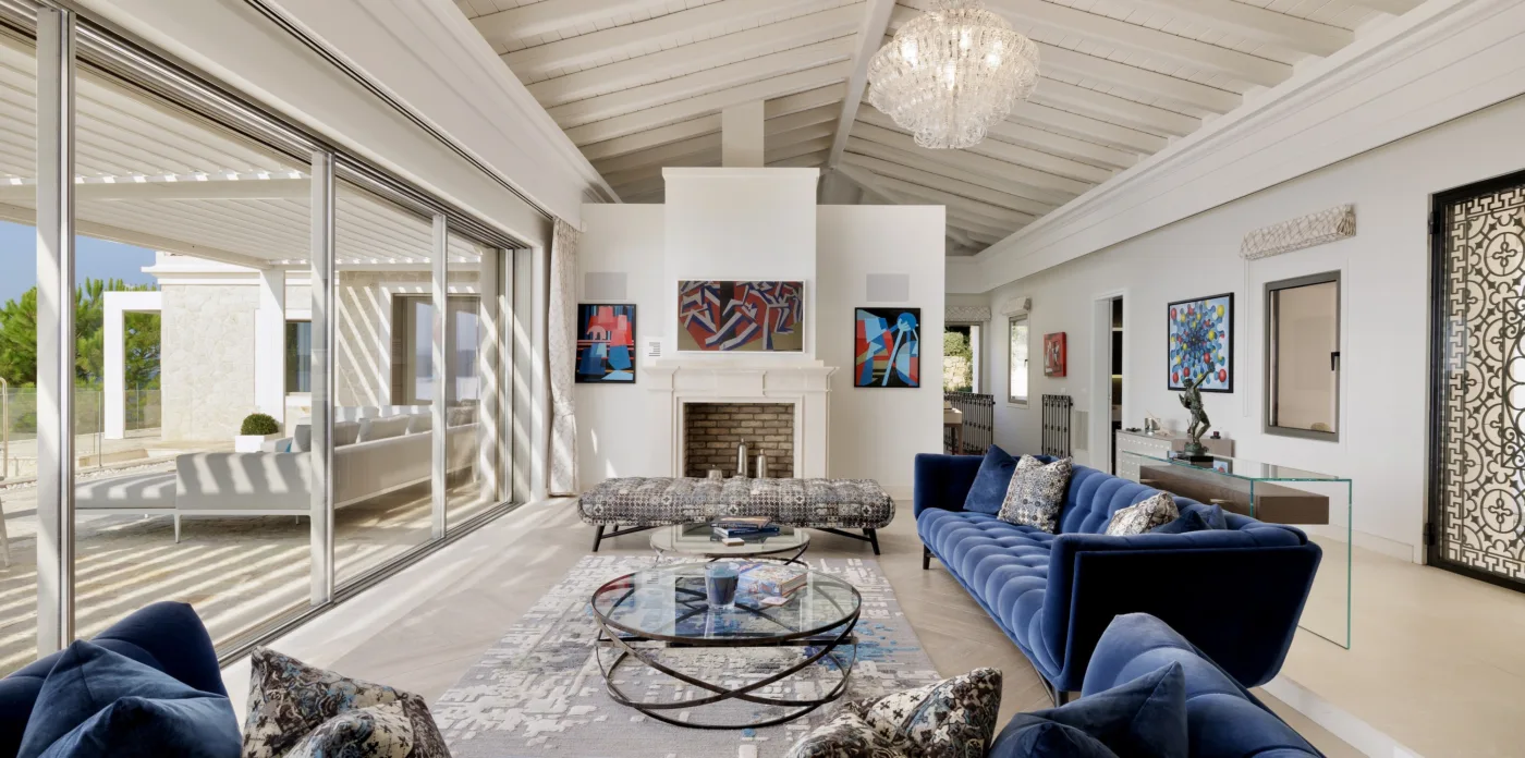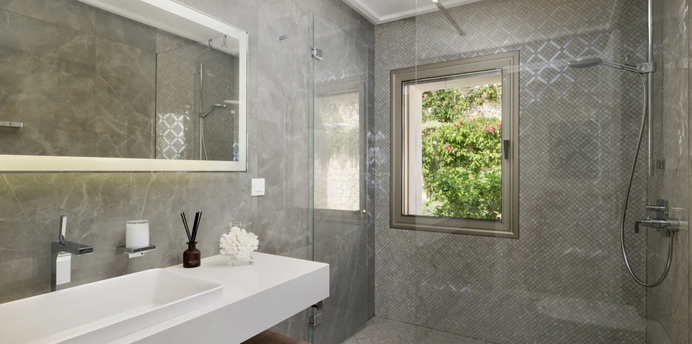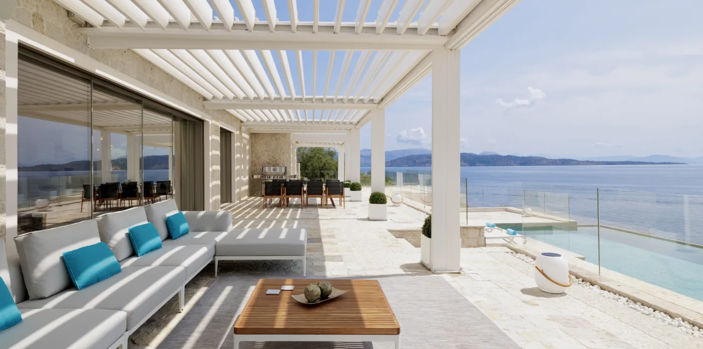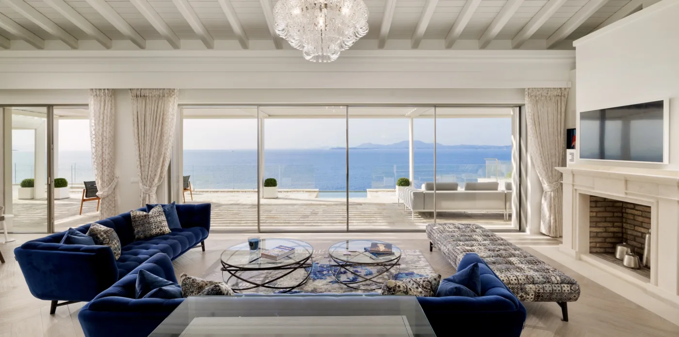 Located in Agni, Ayline is situated just a brief stroll from the picturesque bay and its famous beachfront restaurants. The villa showcases a unique blend of Corfiot and Venetian architectural influences fused with modern aesthetics. Two distinctive features are the windows that amplify the panoramic views and the stone used on the façade and exterior walls, which was sourced directly from the property’s grounds. Each stone was meticulously hand-shaped by a skilled craftsman and fitted together like pieces of an intricate puzzle.
