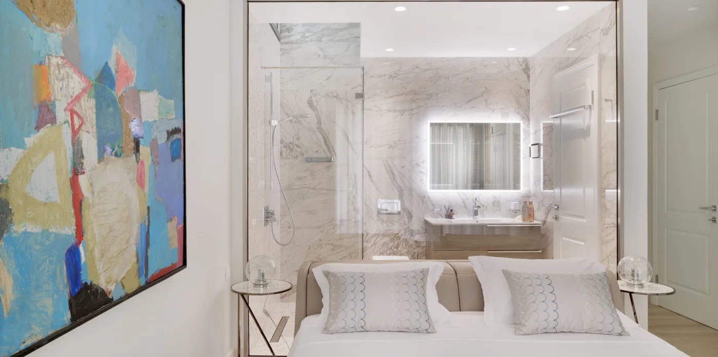 Ayline is on two levels and the living spaces are enhanced by exquisite interior design featuring contemporary French and Italian furnishings.