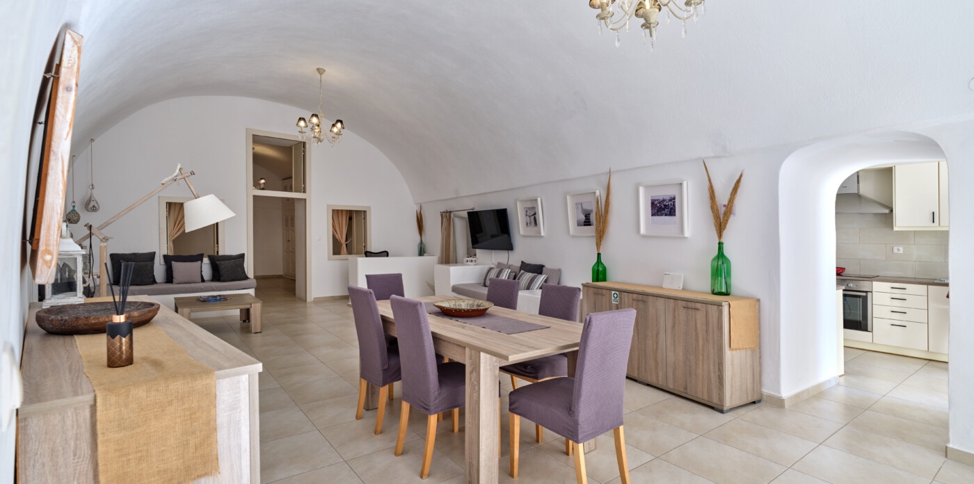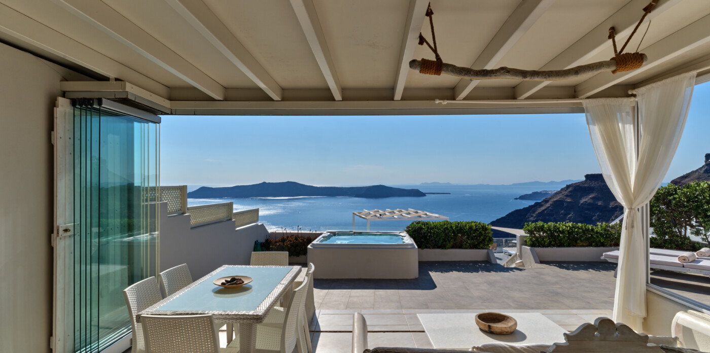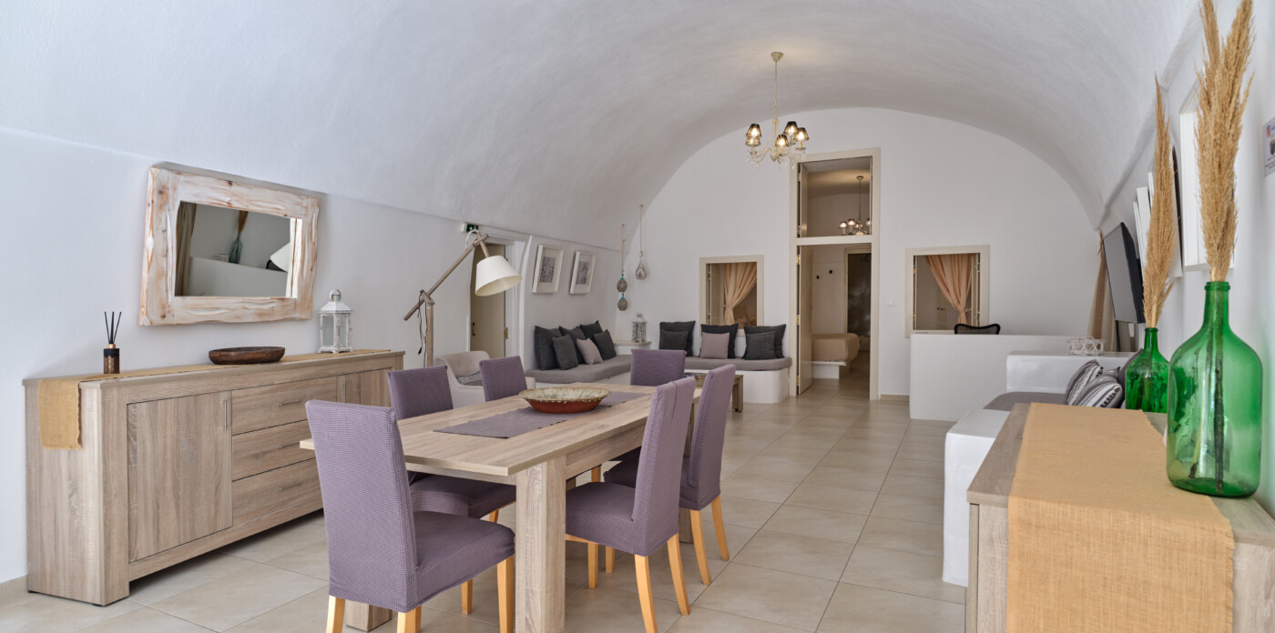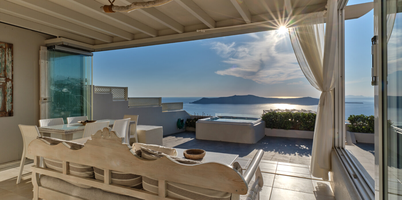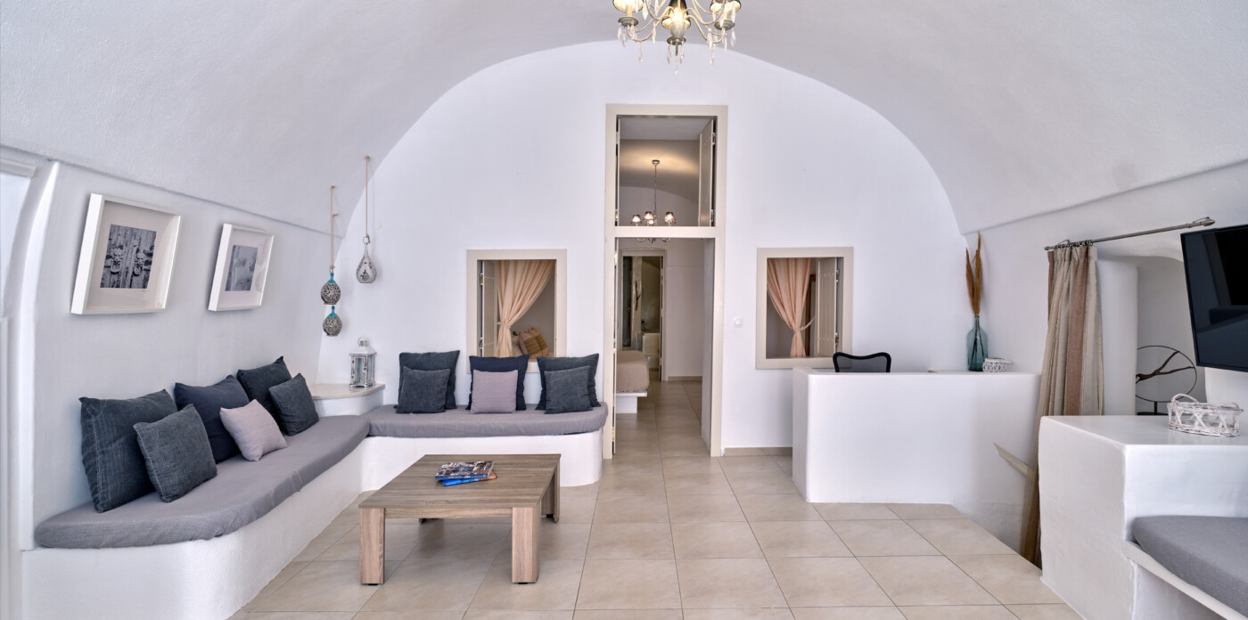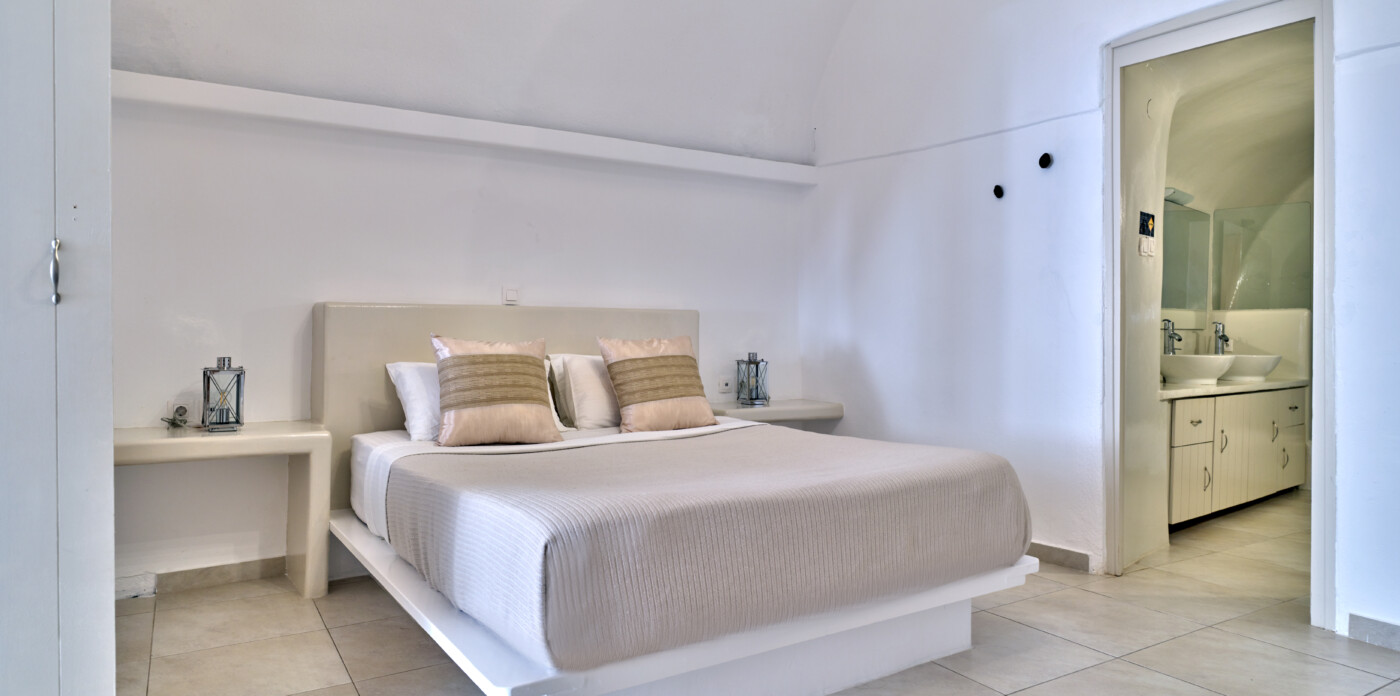 This exquisite home seamlessly blends traditional charm with modern comforts, echoing the beloved architectural style of eras past while embracing contemporary living. Unveiling captivating vistas of turquoise seas and distant mountain ranges, Caldera Vista seamlessly integrates into the island’s picturesque backdrop of white-washed homes adorned with iconic blue domes.