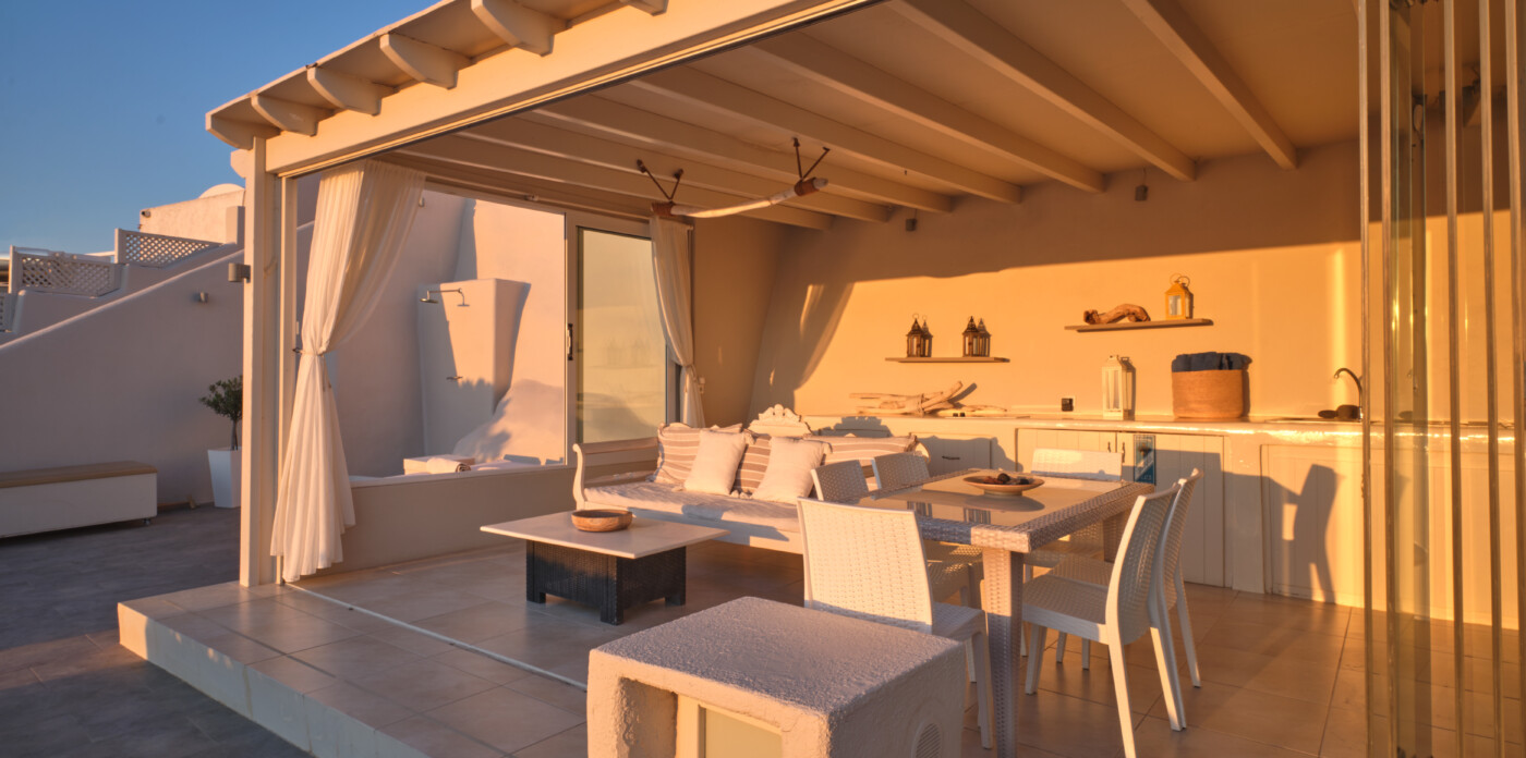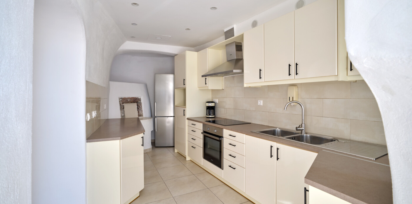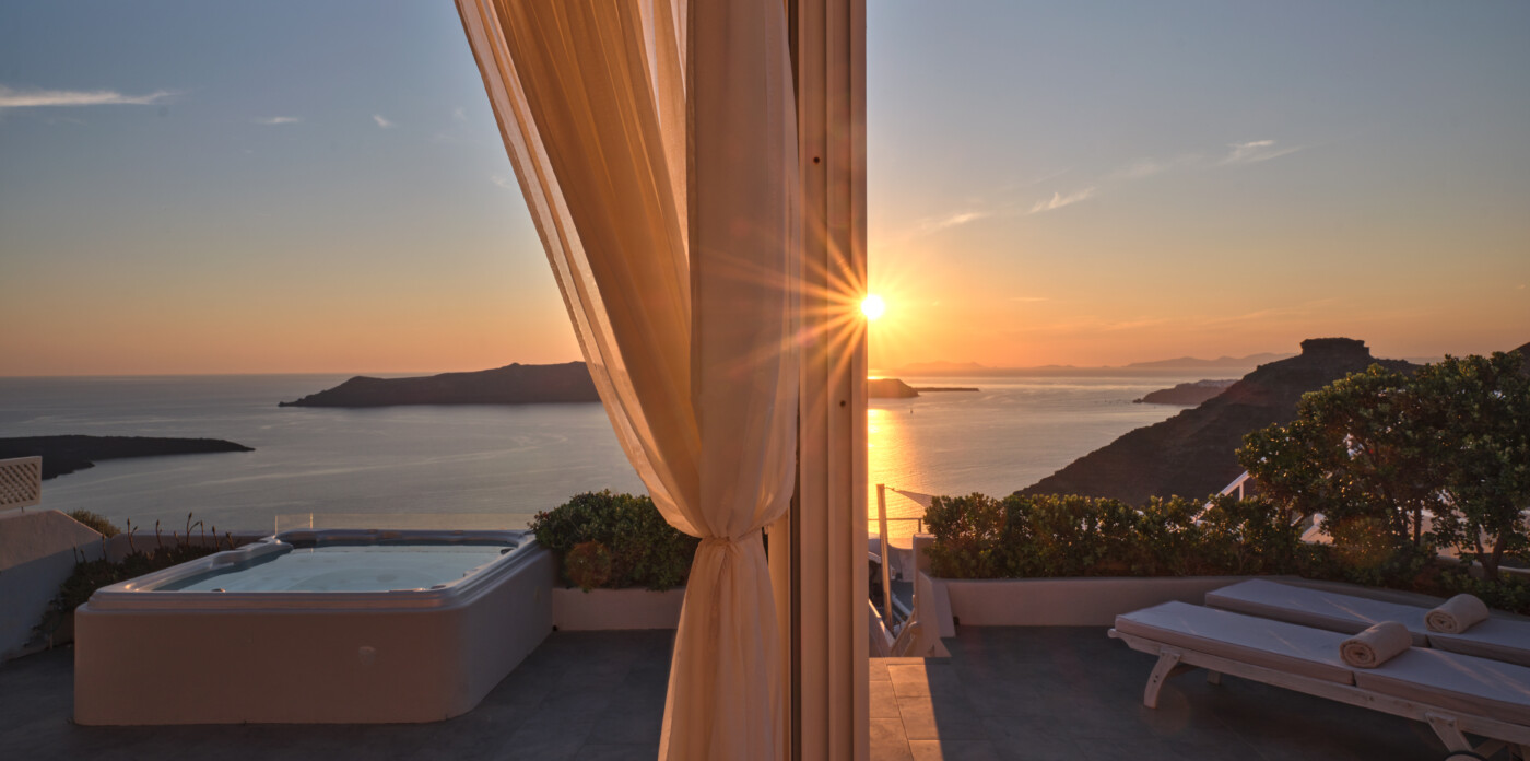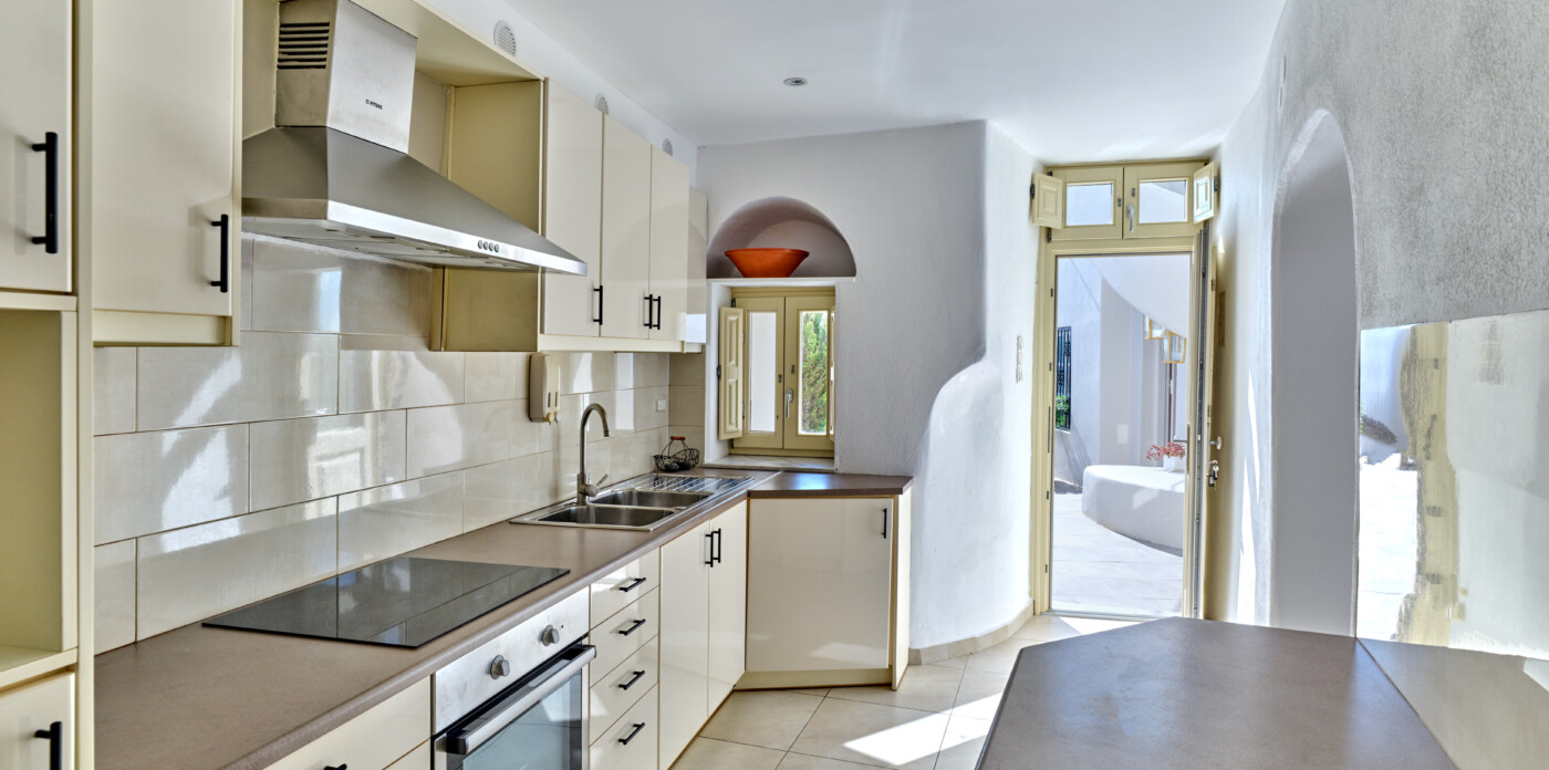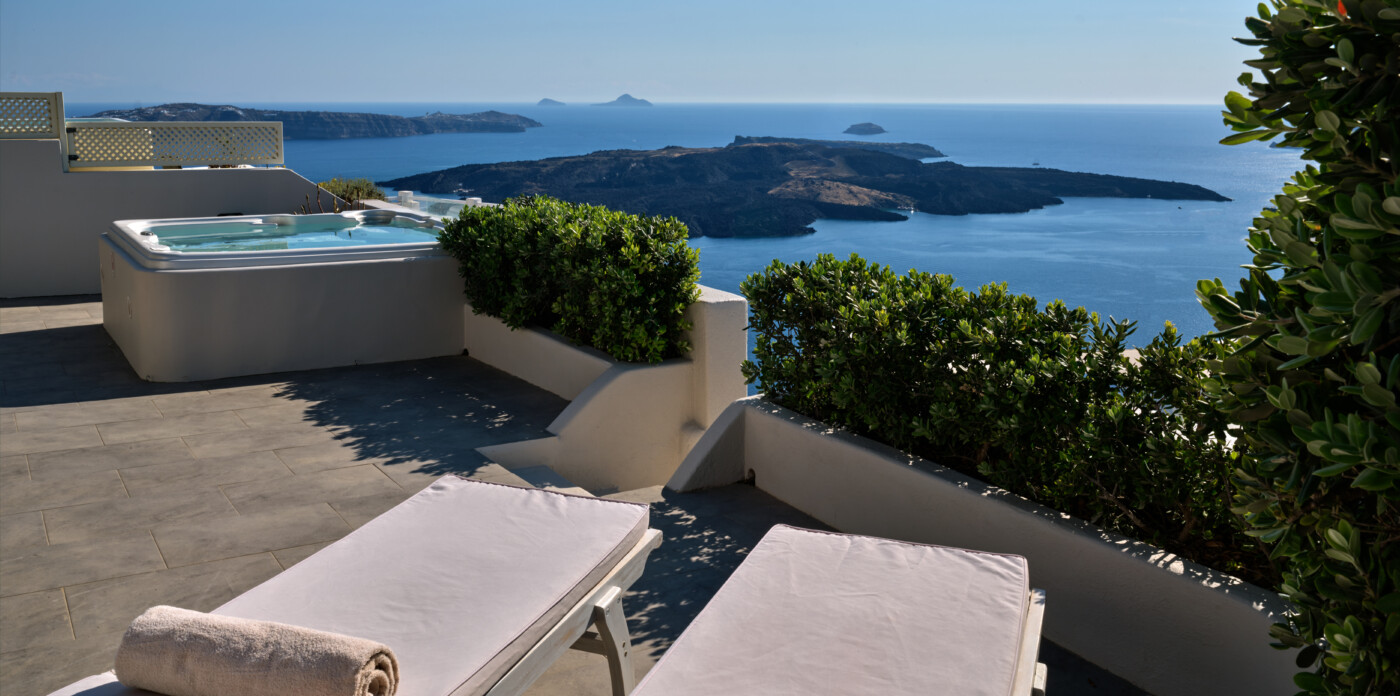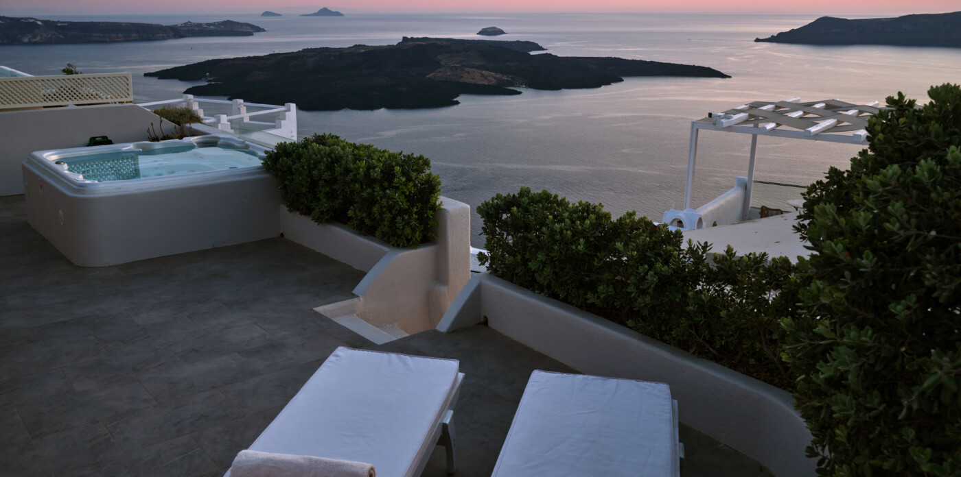 This exquisite home seamlessly blends traditional charm with modern comforts, echoing the beloved architectural style of eras past while embracing contemporary living. Unveiling captivating vistas of turquoise seas and distant mountain ranges, Caldera Vista seamlessly integrates into the island’s picturesque backdrop of white-washed homes adorned with iconic blue domes.