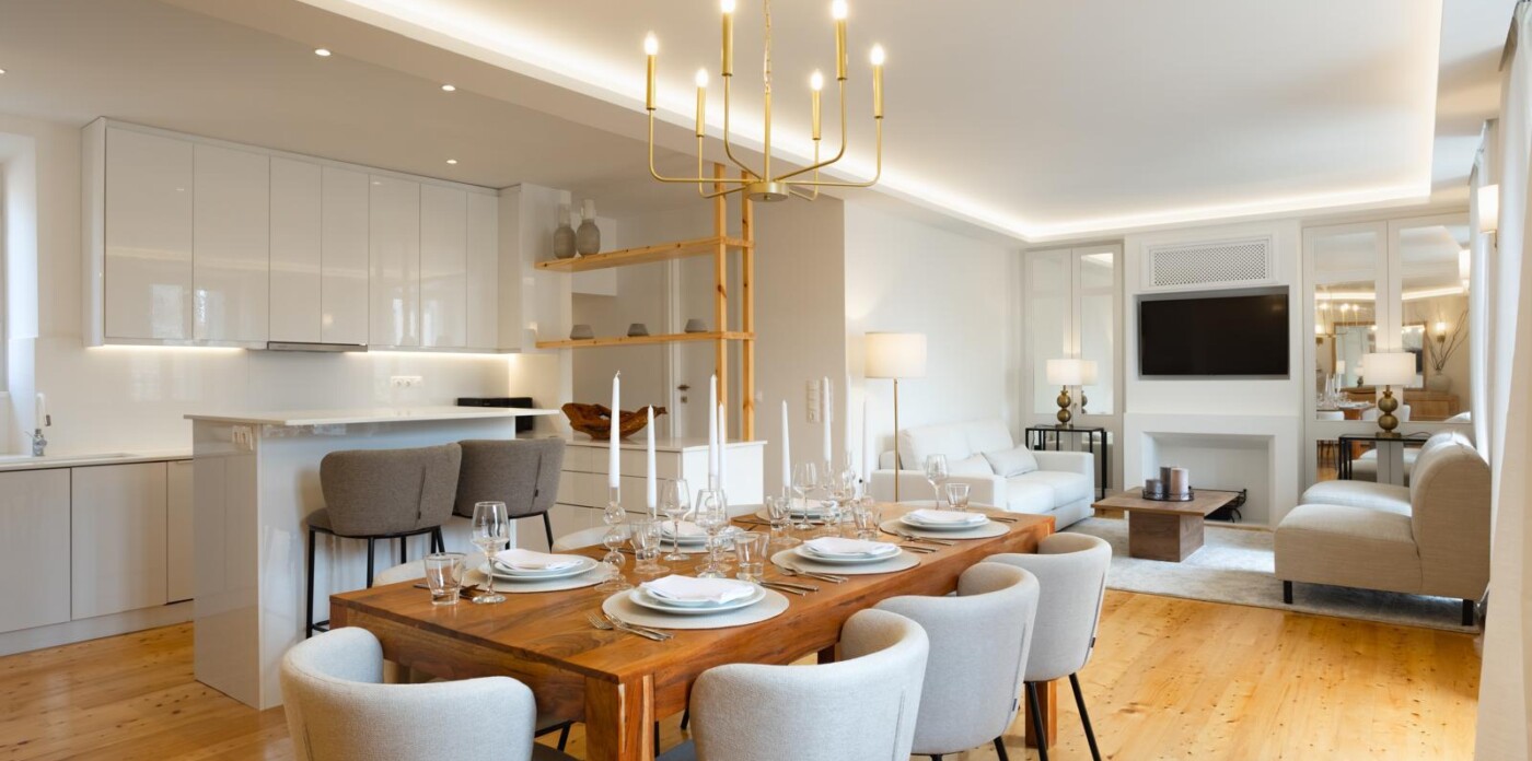 Step into the bright, open-plan living and dining area, where natural light, clean lines, and tasteful furnishings create a welcoming space for relaxing or entertaining. The fully equipped kitchen features modern appliances and ample workspace, perfect for preparing everything from a quick breakfast to an elegant dinner.