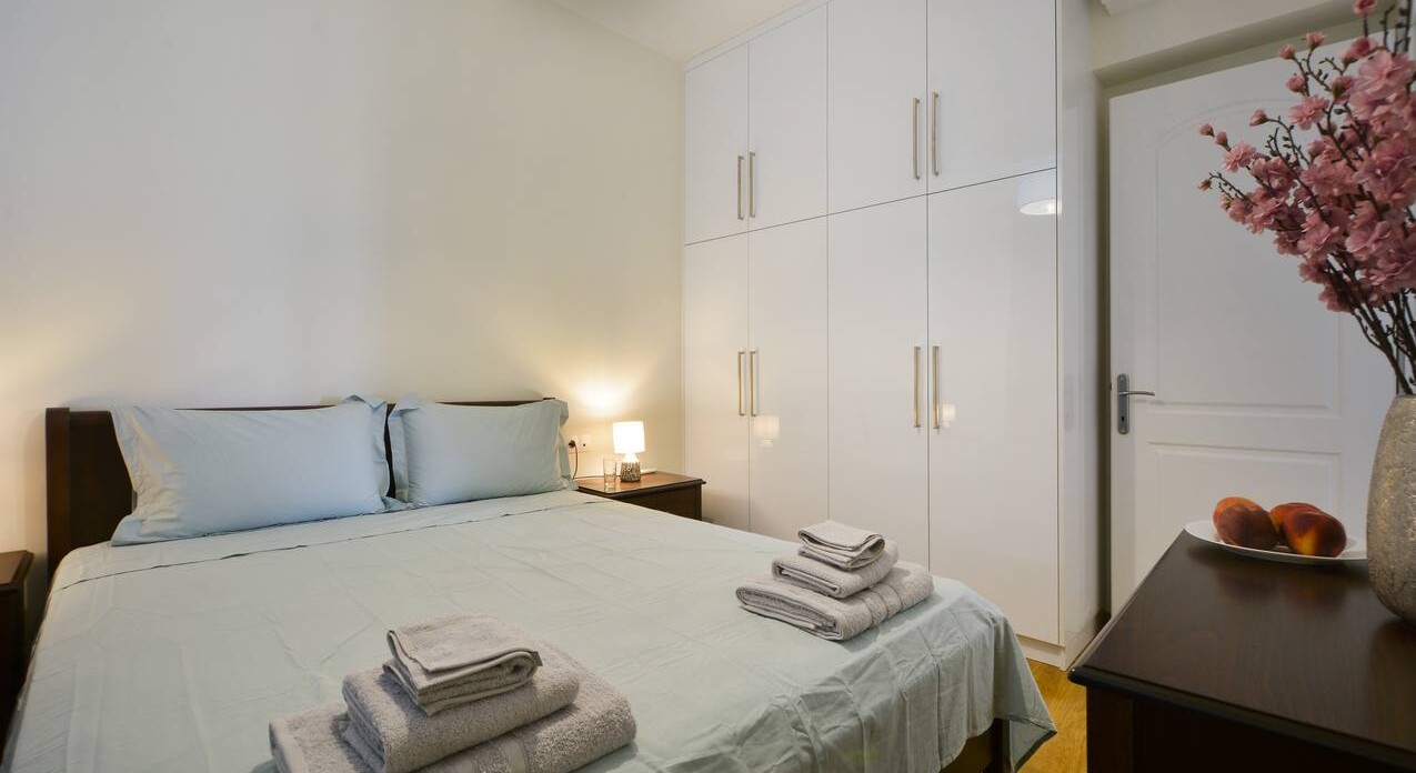 The apartment is centrally heated, fully air-conditioned, and fitted with wooden, double-glazed windows.