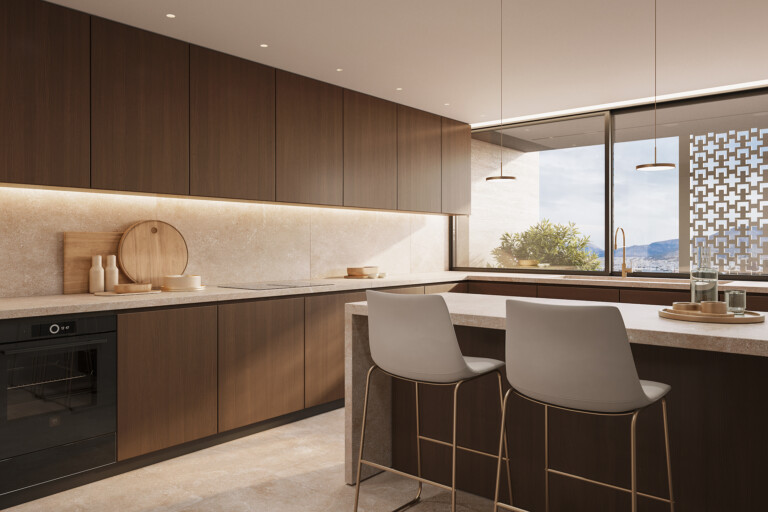 Situated on the 5th and 5th floor, Celena features an elegant living area, three generous master bedrooms, and integrated smart home technology. Its clean design and neutral palette create an ambiance that reflects the Mediterranean’s warmth throughout.