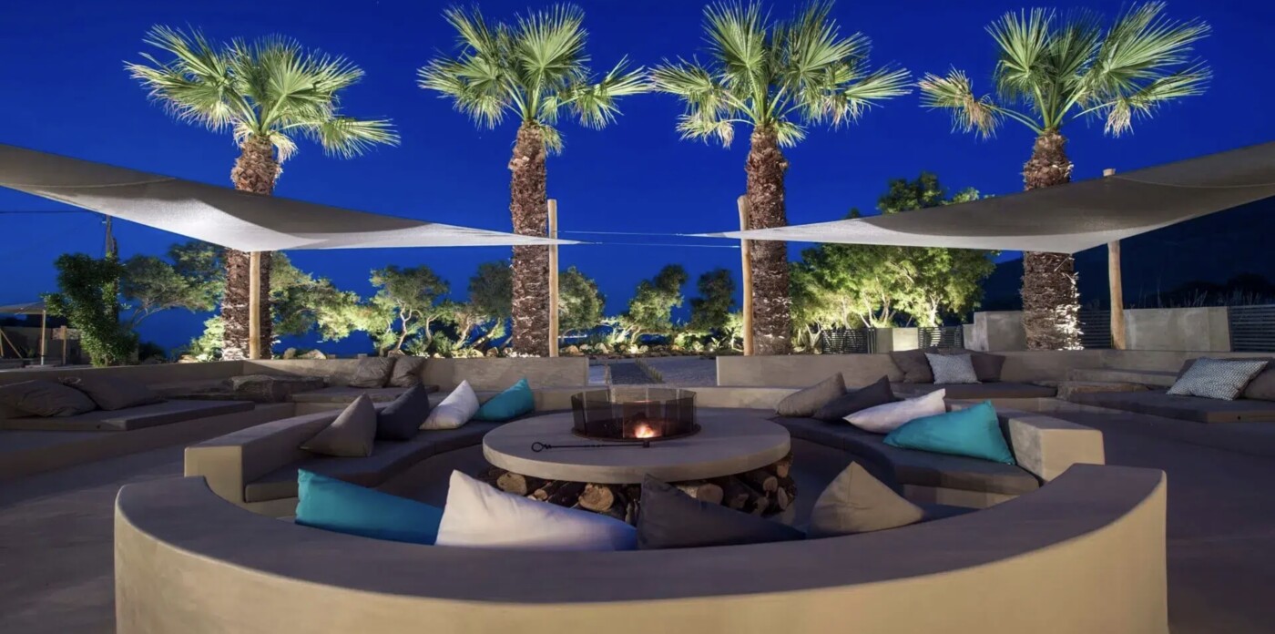 As evening falls, the crackling firepit creates a magical setting beneath a blanket of stars.