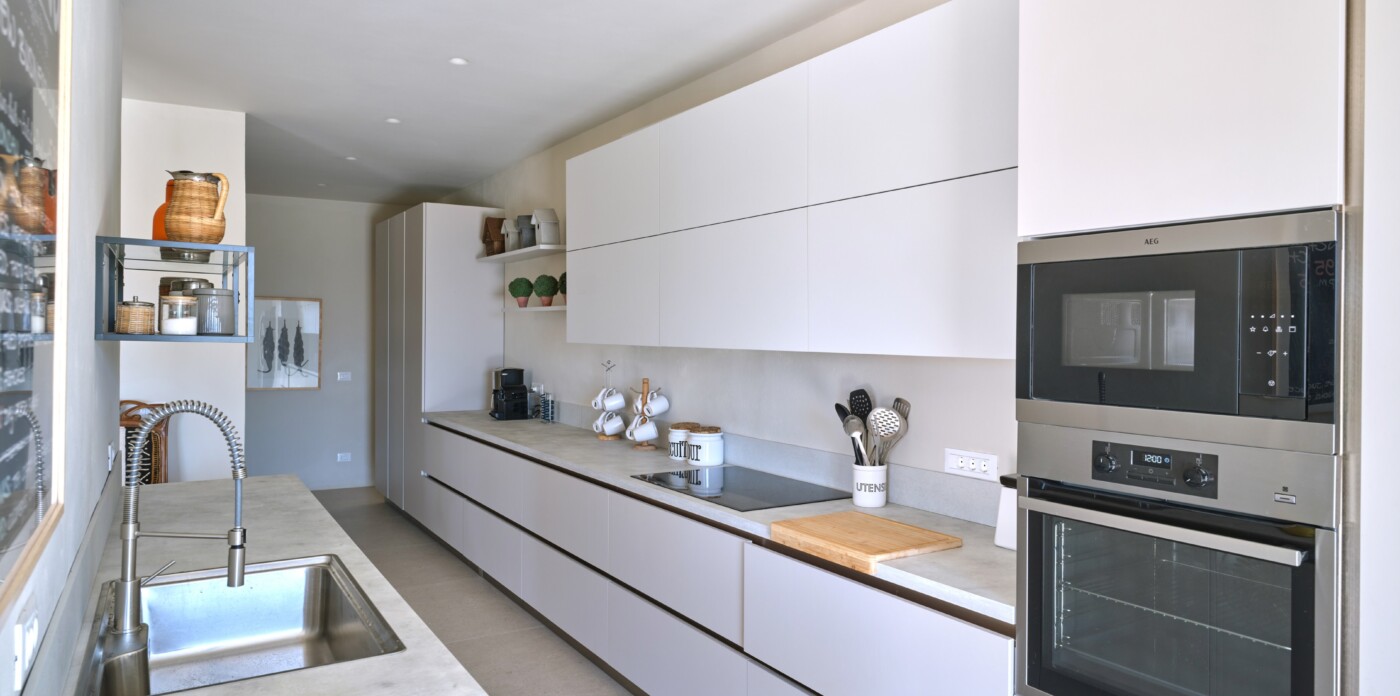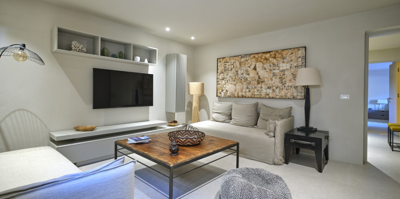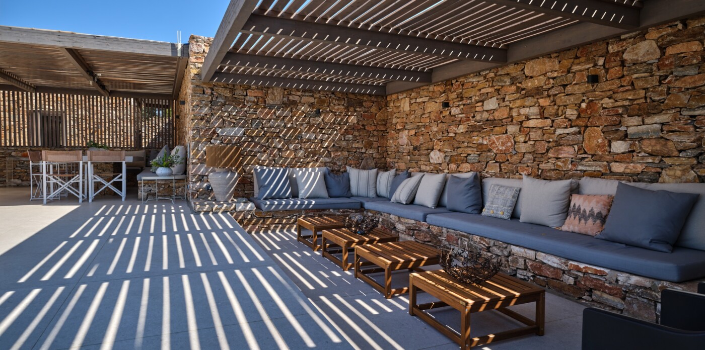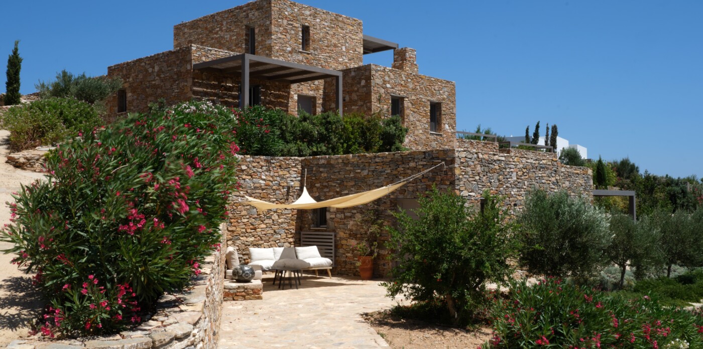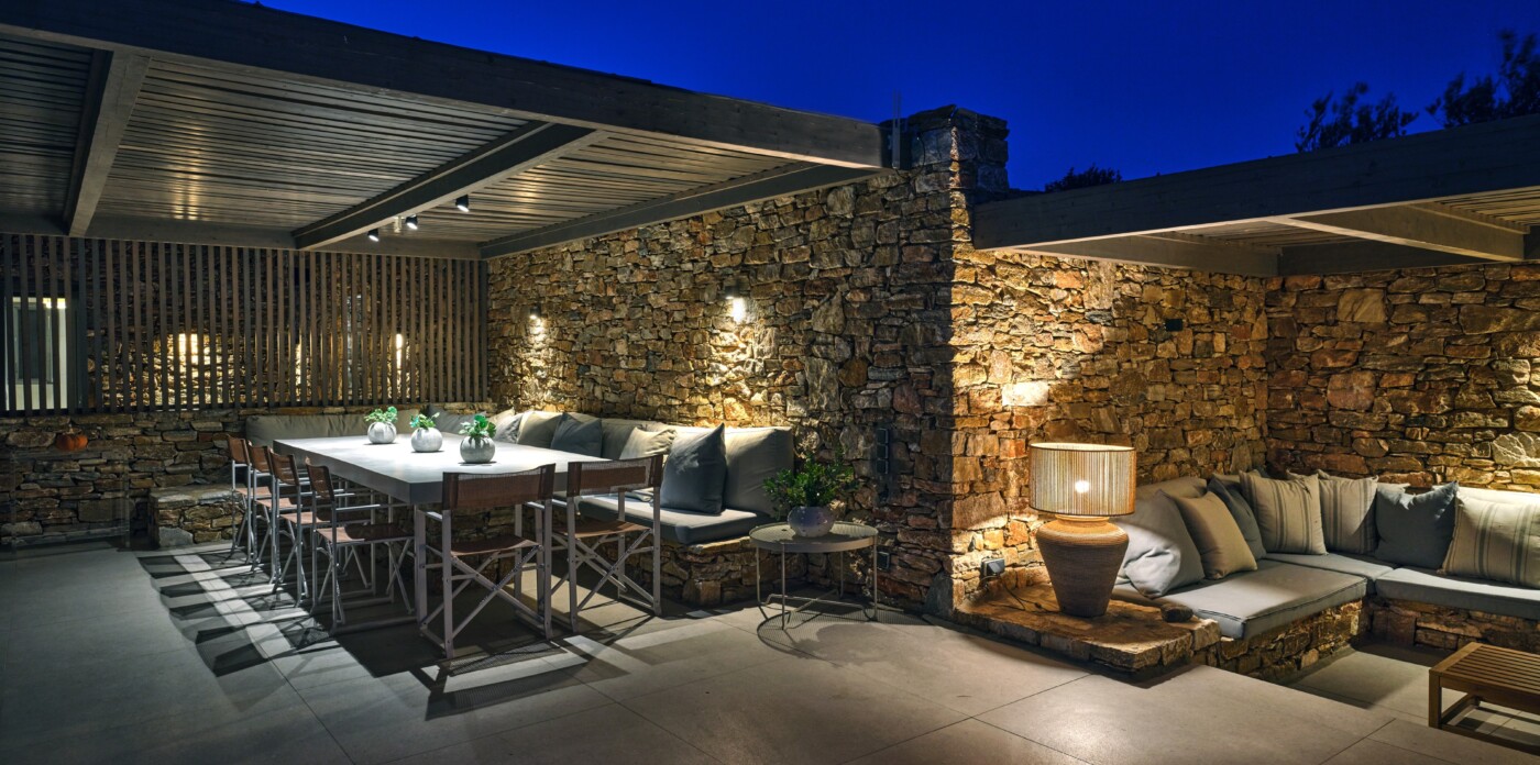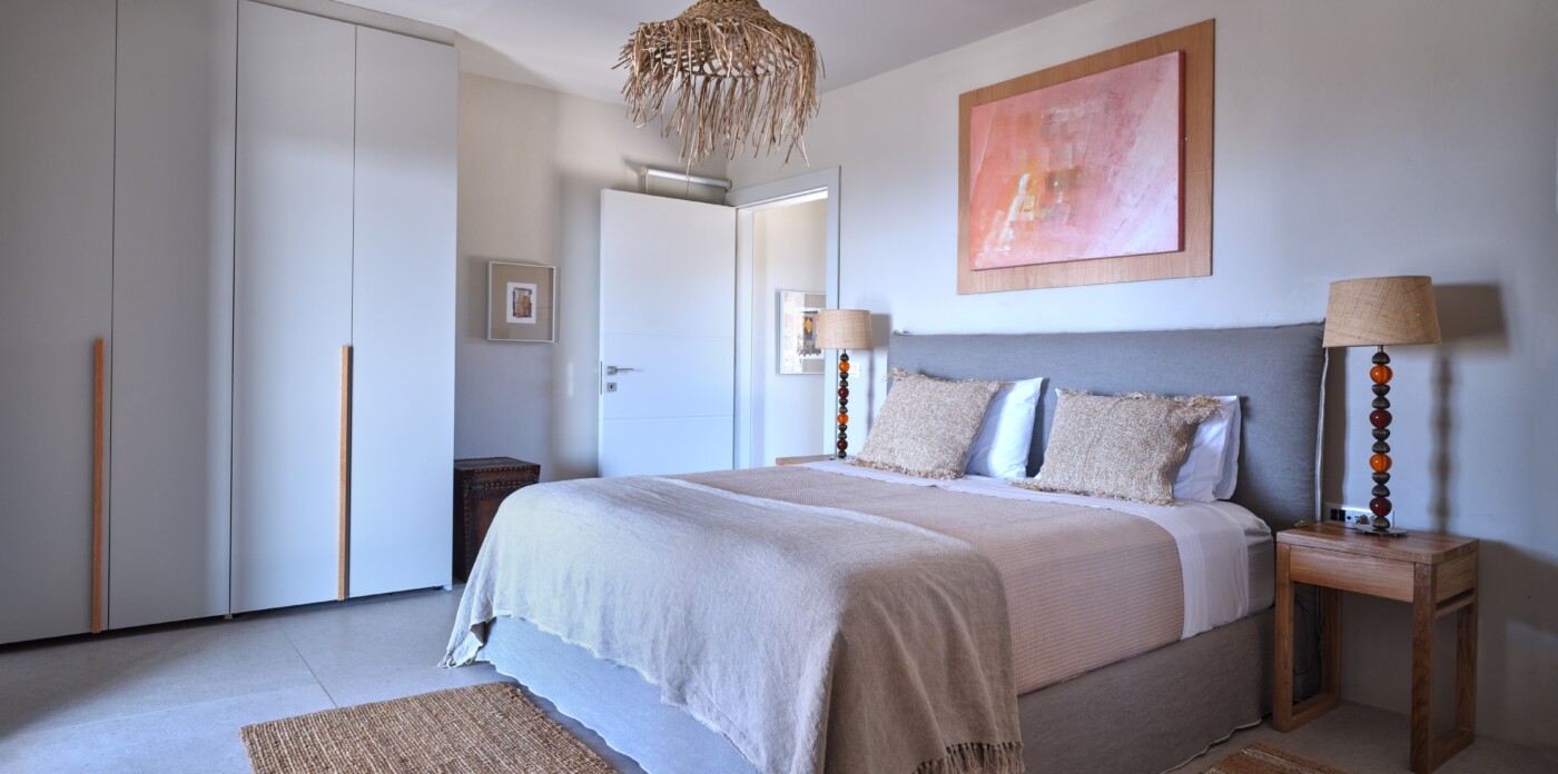 Diinera masterfully blends traditional island architecture with contemporary enhancements. It features five spacious bedrooms within the main residence and two independent guesthouses, providing ideal accommodation for friends and family with utmost privacy and comfort. Every interior space is bright and inviting, showcasing high-end finishes and designed to perfectly frame the sea and countryside views.