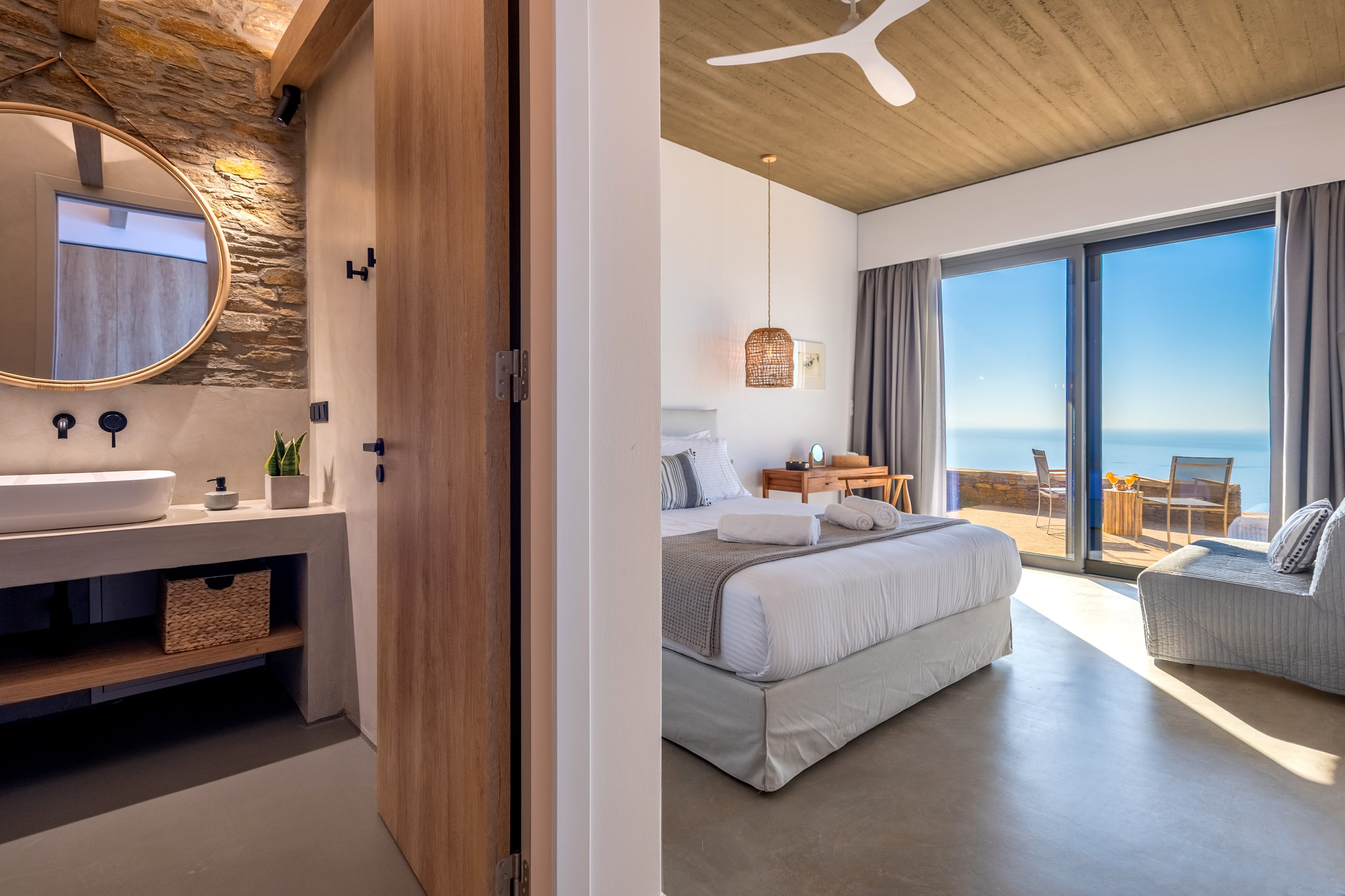 Above the golden sands of Kypri Beach, Villa Elysion sits in perfect harmony with the landscape — a contemporary sanctuary shaped by stone, light, and sea. With sweeping views across the Aegean and sunsets that dissolve into gold, it embodies the quiet beauty of Andros, where simplicity becomes sophistication.