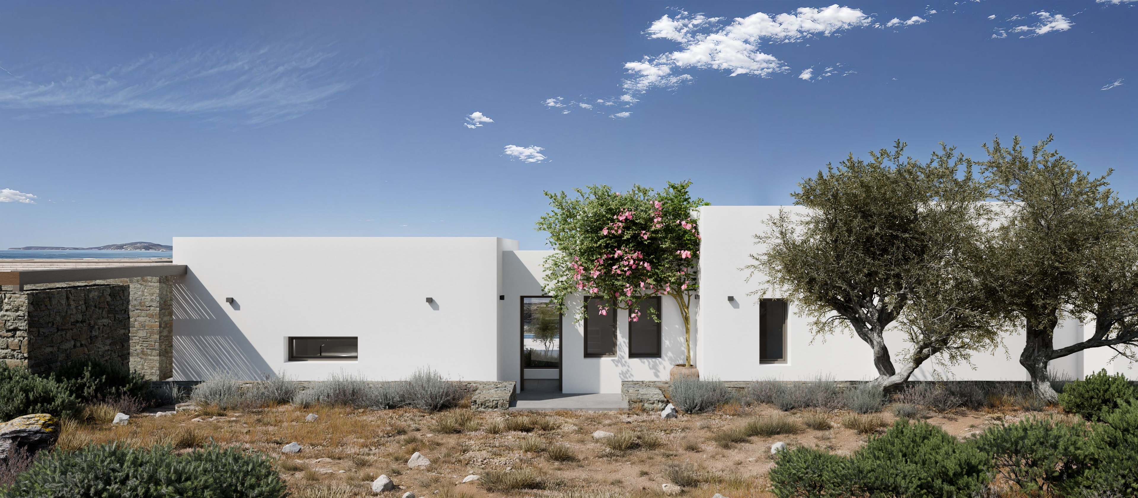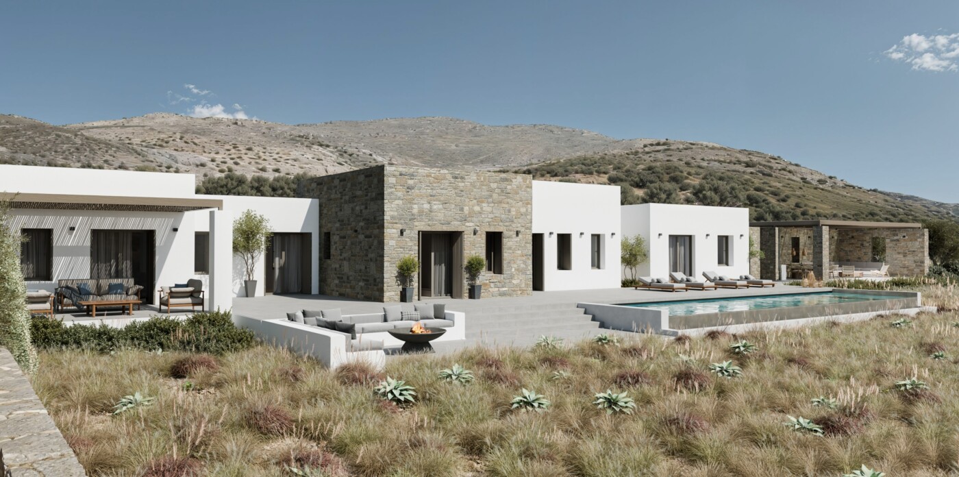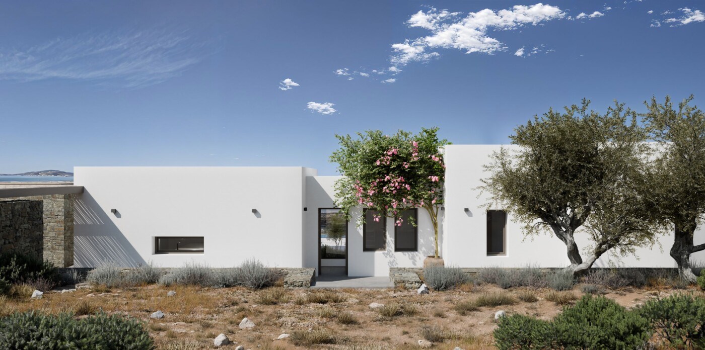 Currently under construction, Emelia is a contemporary villa in Aspro Chorio, Paros, reflecting a relaxed approach to Cycladic living. Set on an 8,200 sq m plot, the home will offer 211 sq m of carefully planned interiors, seamlessly connected to the surrounding landscape.